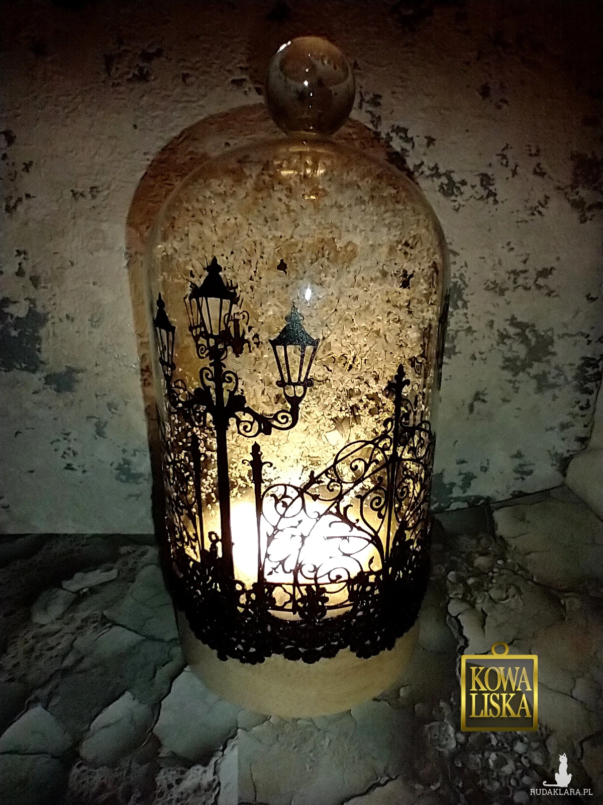Ręcznie zdobiony lampion ze szkła.