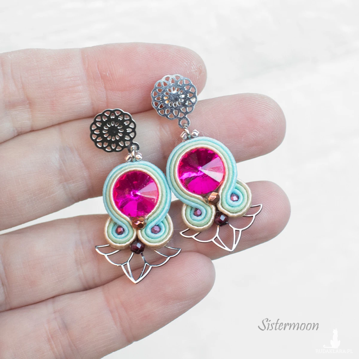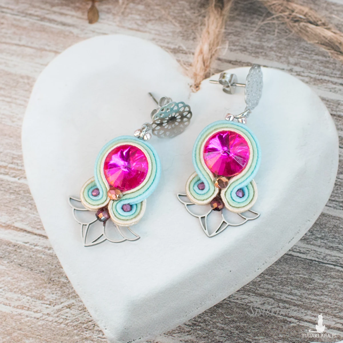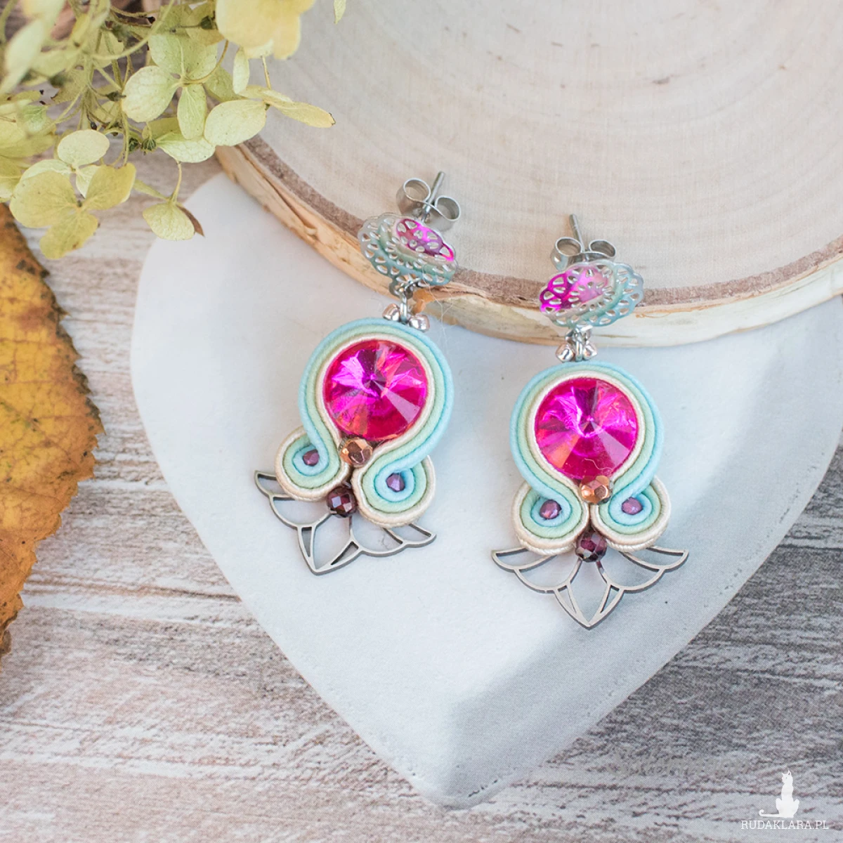 kolorowe kolczyki sutasz Fuksja z dodatkiem błyszczących fasetowanych