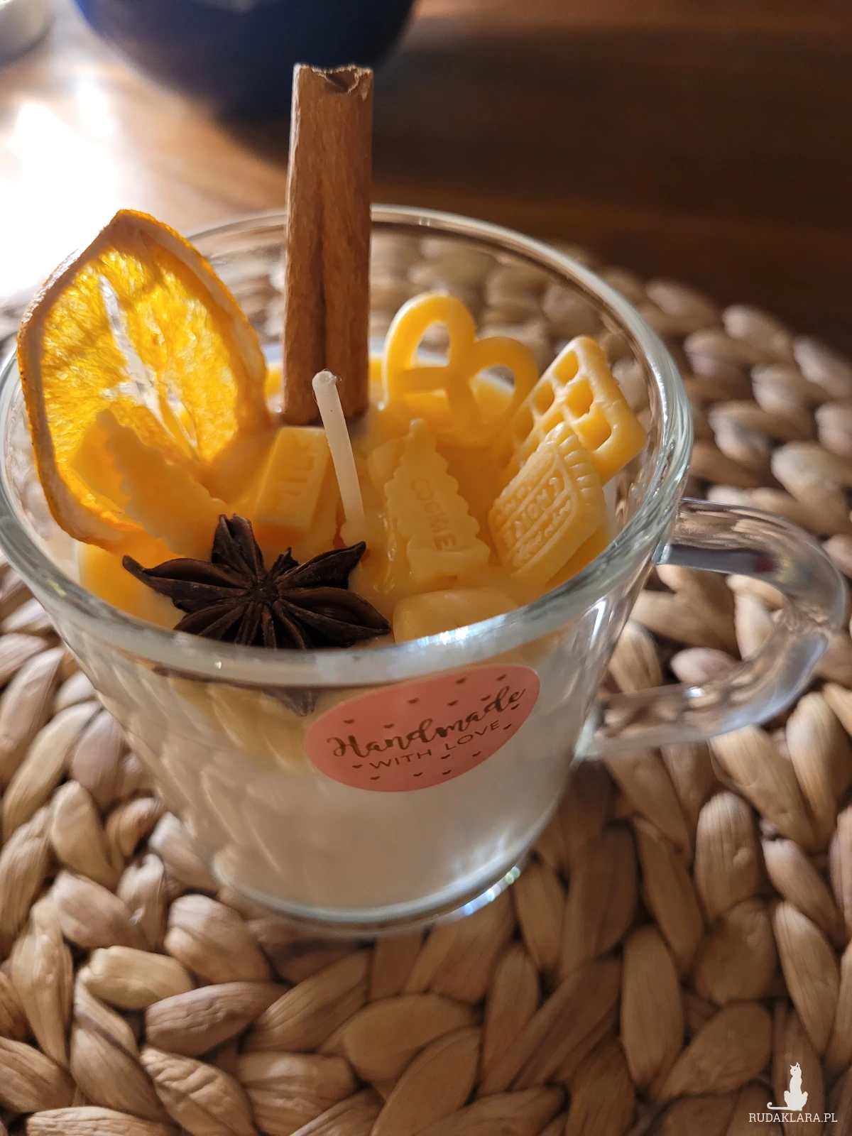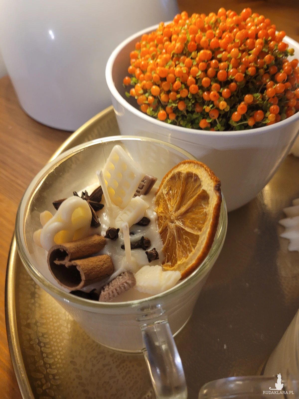 Świeca sojowa z przyprawami korzennymi o zapachu cynamonu w kubku