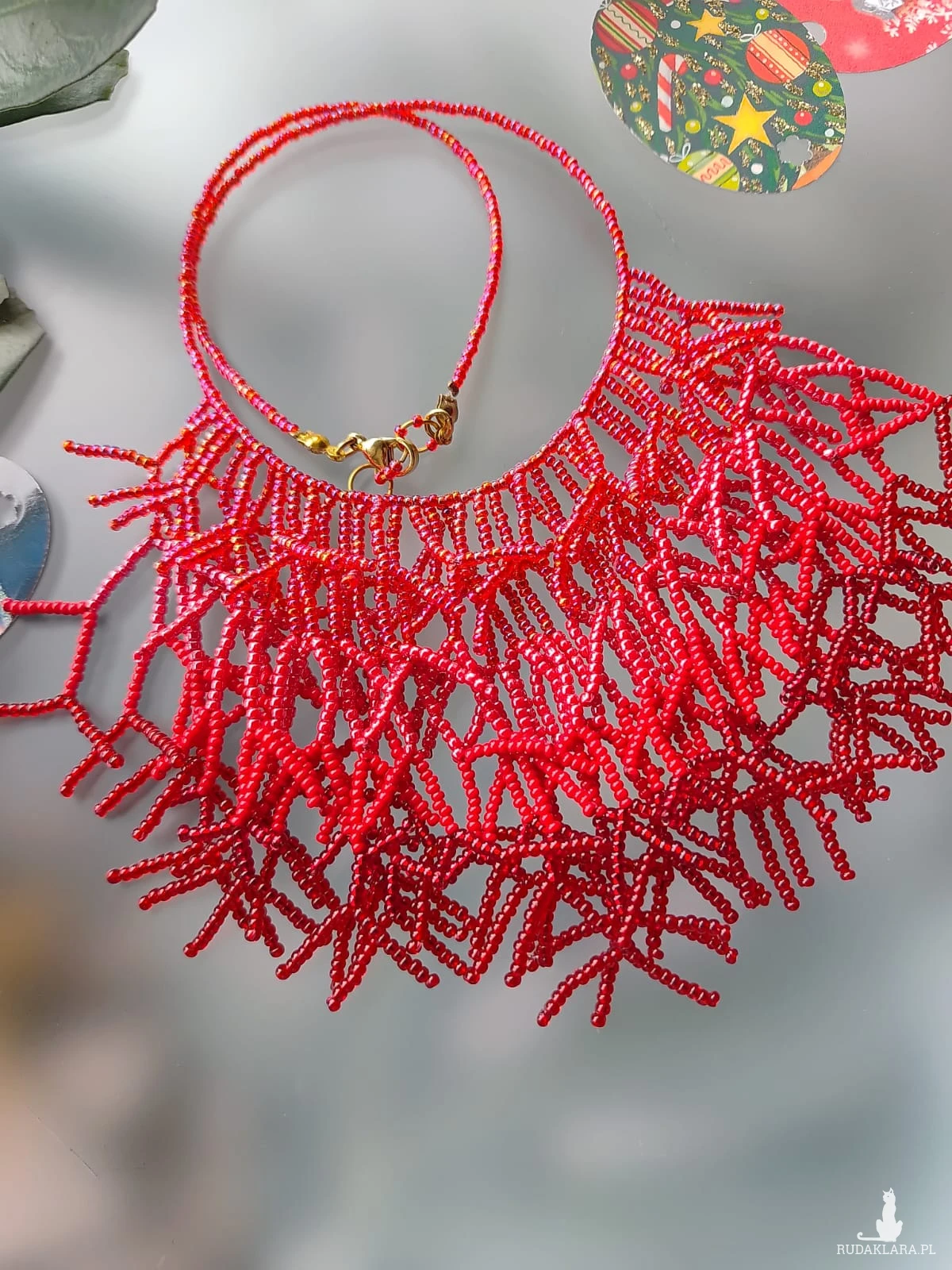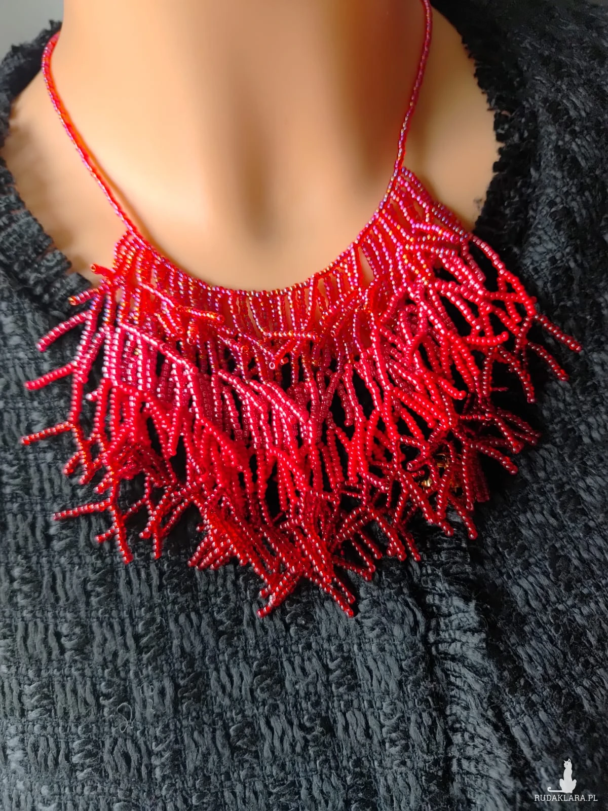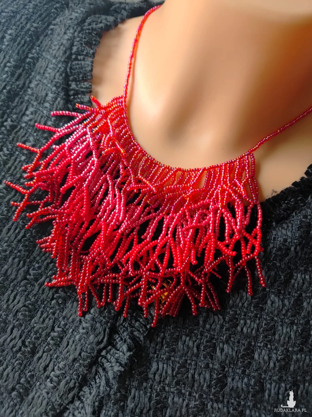koralików czerwonych w kilku odcieniach. Koraliki drobne 2 mm Gałązki
