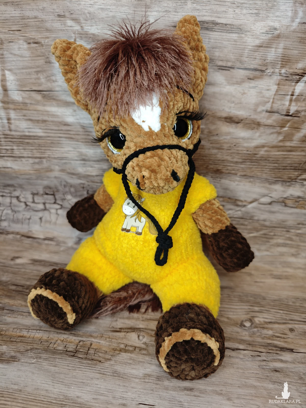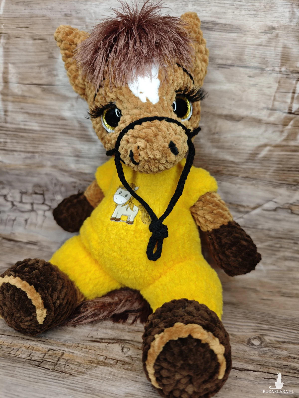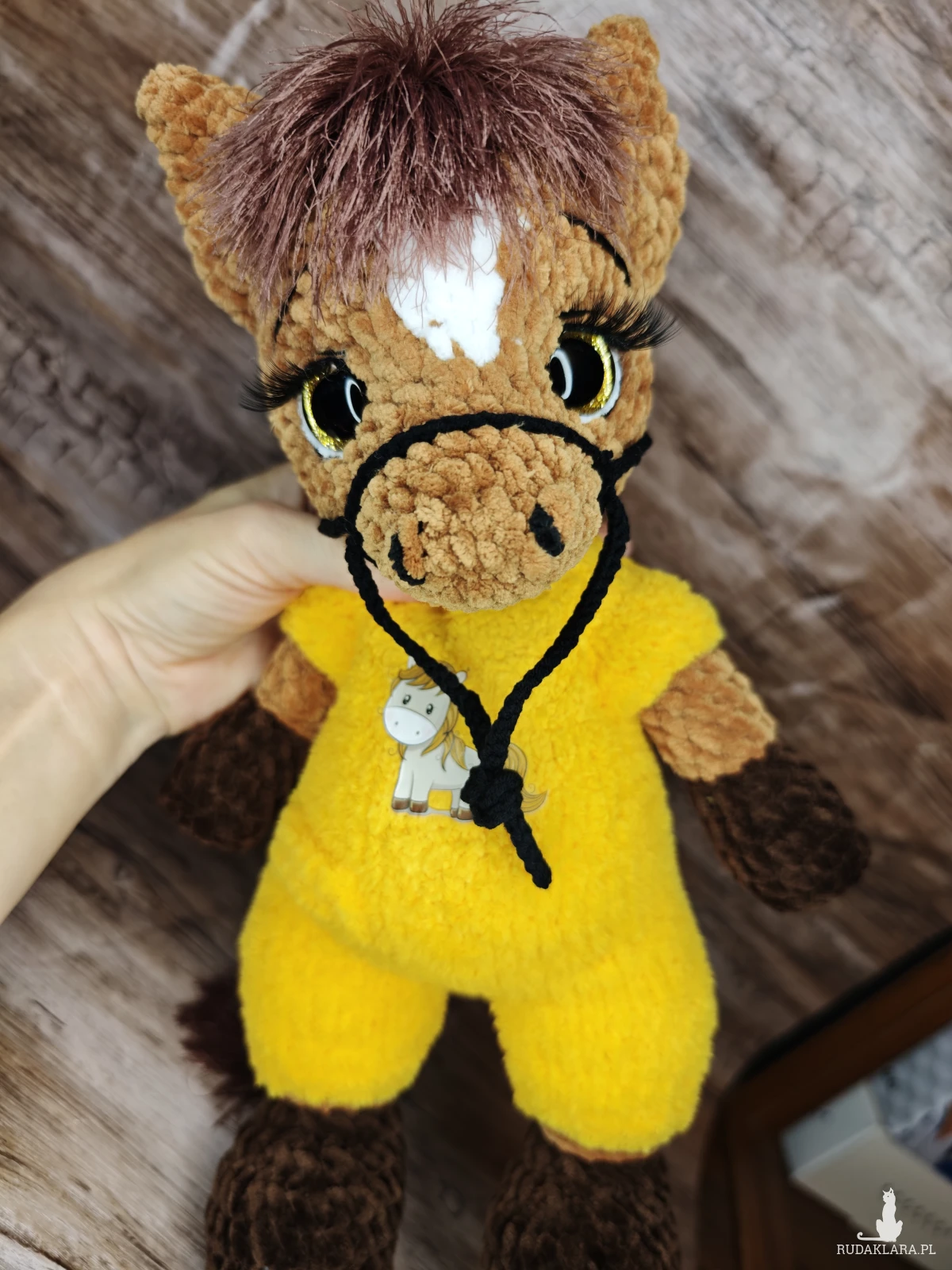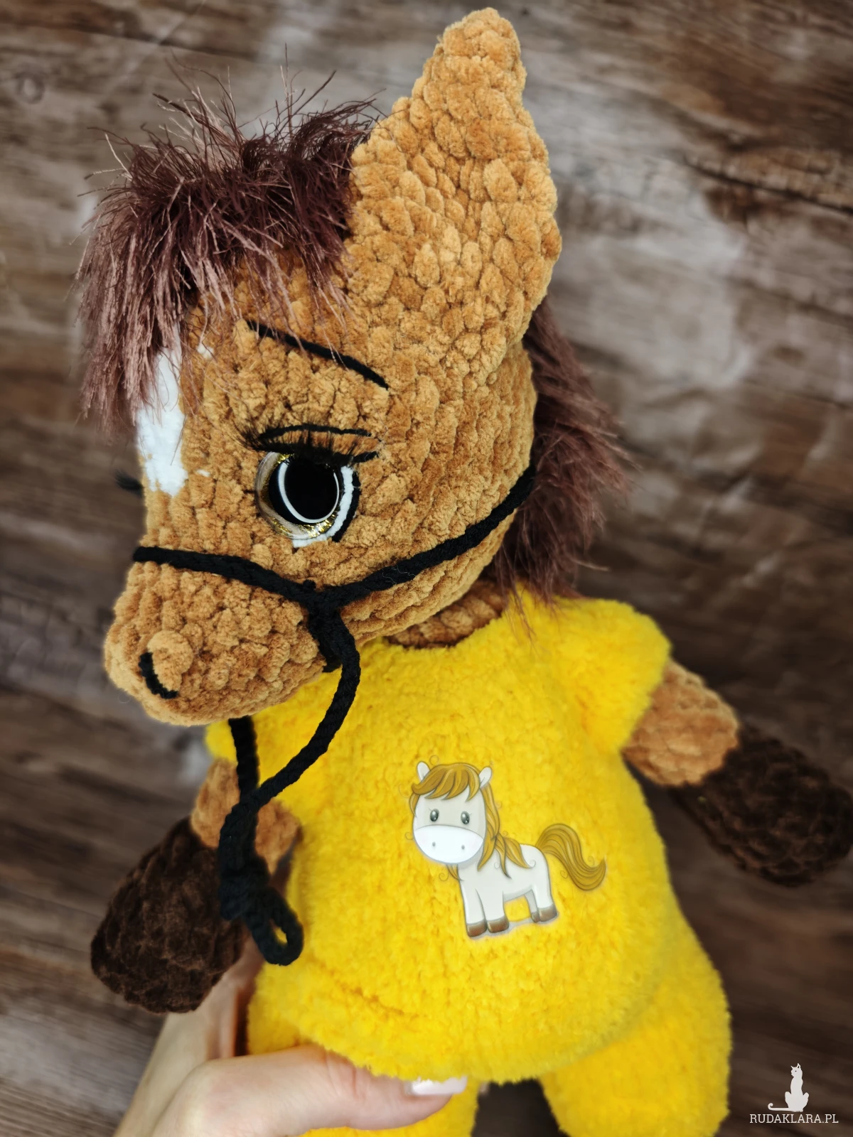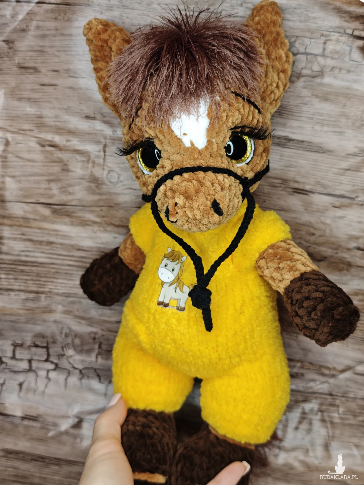 Urocza maskotka konika na szydełku, idealna do dekoracji pokoju dziecięcego. Wykonana z dbałością o detale, będzie doskonałym towarzyszem każdego malucha.