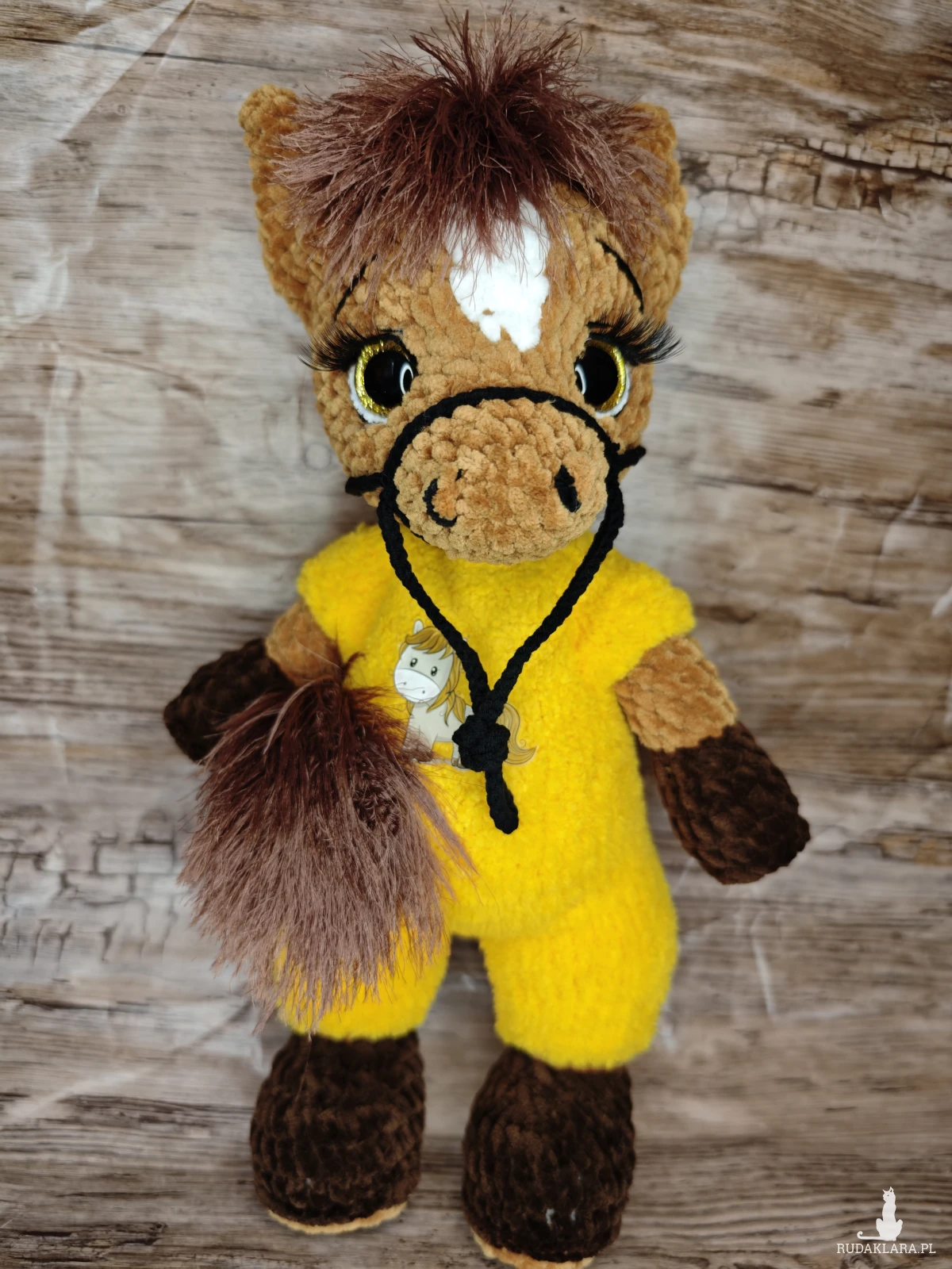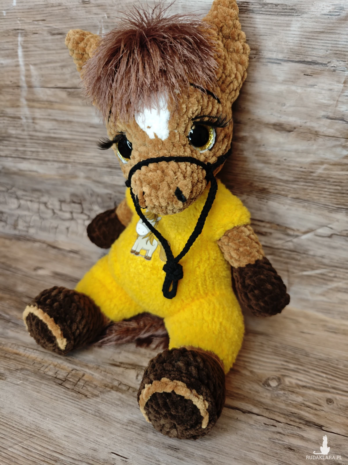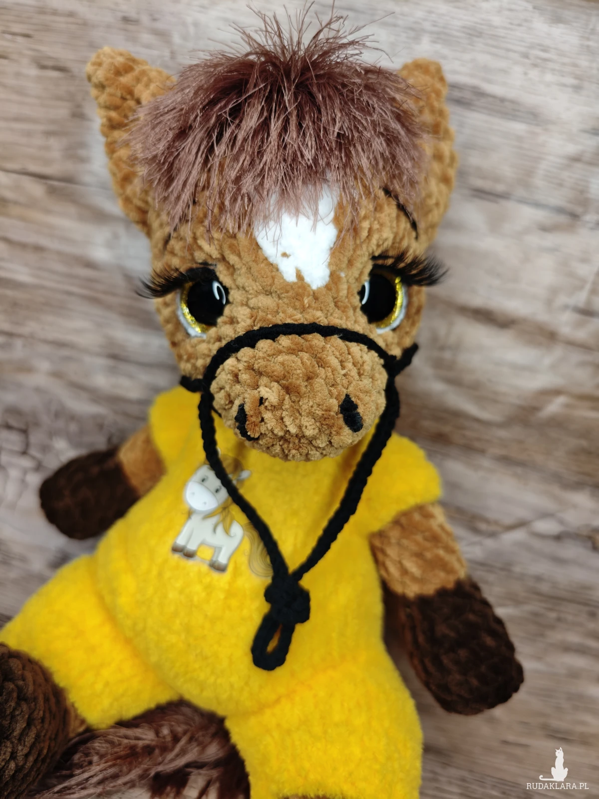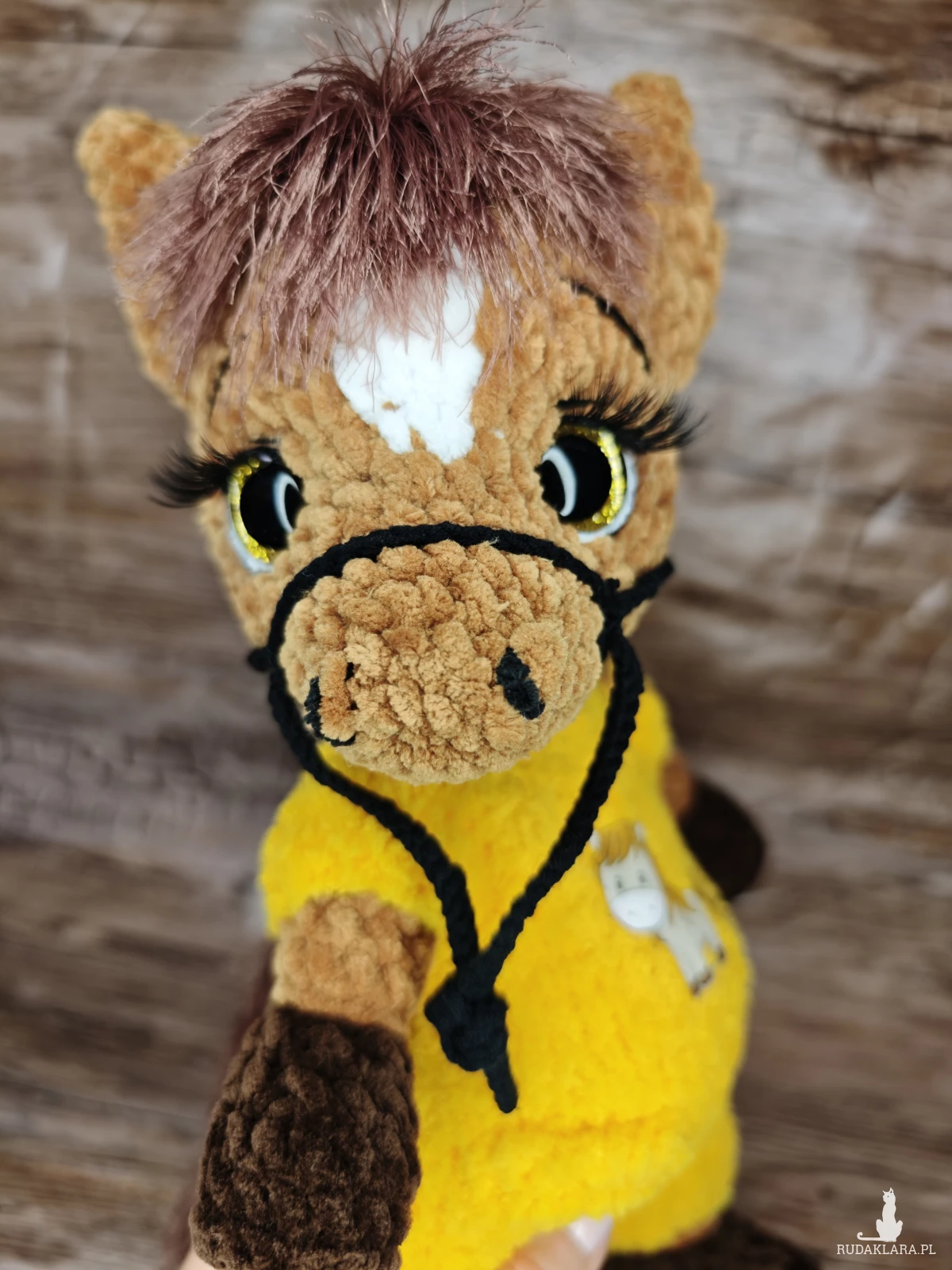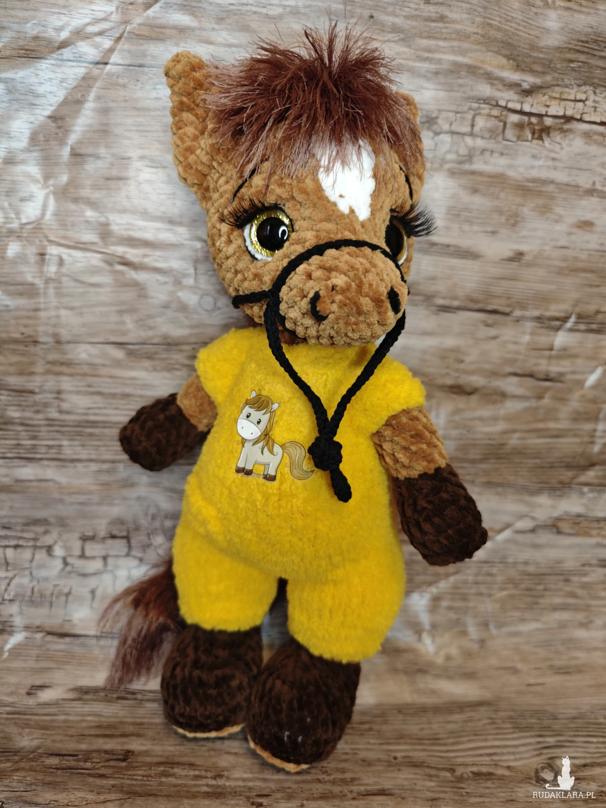 Urocza maskotka konika na szydełku, idealna do dekoracji pokoju dziecięcego. Wykonana z dbałością o detale, będzie doskonałym towarzyszem każdego malucha.