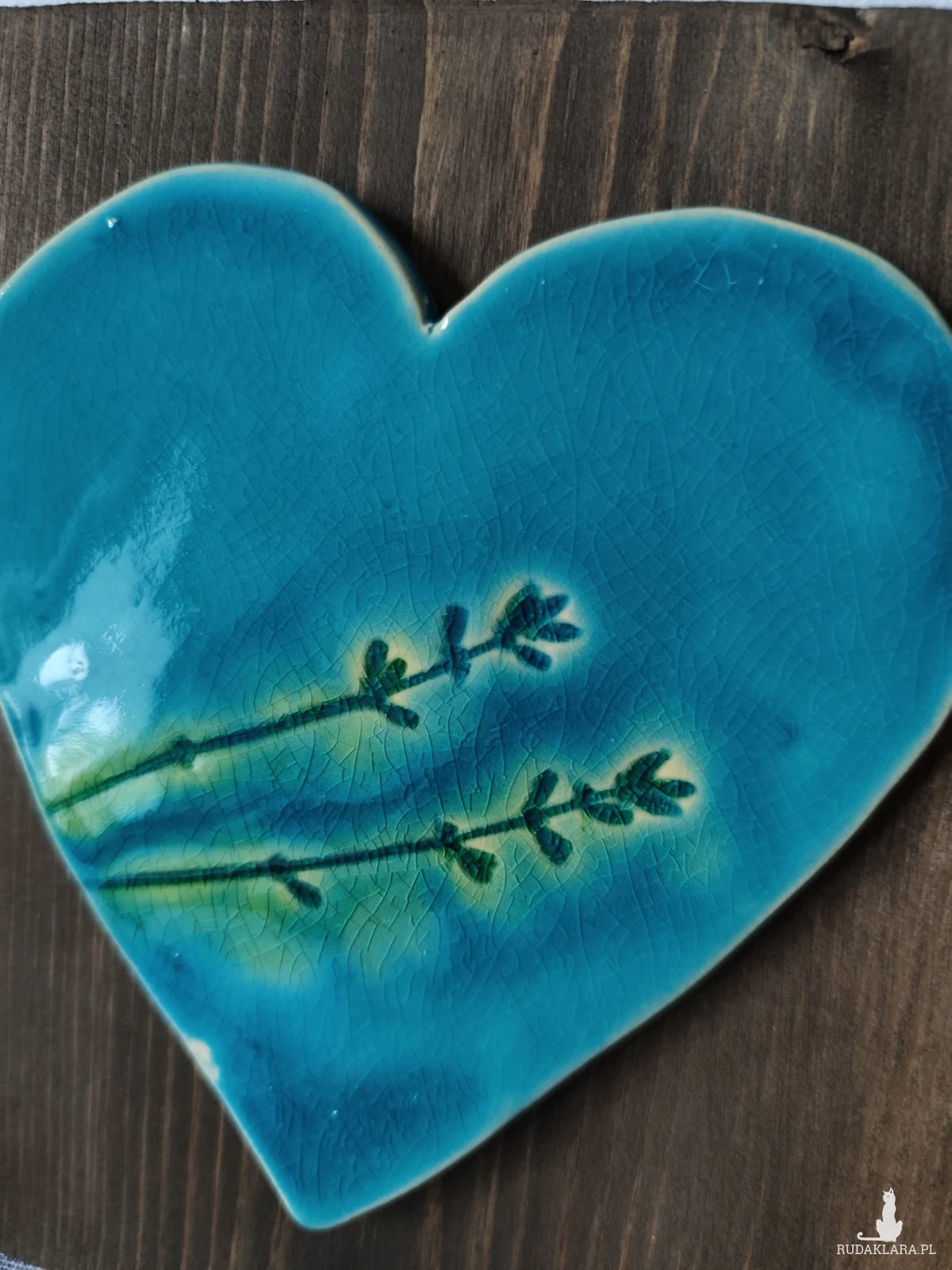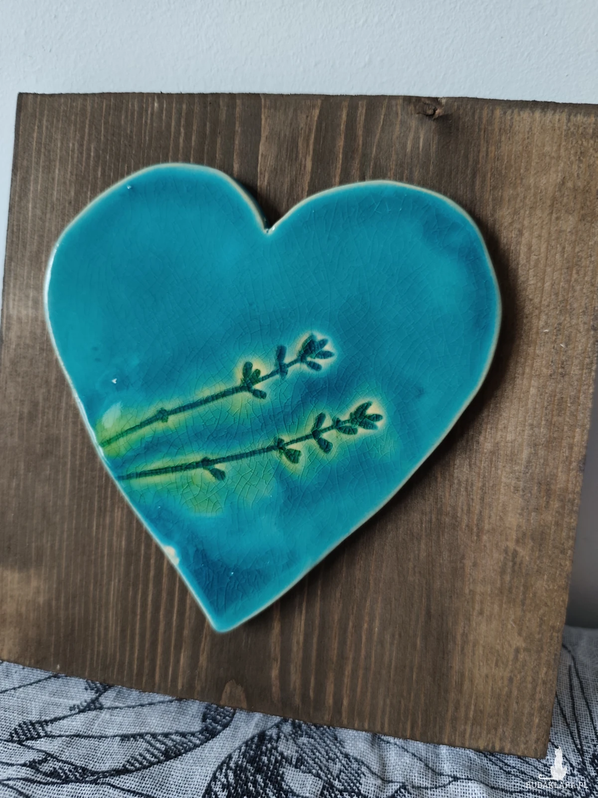 Serce ceramiczne na desce, piękna ozdoba Twoje domu. Szkliwione i dwukrotnie wypalane w piecu ceramicznym na wysoką temperaturę. Polecam. Wymiary serca 14x14cm a deski 19x20cm