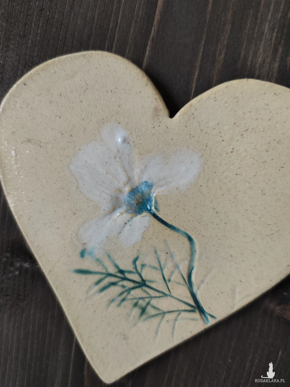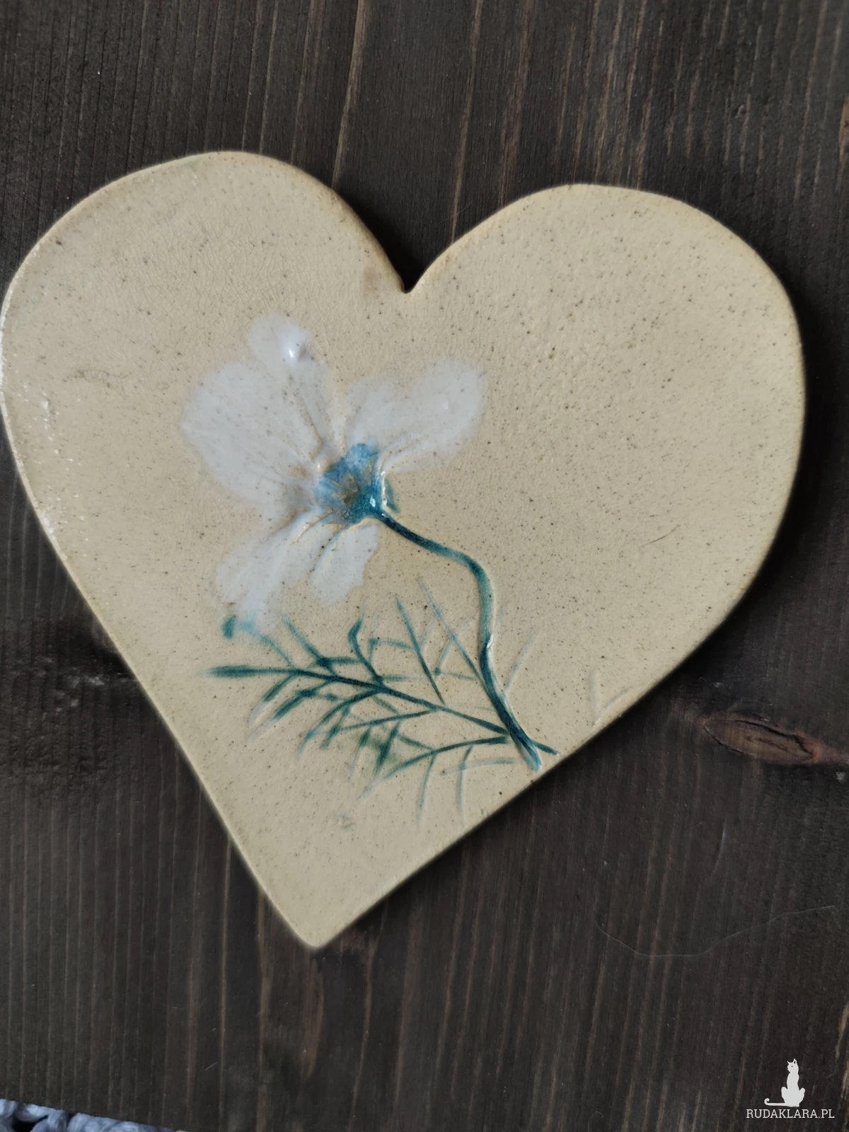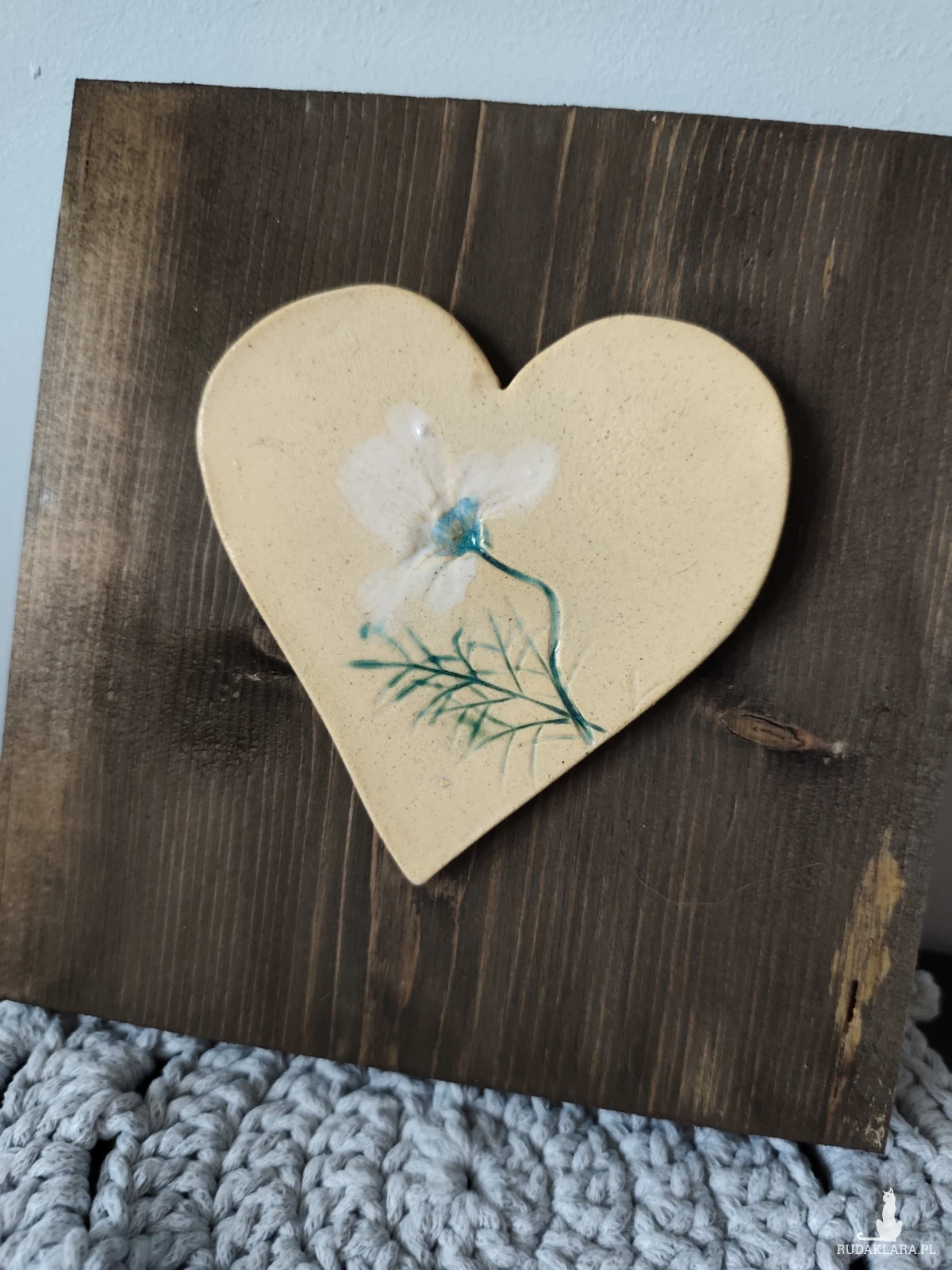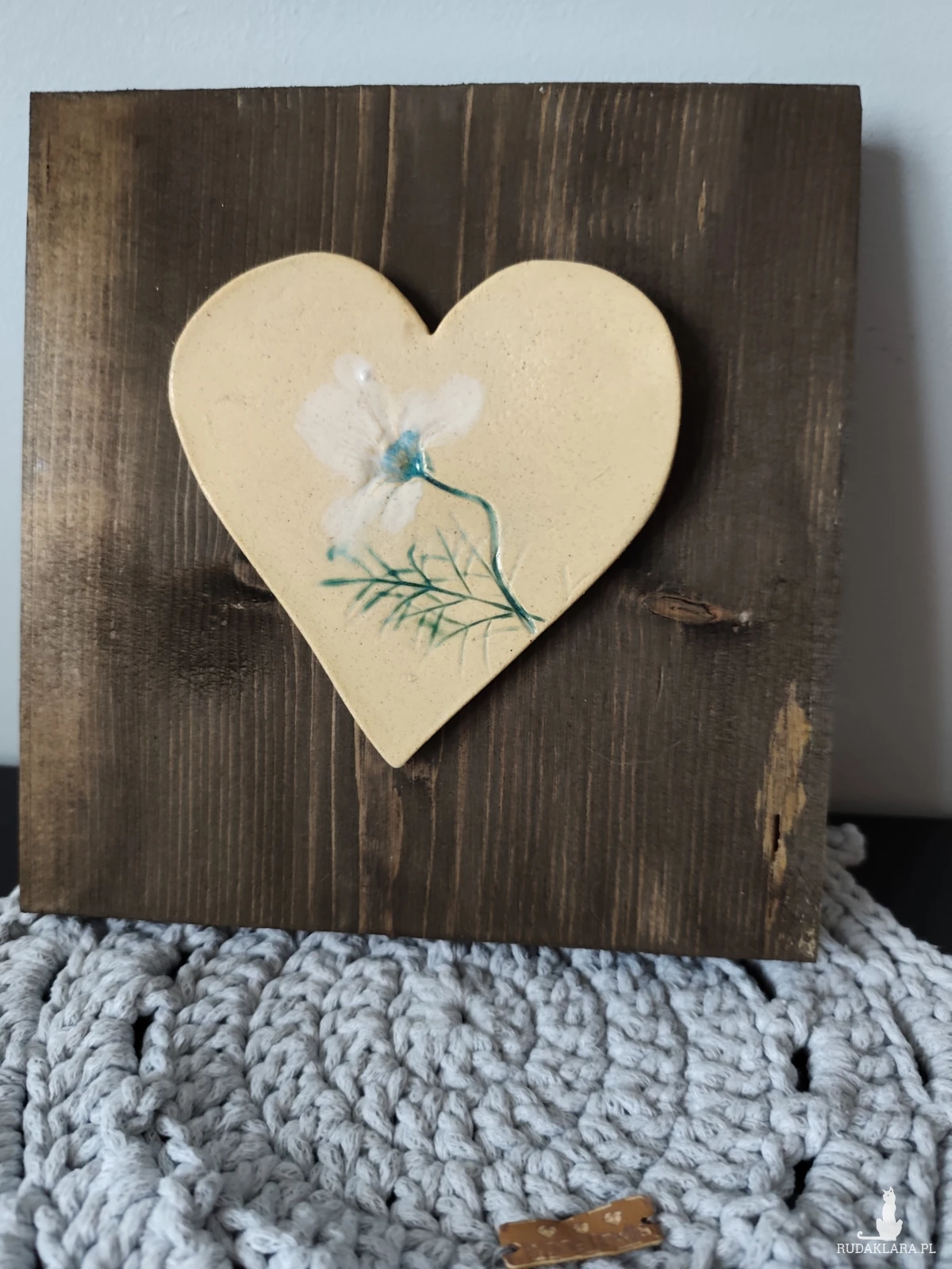 Serce ceramiczne na desce, piękna ozdoba Twoje domu. Szkliwione i dwukrotnie wypalane w piecu ceramicznym na wysoką temperaturę. Polecam. Wymiary serca 14x14cm a deski 19x20cm