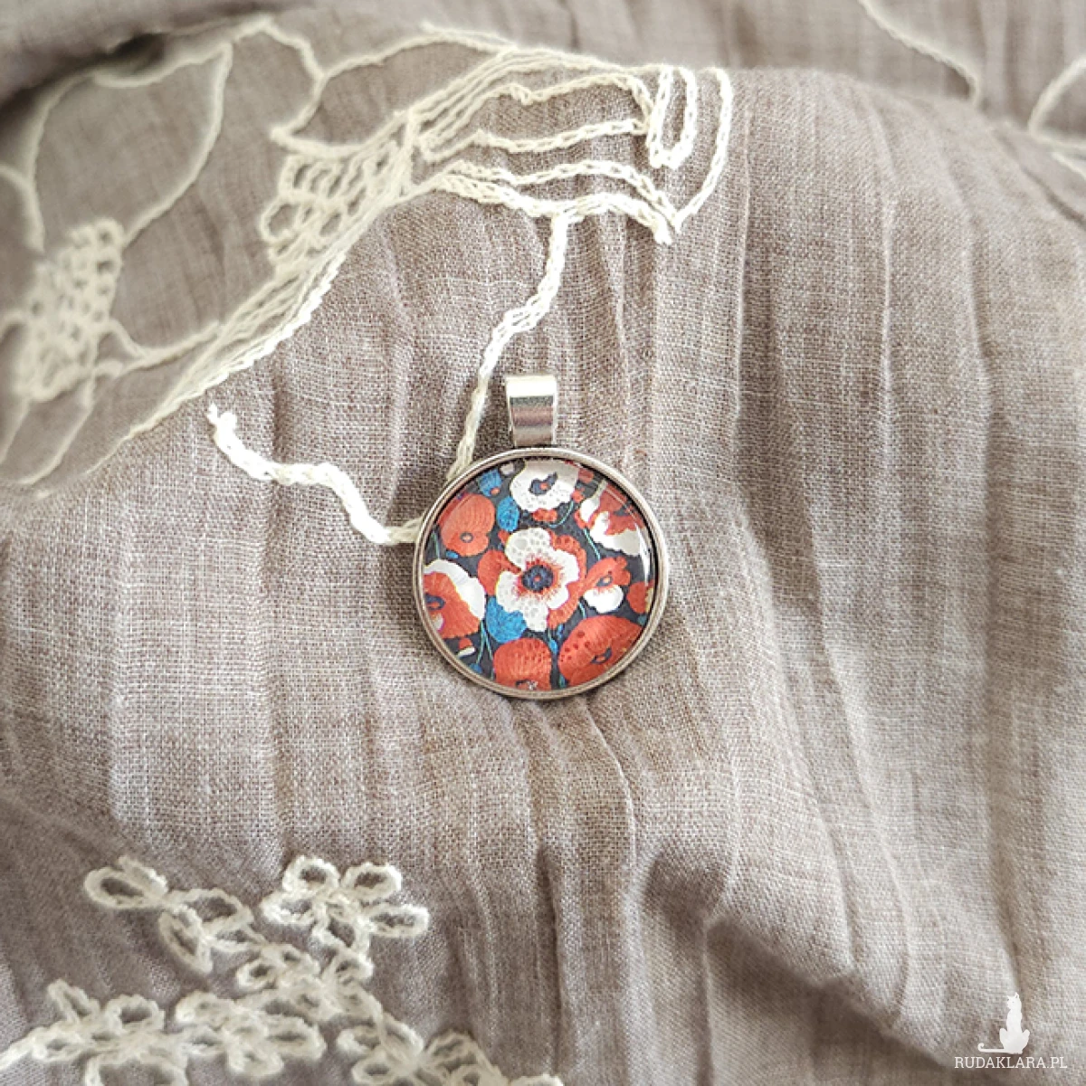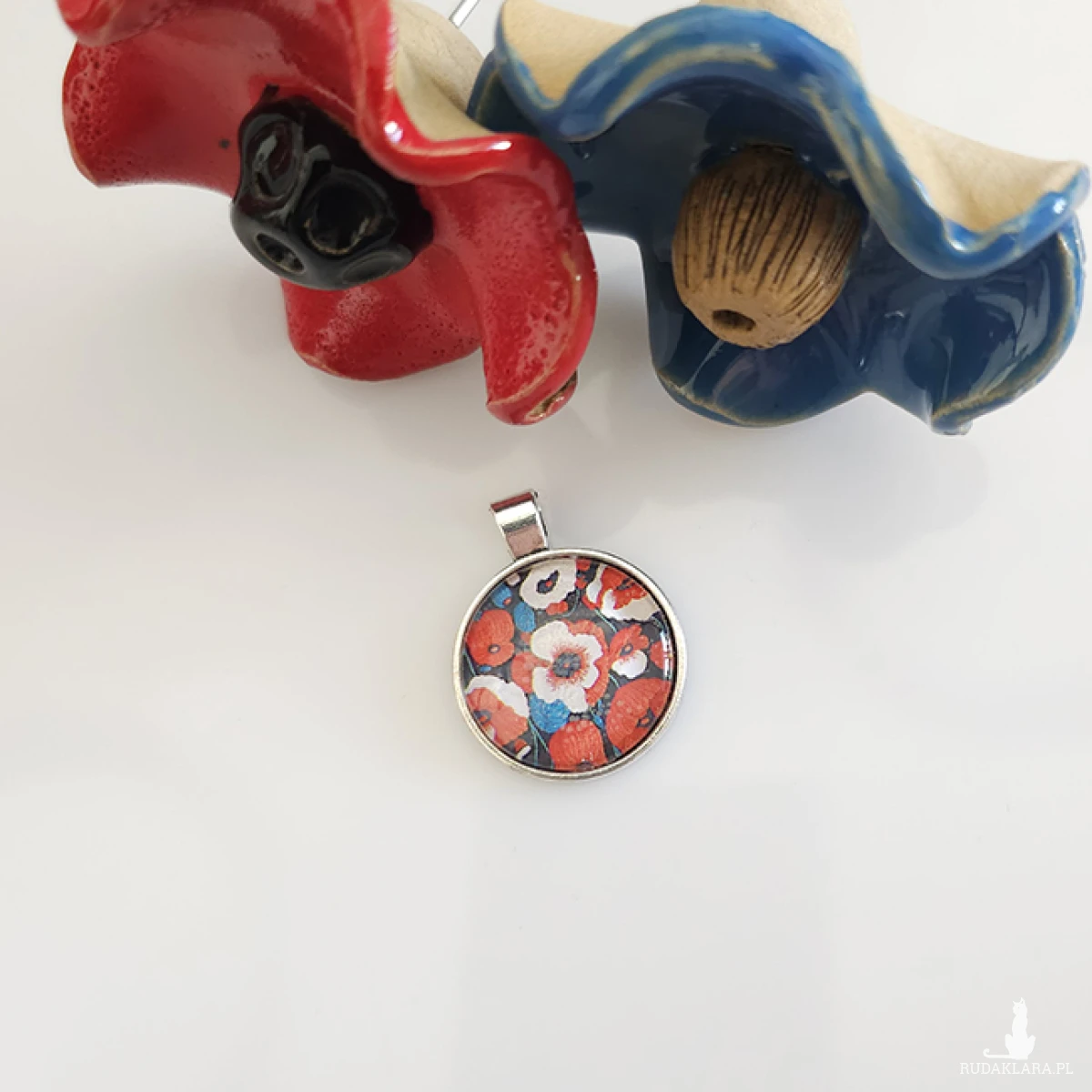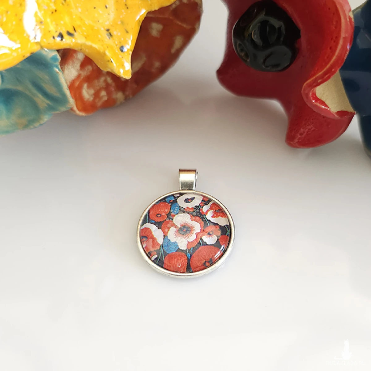 Klasyczny, a jednocześnie nowoczesny wisiorek - 'Makowe Pole'! ❤️ Ten ręcznie wykonany wisiorek to miniaturowa łąka, pełna intensywnie czerwonych maków, bieli i odrobiny błękitu. Okrągła oprawa w srebrnym kolorze, wysokiej jakości grafika i szklana kopułka tworzą spójną i elegancką kompozycję.
