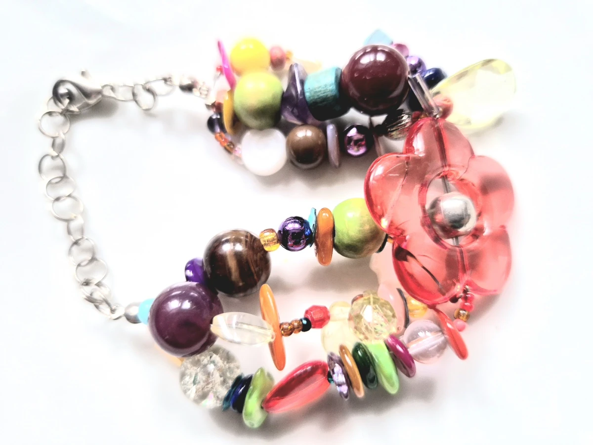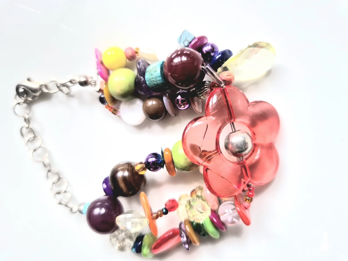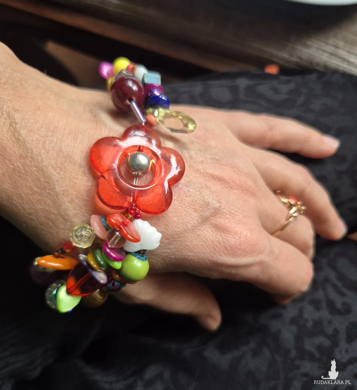 Bransoletka koralikowa z kwiatem,z koralikow bardzo bujna,polecam box L1