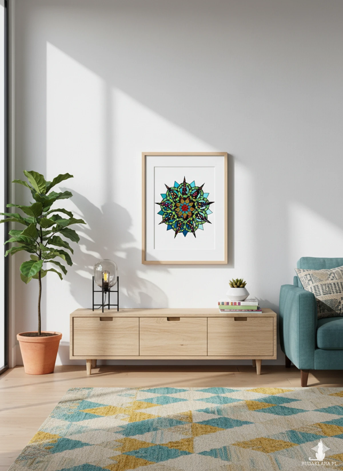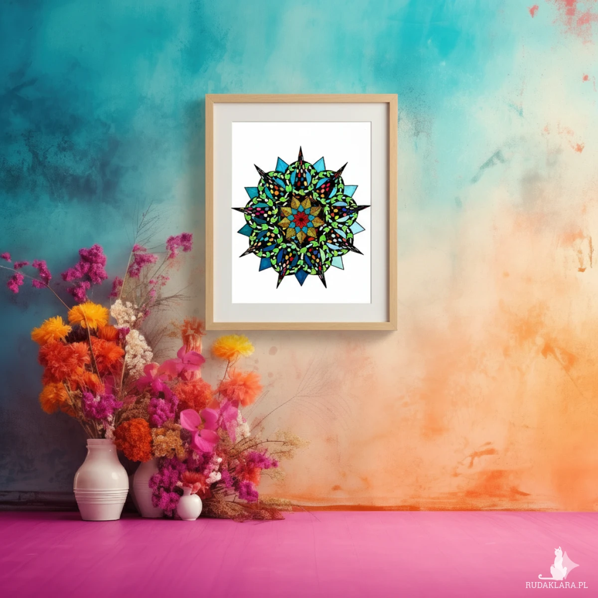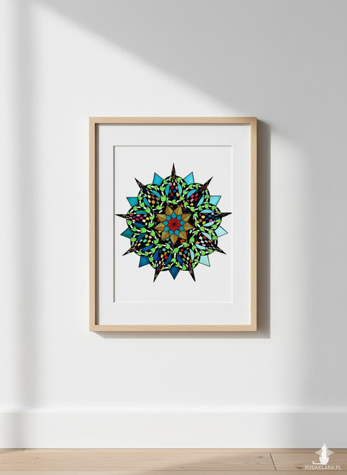 53. MANDALA NA OSTRO - SZMARAGDOWA - rysunek, plakat.
