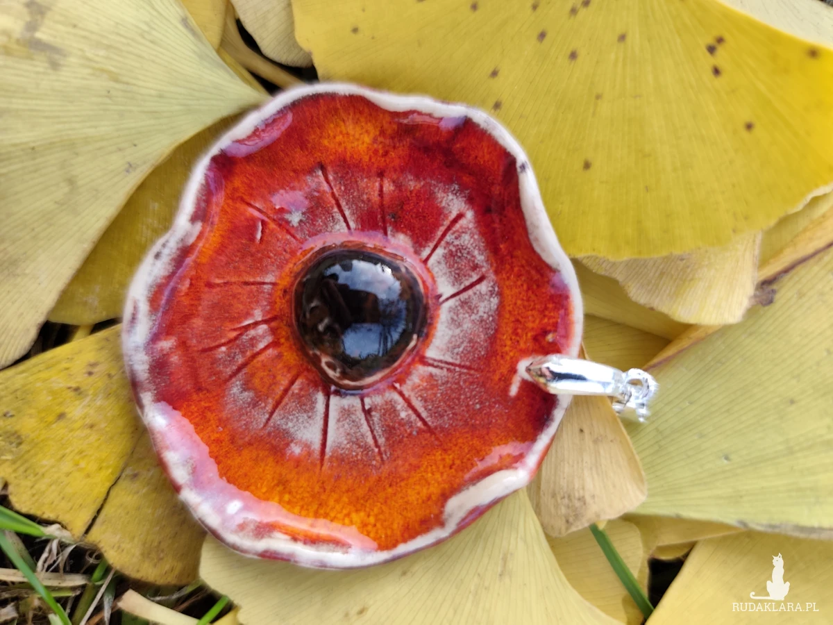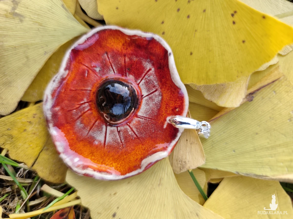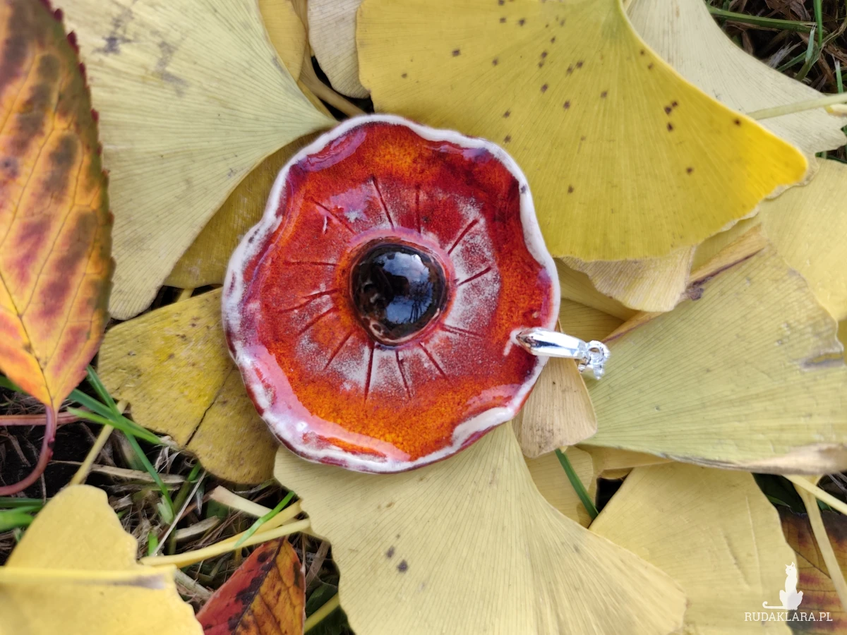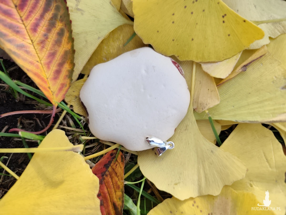 Piekny wisior ceramiczny, średnica 5cm. Wykonany i szkliwiony ręcznie, wypalany dwukrotnie w piecu ceramicznym na wysoką temperaturę. Polecam.