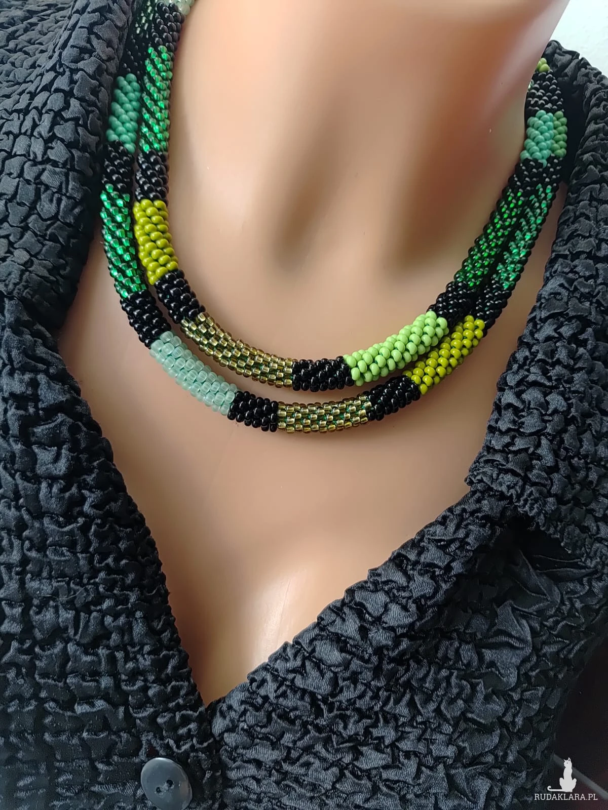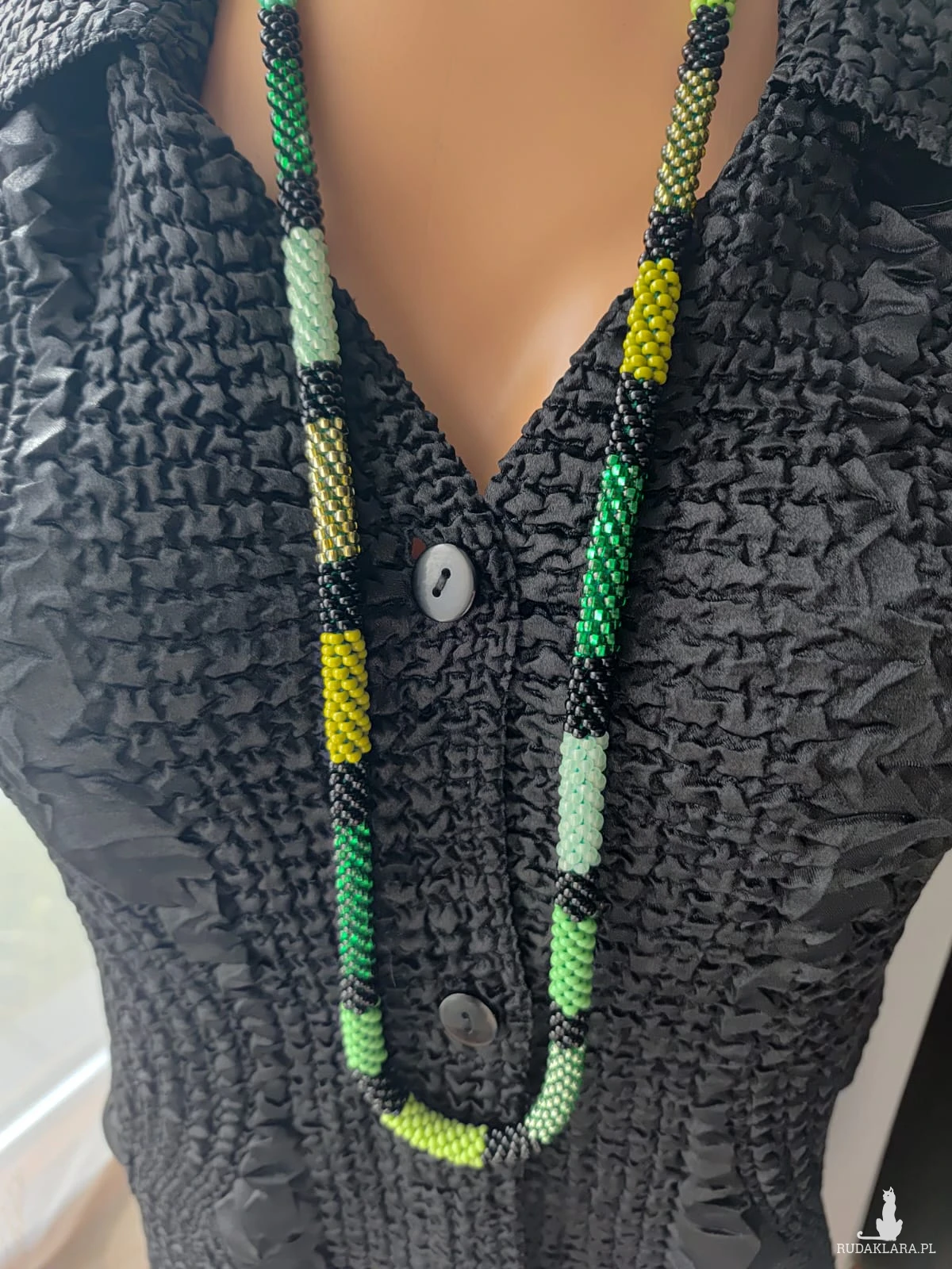 Naszyjnik Zielony Wąż Sznur Koralikowy