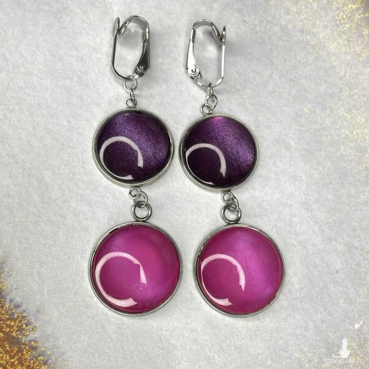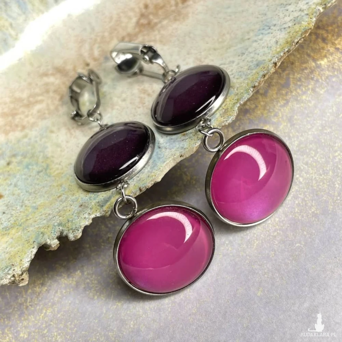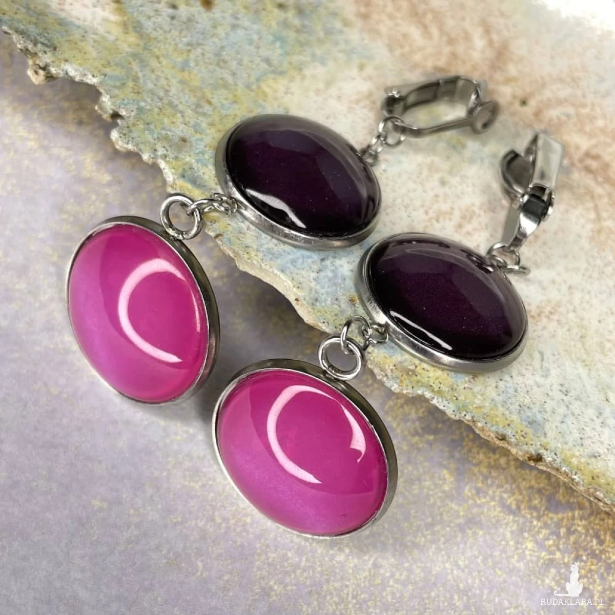 Te pełne blasku klipsy są częścią kolekcji “W blasku perłowego księżyca”. Klipsy wykonane są z ręcznie malowanych kaboszonów umieszczonych w bazach ze stali szlachetnej. Szklane elementy zachwycają subtelnym, opalizującym blaskiem, który jest niczym odbicie księżyca na tafli wody. Klipsy mienią się w świetle, przyciągając wzrok i dodają elegancji każdej stylizacji. Ten dodatek jest idealny dla osób ceniących sobie wyrafinowaną i ponadczasową biżuterię. Materiał: stal szlachetna, malowane ręcznie szkło Długość: 7 cm Waga pary: 14,06 g SKU: e103/a1, kolory: 13, 27 Jak dobierać komplety? Kolory na zdjęciach mogą się różnić ze względów technicznych. Aby dobrać identyczny odcień, zwróć uwagę na numer SKU produktu. Pierwsza część to numer modelu, a numery po “/” to kolor, np. /17 oznacza morski perłowy. Produkty z tym samym SKU po "/" mają identyczny kolor. Dzięki temu możesz łatwo tworzyć komplety, mając pewność, że biżuteria jest w tym samym odcieniu. Stwórz własny komplet! Jeśli nie ma biżuterii w wybranym modelu lub kolorze którego szukasz, możesz ją zamówić indywidualnie. Wyślij do nas maila z nazwą, numerem modelu i kolorem, a my w miarę możliwości wykonamy biżuterię na zamówienie. Termin realizacji ustalamy indywidualnie. Biżuteria zostanie elegancko zapakowana. W przypadku zakupu kompletu, biżuteria zostanie zapakowana razem. Kolory na zdjęciach mogą delikatnie różnić się od rzeczywistych.