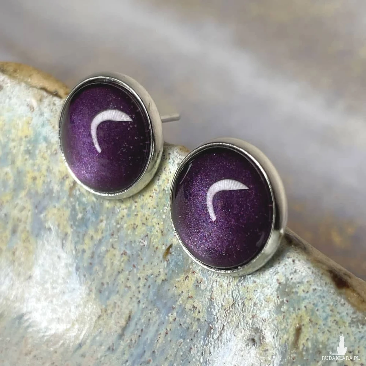 Te pełne blasku kolczyki są częścią kolekcji “W blasku perłowego księżyca”. Kolczyki wykonane są z ręcznie malowanych kaboszonów umieszczonych w bazach ze stali szlachetnej. Szklane elementy zachwycają subtelnym, opalizującym blaskiem, który jest niczym odbicie księżyca na tafli wody. Kolczyki mienią się w świetle, przyciągając wzrok i dodają elegancji każdej stylizacji. Ten dodatek jest idealny dla osób ceniących sobie wyrafinowaną i ponadczasową biżuterię.