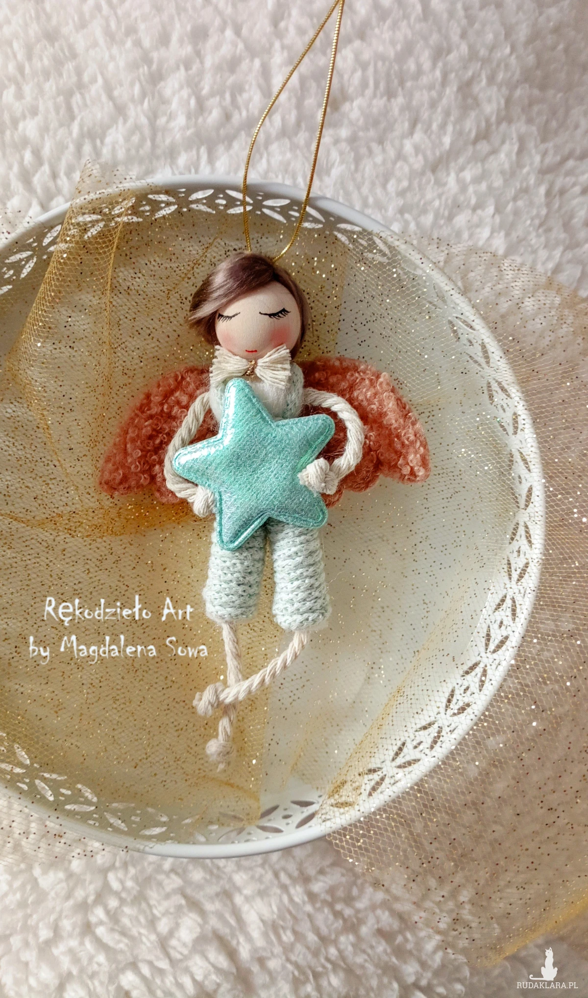 Aniołek wykonany został ręcznie z dbałością o każdy szczegół, jest jedyny i niepowtarzalny.