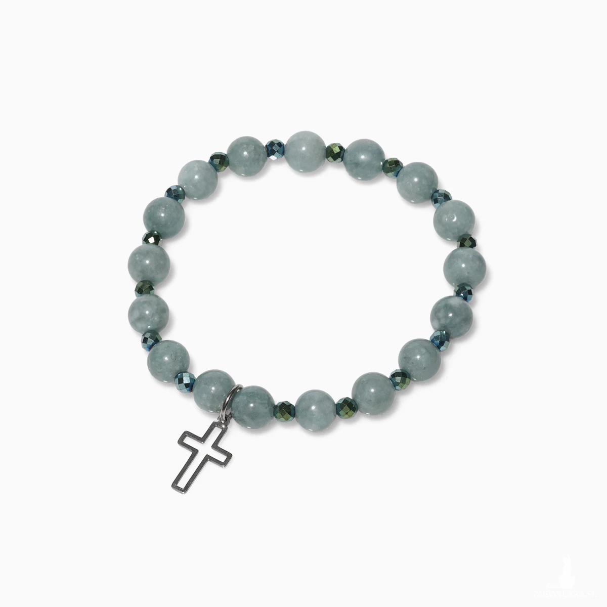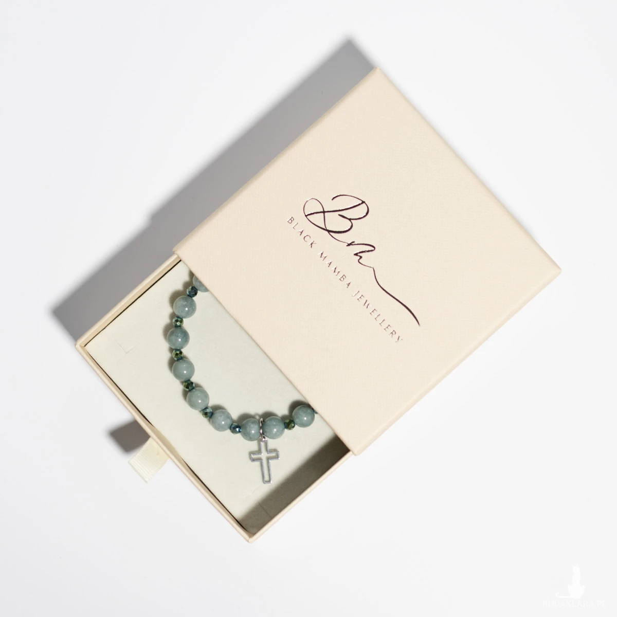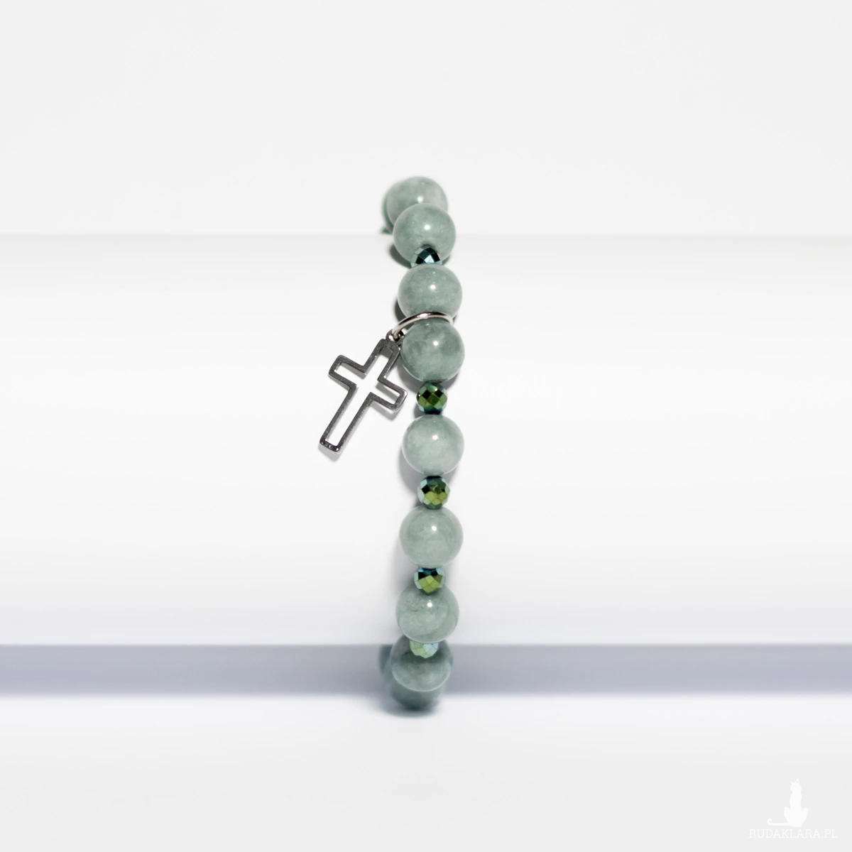 Dodatkowym akcentem jest krzyżyk ze stali szlachetnej, który podkreśla duchowy charakter biżuterii i dodaje jej nowoczesnego, ponadczasowego stylu.