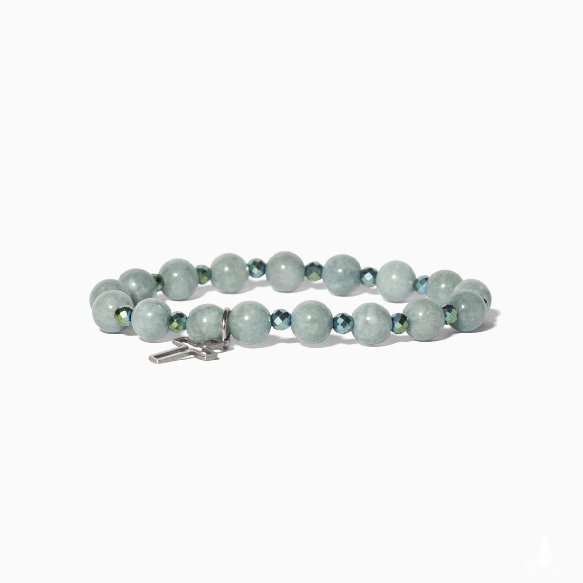 Każdy element został ręcznie zestawiony z dbałością o detal, by stworzyć biżuterię o wyjątkowym charakterze i głębszym znaczeniu. Gładka powierzchnia hematytu pięknie kontrastuje z delikatnym połyskiem jadeitu, tworząc harmonijną kompozycję.