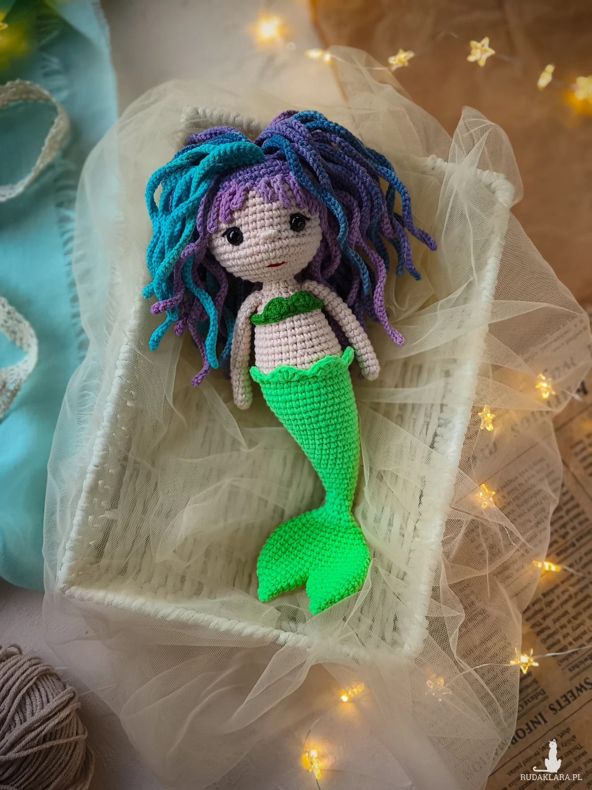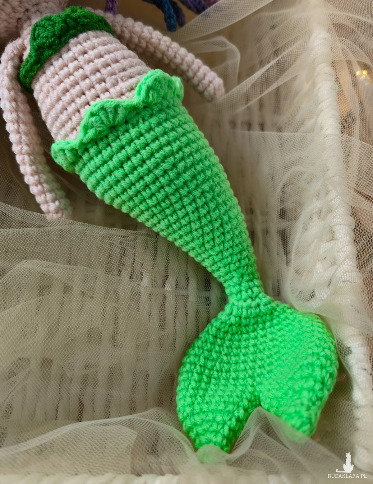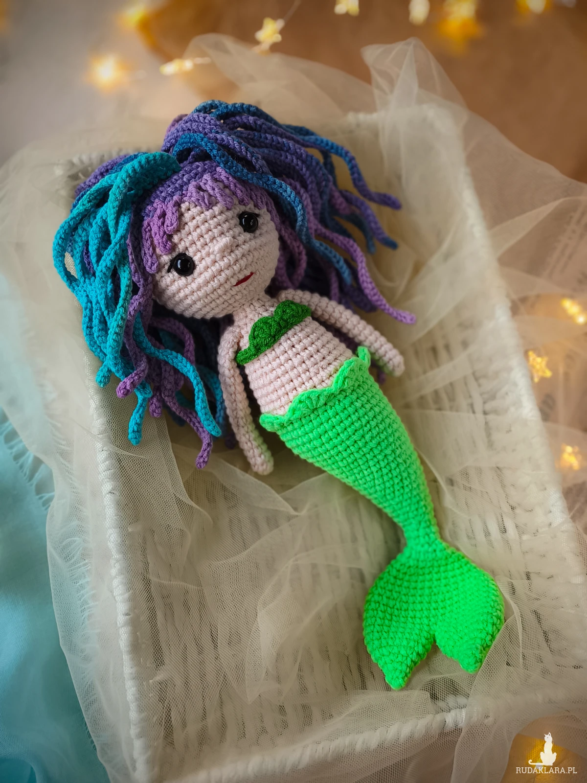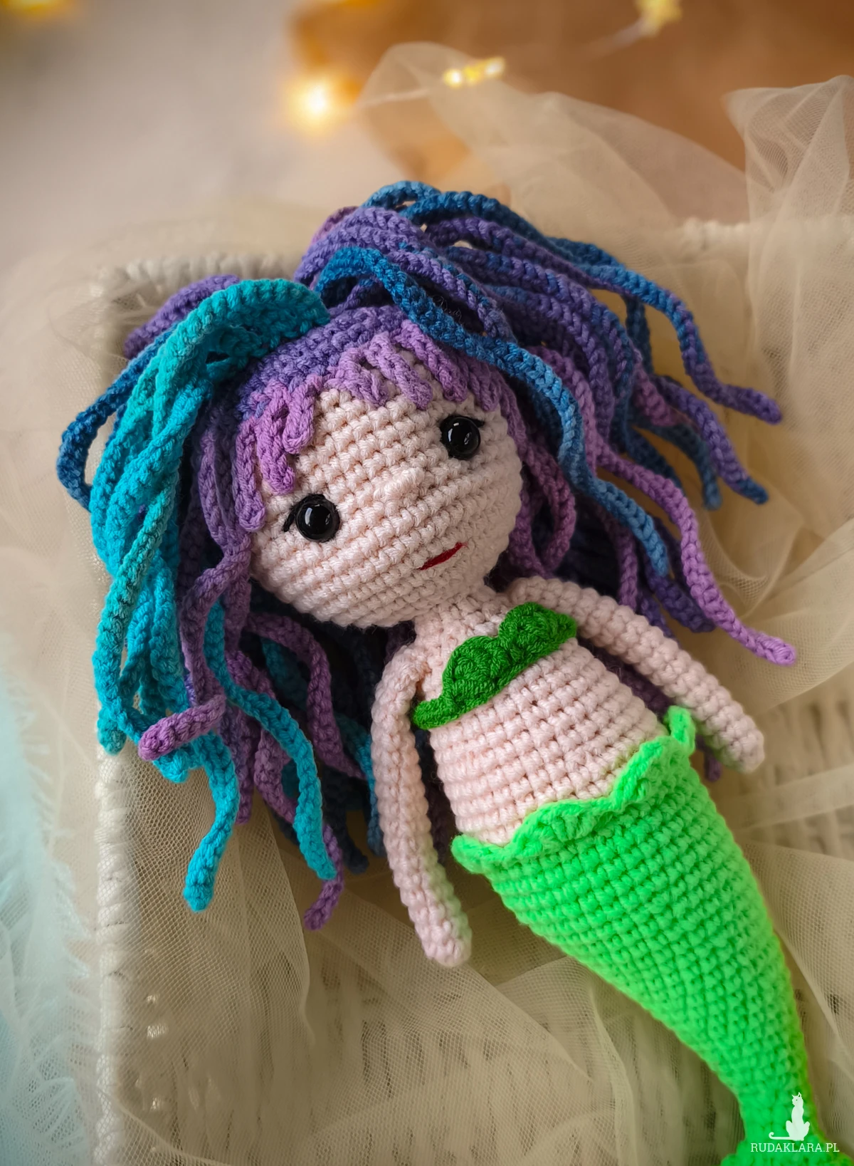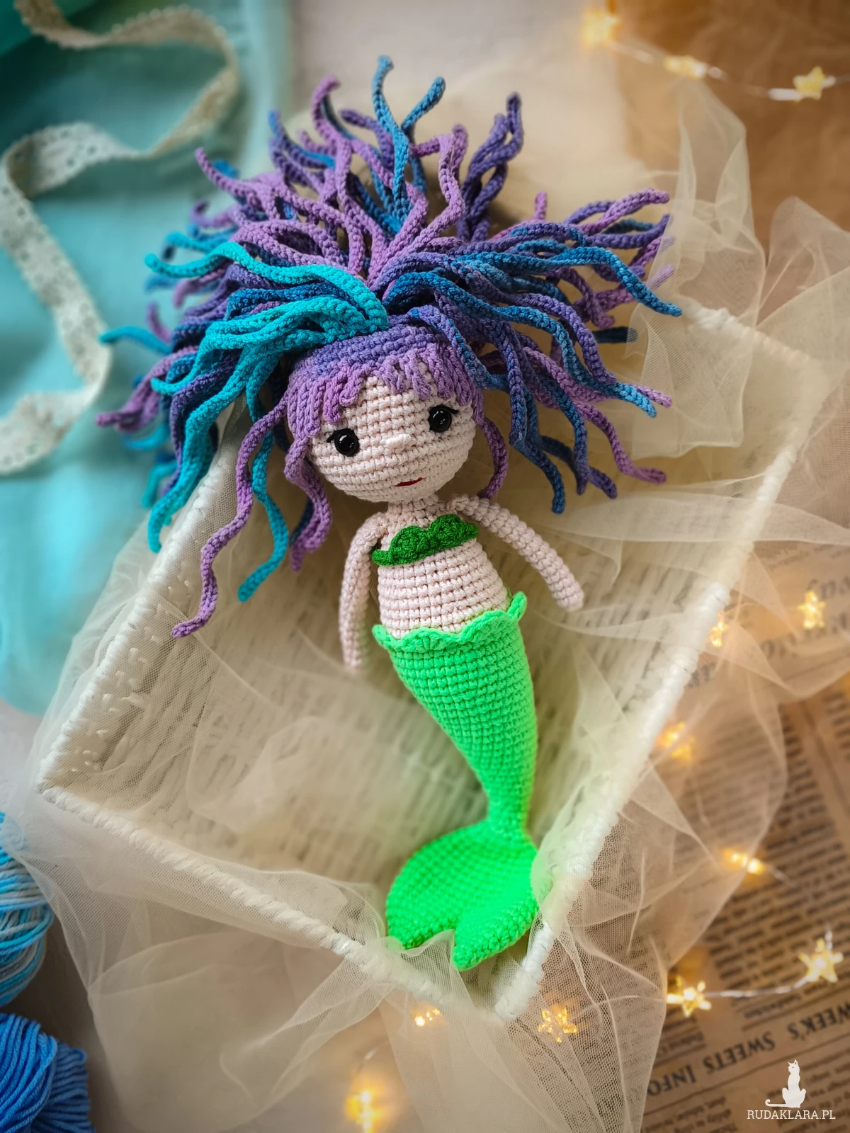 • Syrenka wykonana jest z hipoalergicznej włóczki półbawełnianej.