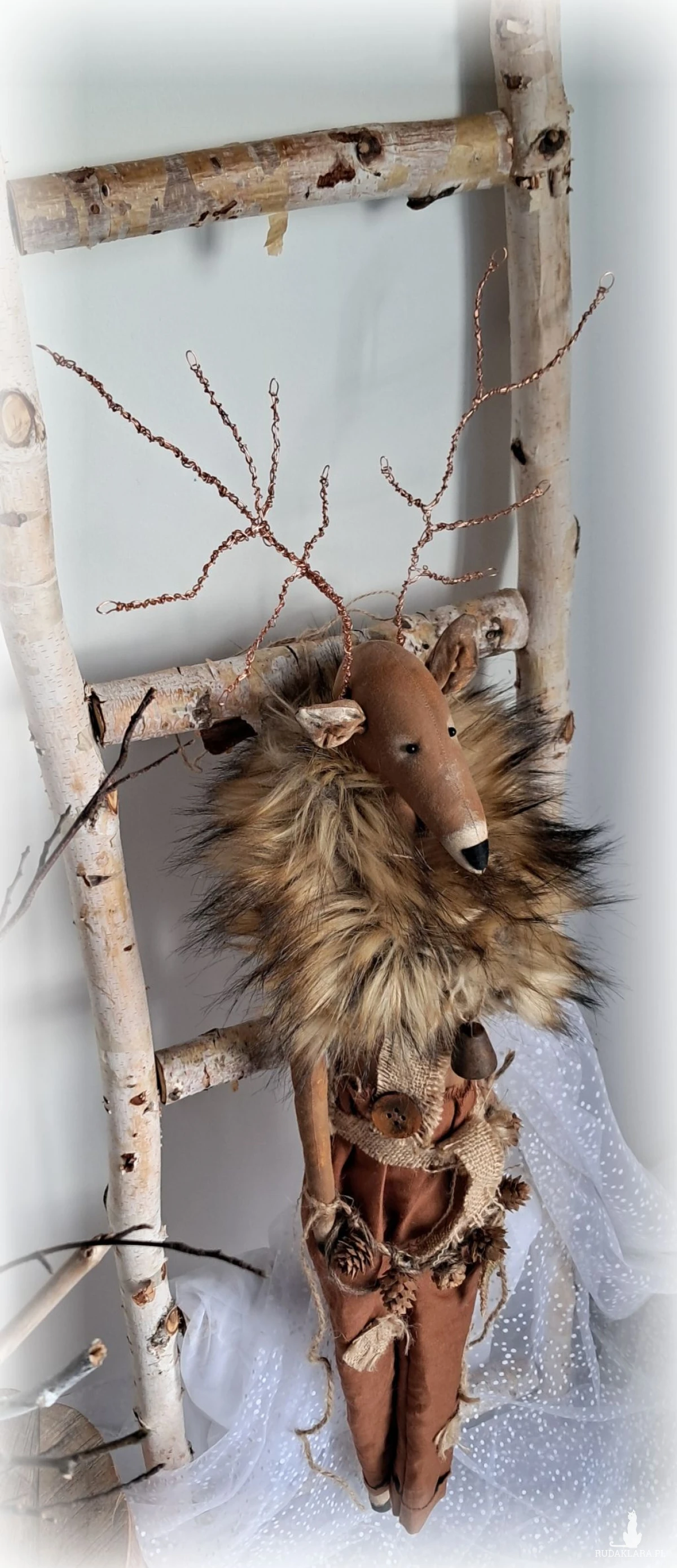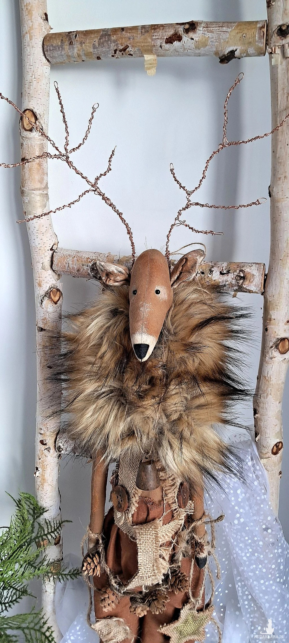 Uszyję na zamówienie renifera podobnego do tego widocznego na załączonych fotografiach. Ciałko barwione kawą. Reszta szczegółów - wielkość,kolorystyka ubrania, wybór rodzaju materiału do ustalenia w wiadomości (wówczas zobaczymy,czy będzie możliwa negocjacja ceny;)) Ten widoczny w butiku mierzy 100 cm. Czas realizacji 10 dni roboczych.Zapraszam do kontaktu:)