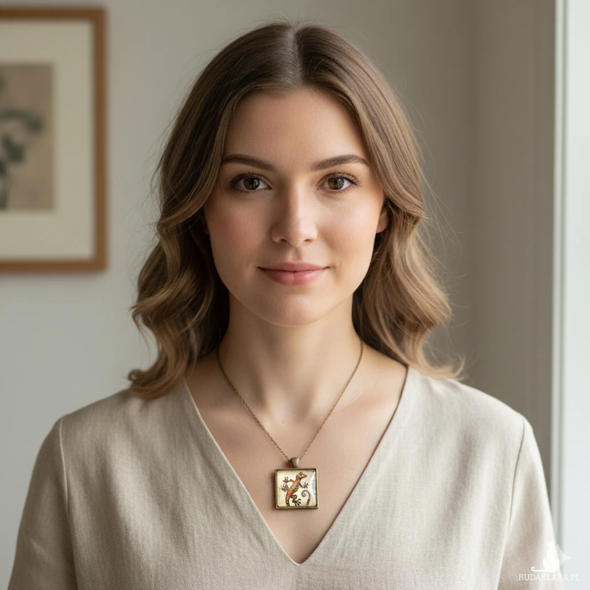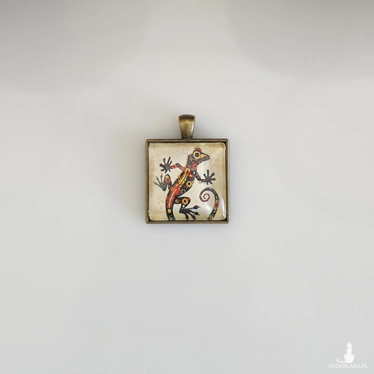 6833 Kolorowy Wisiorek Jaszczurka - Naszyjnik Gekon Boho - Biżuteria Etniczna