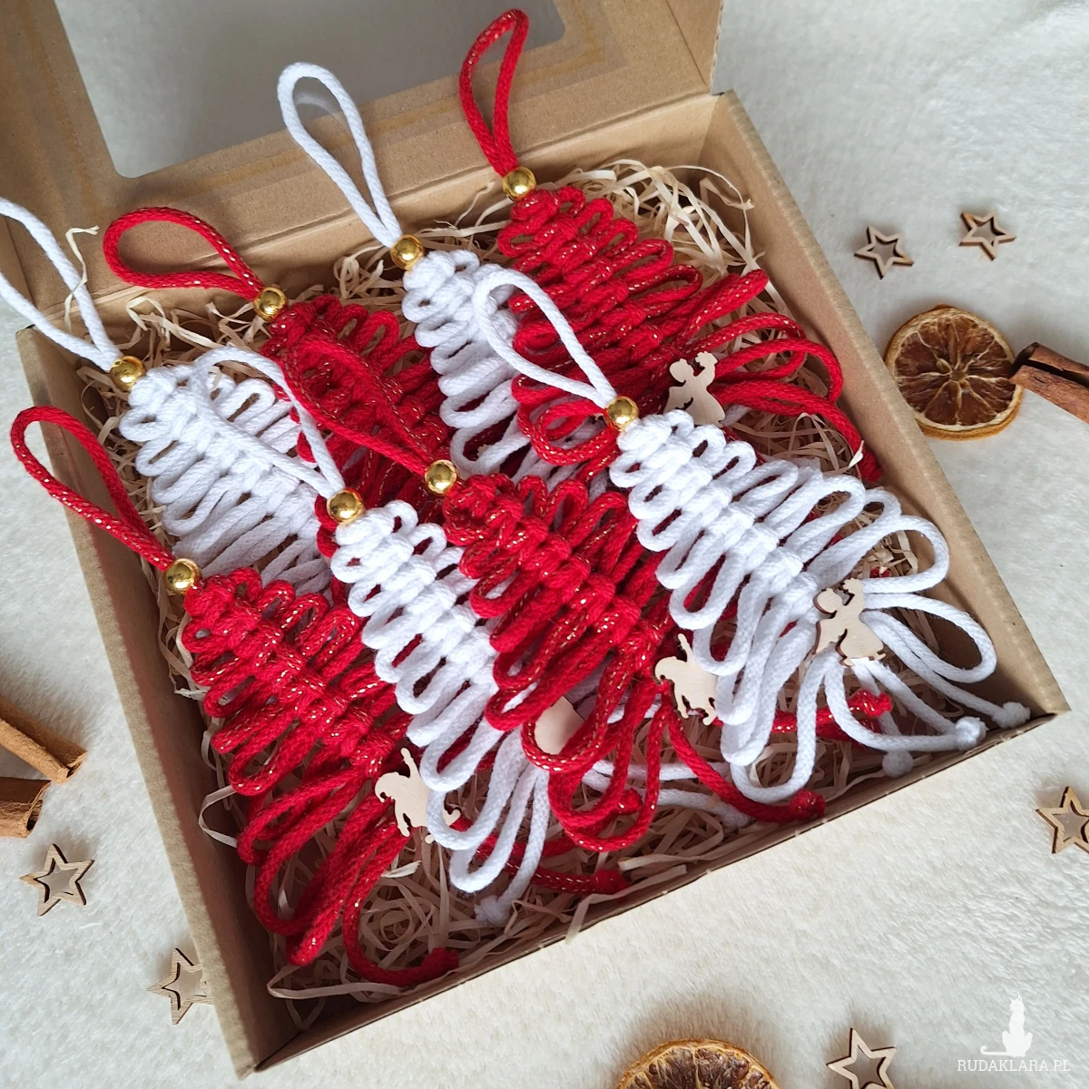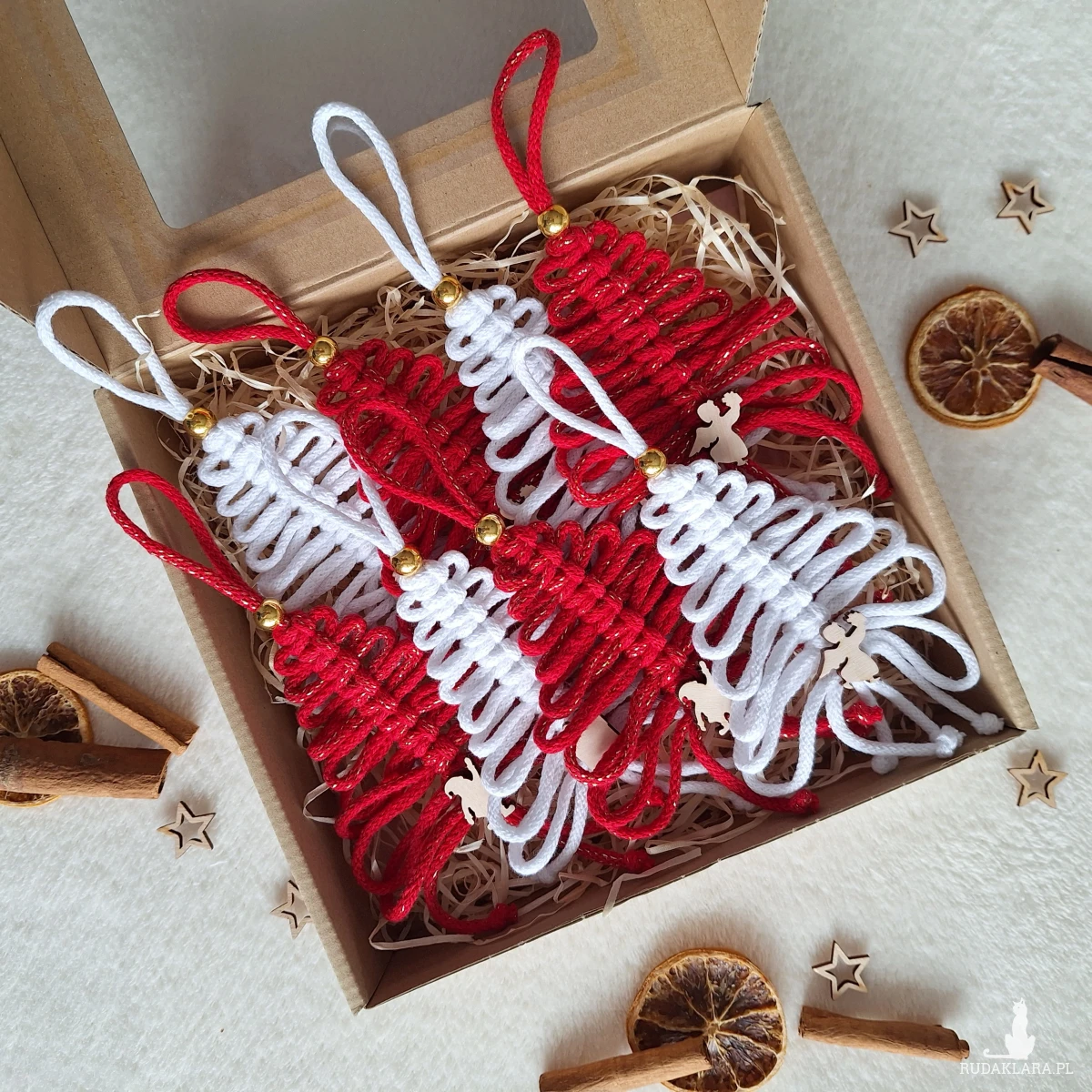 Zestaw 8 sztuk plecionych makramowych ozdób choinkowych - choineczek.