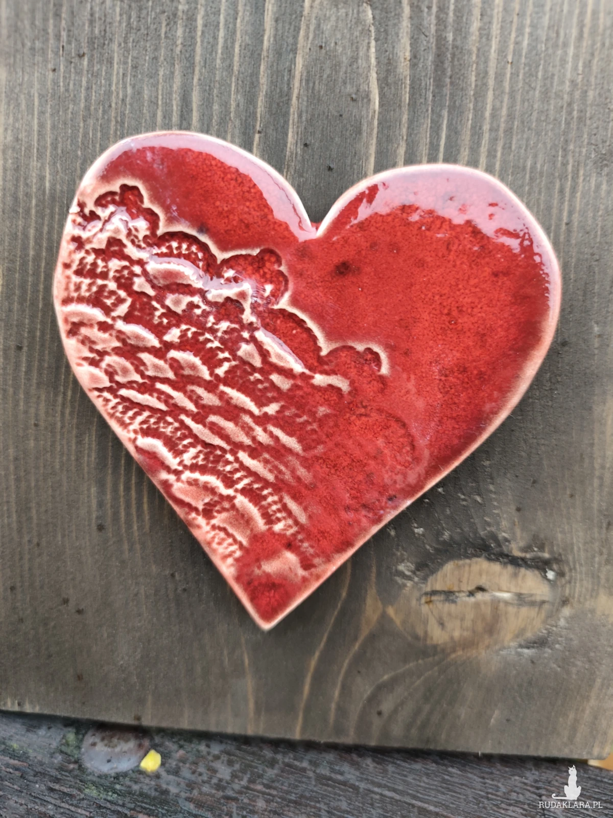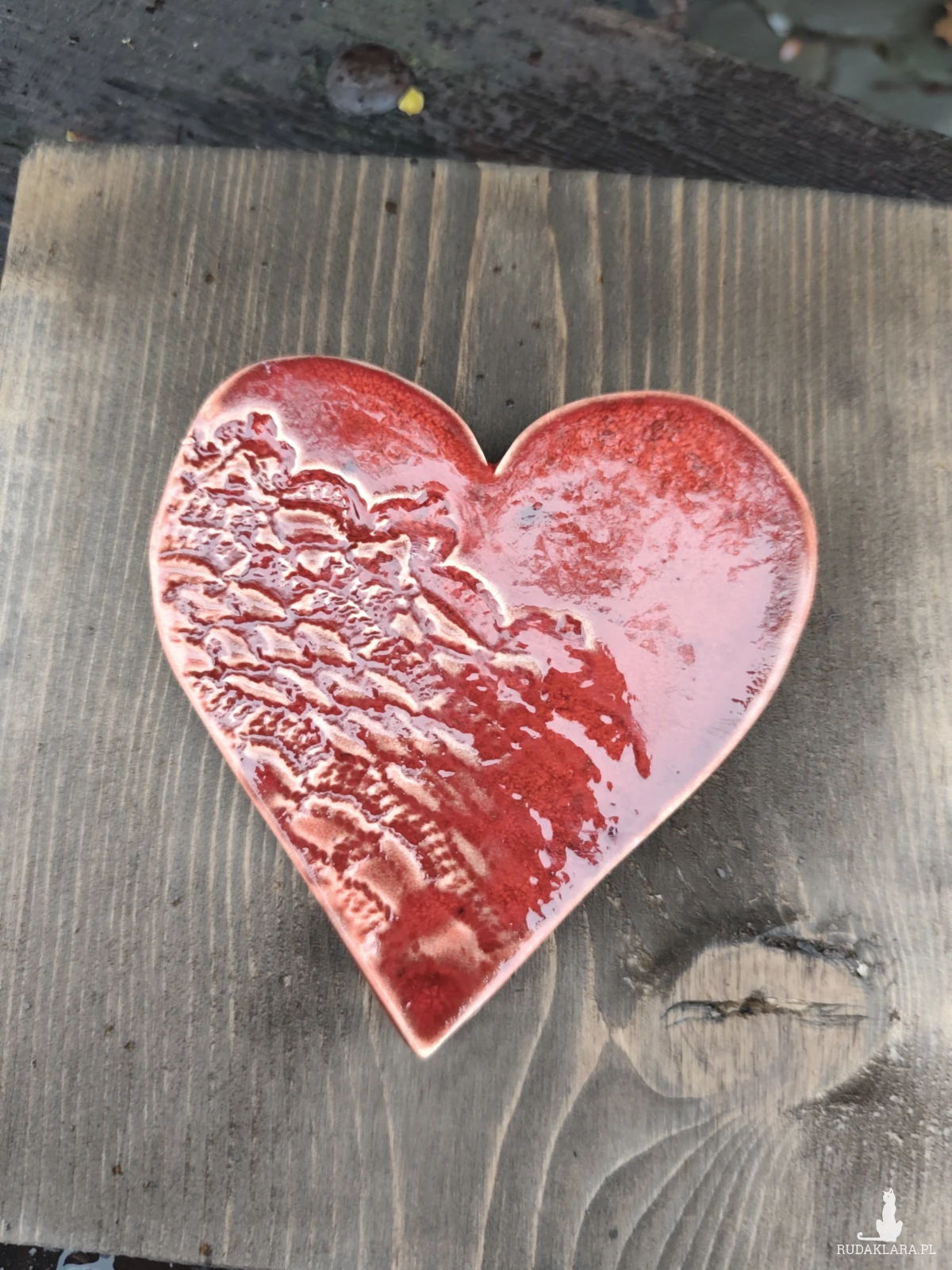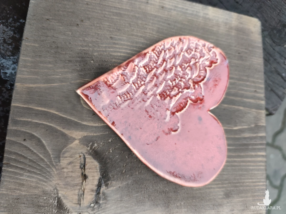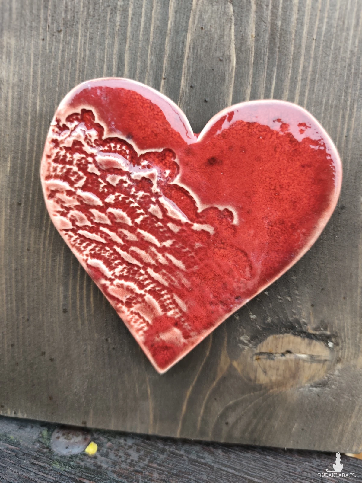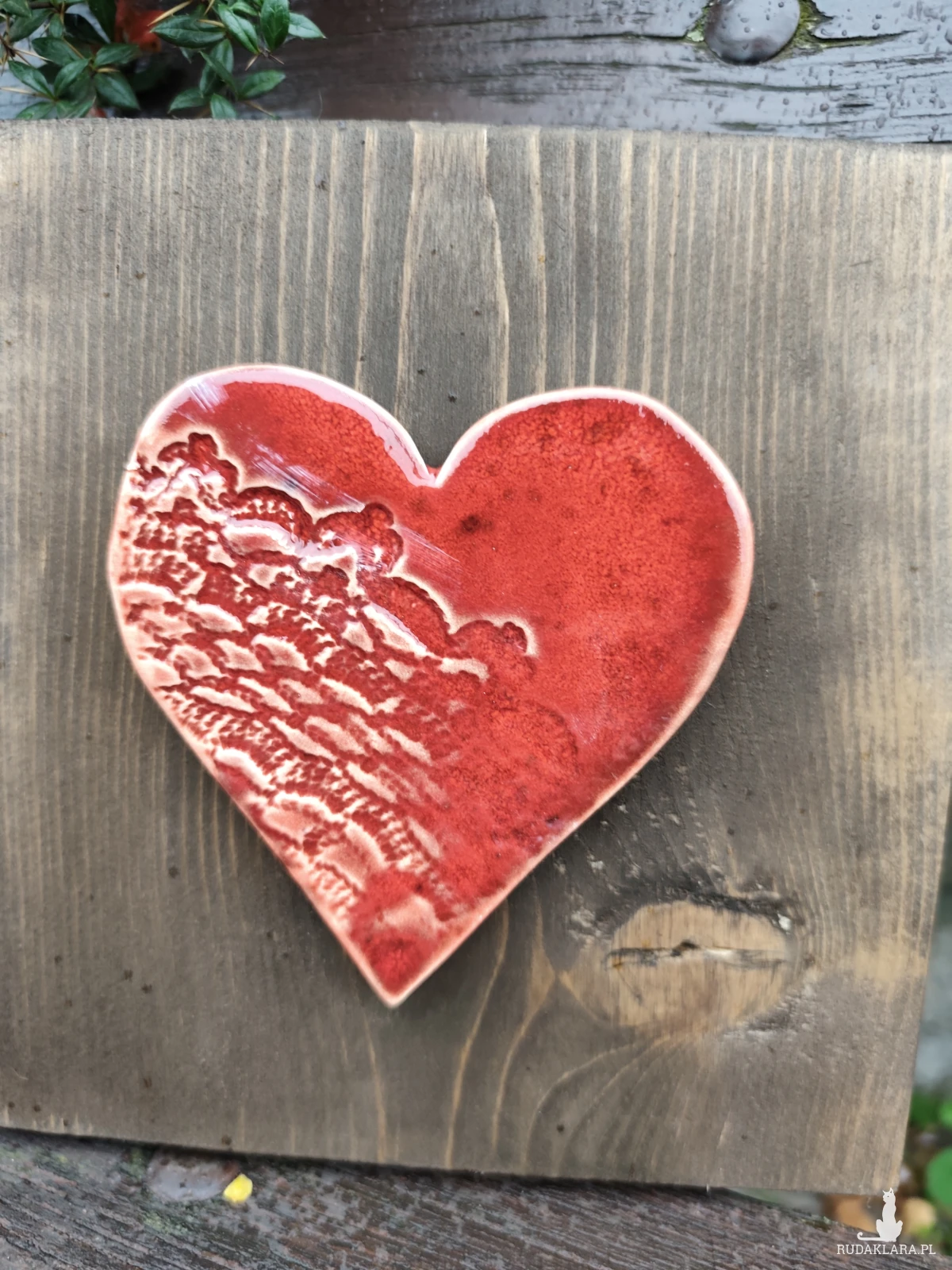 Serce ceramiczne na desce, piękna ozdoba Twoje domu. Szkliwione i dwukrotnie wypalane w piecu ceramicznym na wysoką temperaturę. Polecam. Wymiary serca 14x14cm a deski 19x20cm