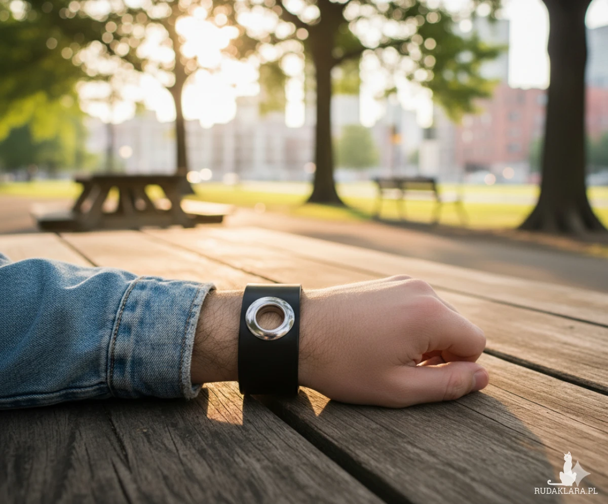 Wykonana z wysokiej jakości skóry naturalnej i trwałej stali chirurgicznej, gwarantuje komfort noszenia i odporność na codzienne wyzwania.