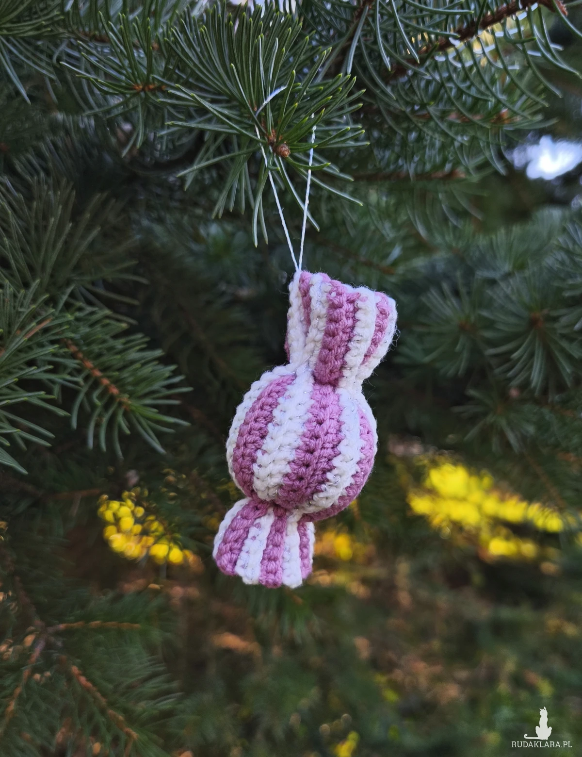 • Zawieszki cukierki w białej części mają błyszcząca srebrna nić.