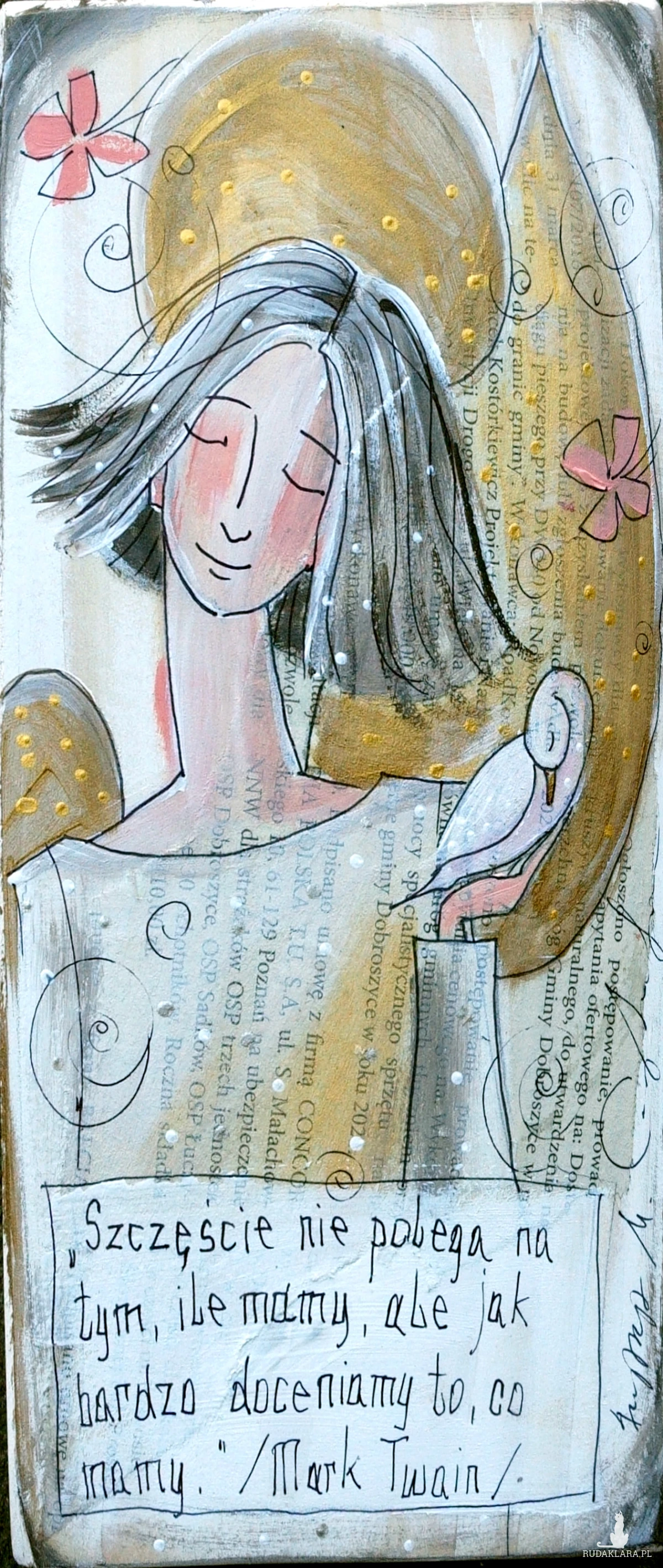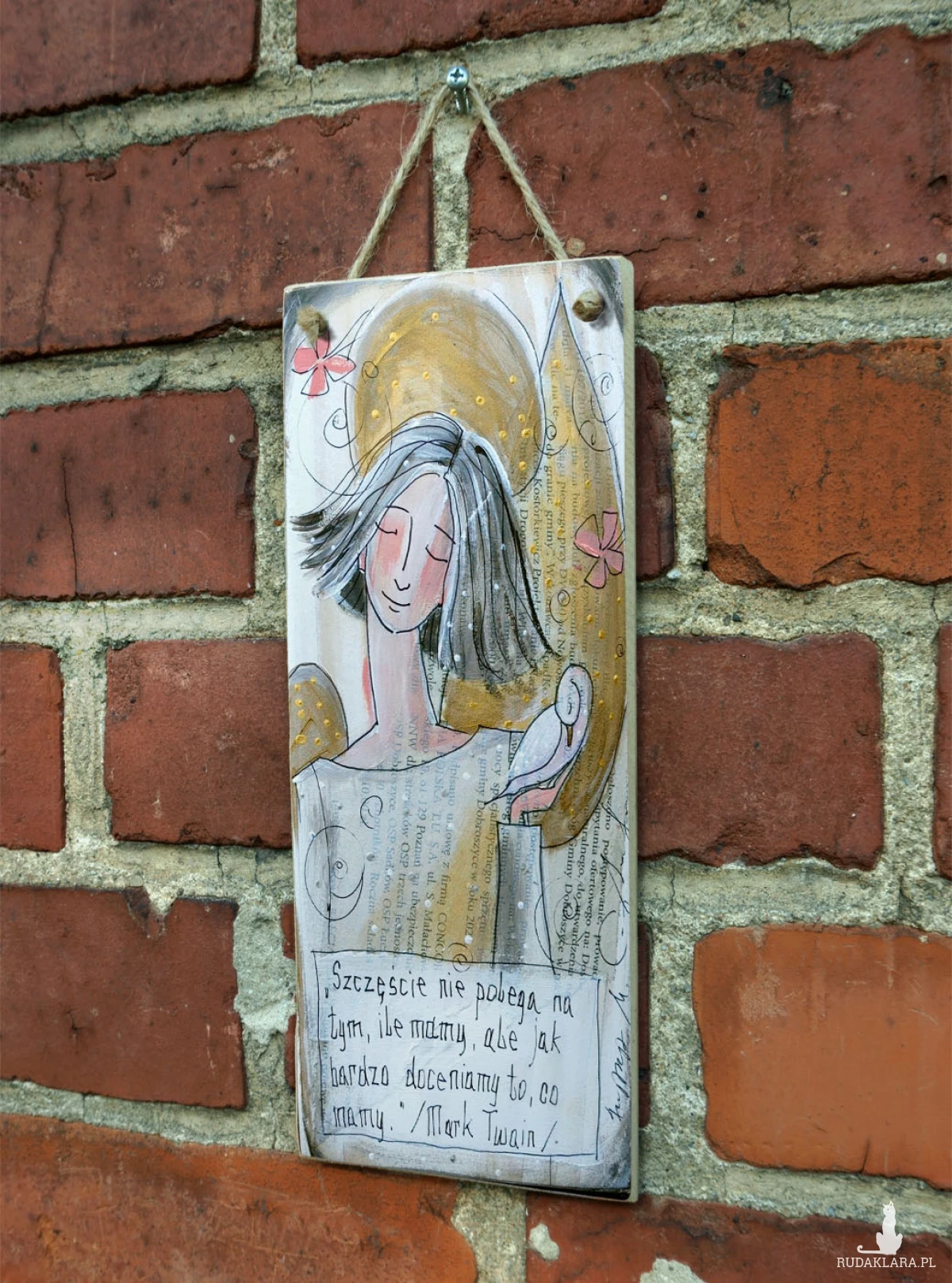 Reprodukcja autorskiej pracy, umieszczona na płycie MDF o grubości 6 mm, z zawieszką w postaci ekologicznego sznurka.