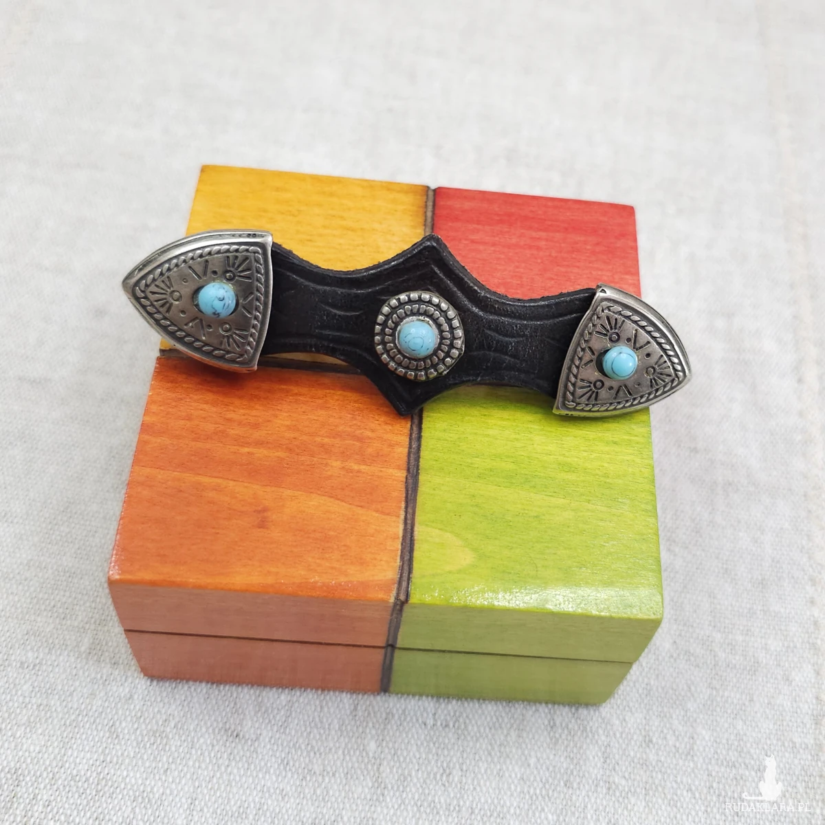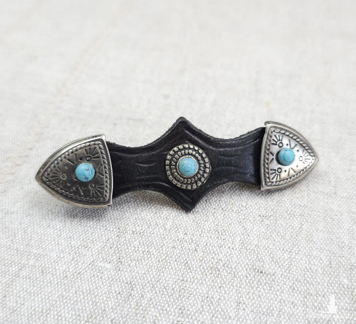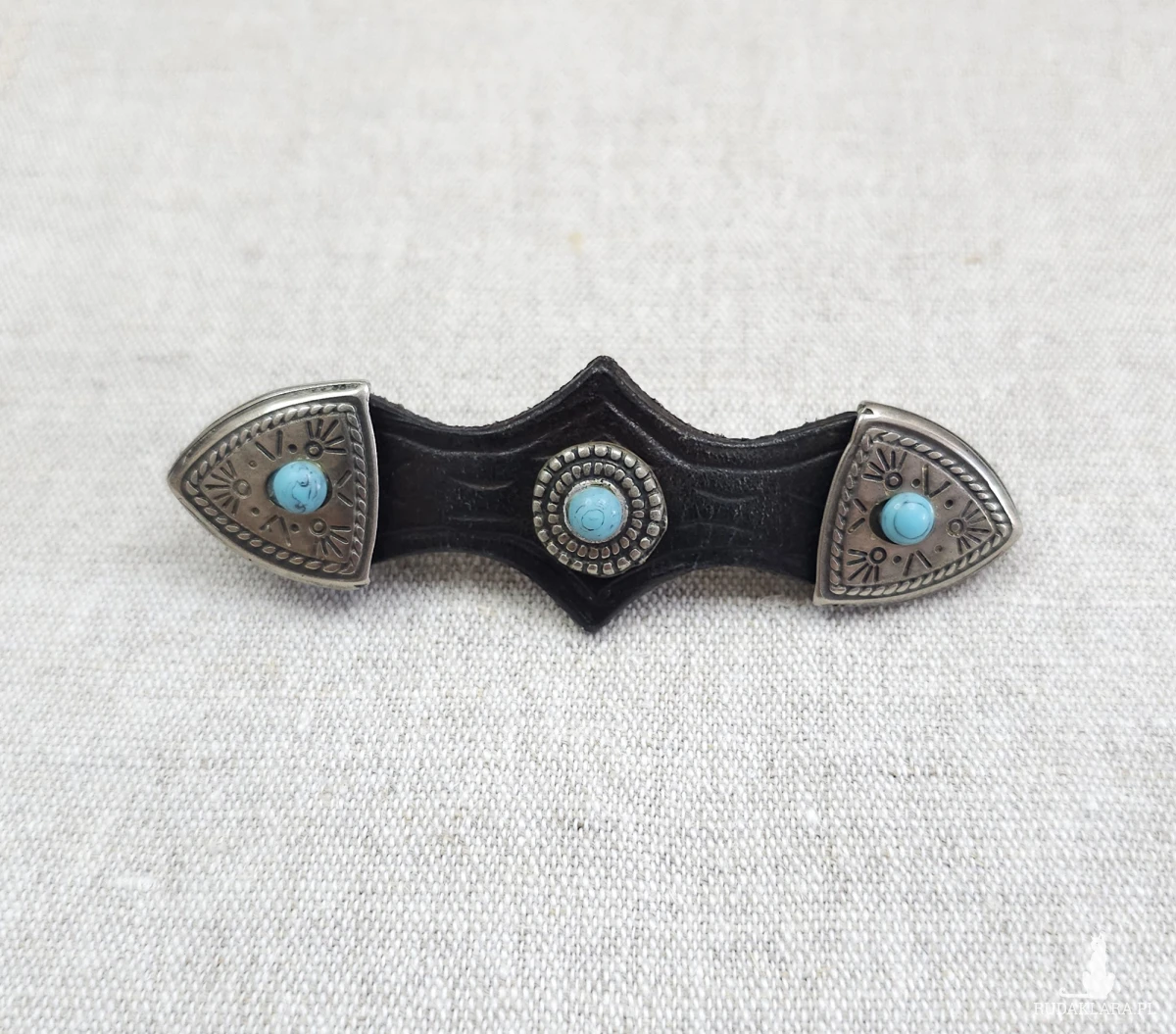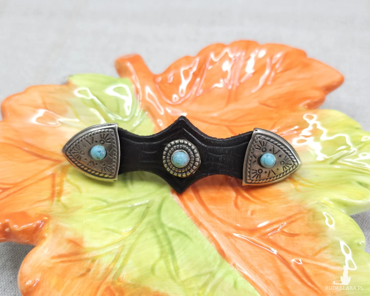 W centralnej części i po bokach umieszczone są piękne kamienie, które przypominają naturalny turkus , charakterystyczny dla biżuterii rdzennych plemion Ameryki Północnej.