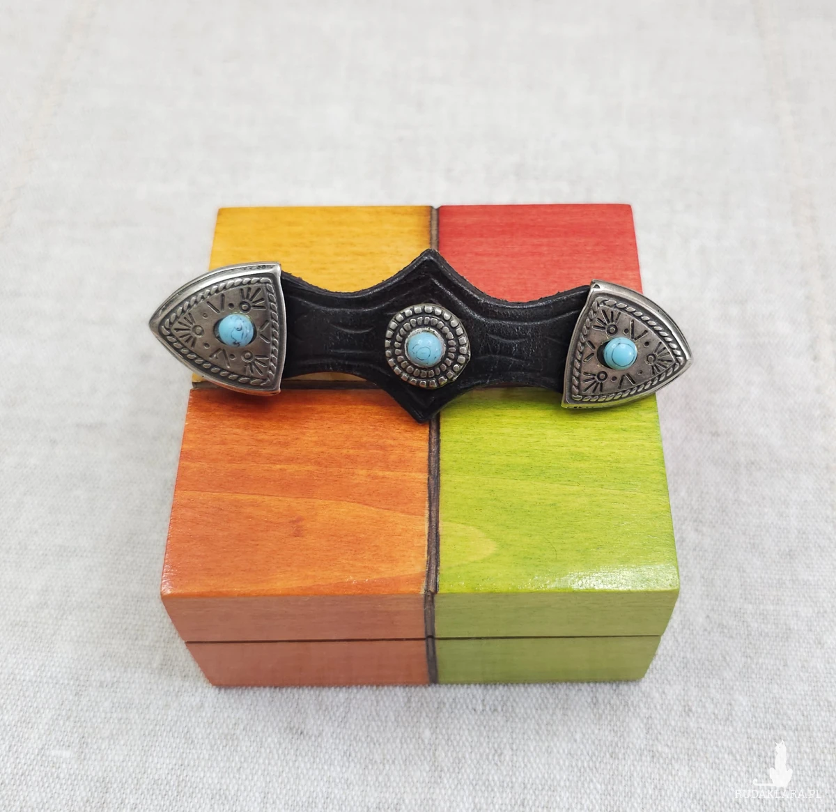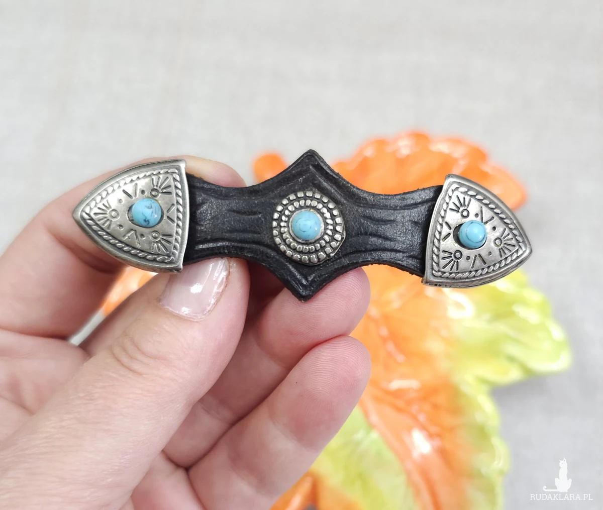 Wykonana z ciemnej skóry i ozdobiona detalami w stylu concho