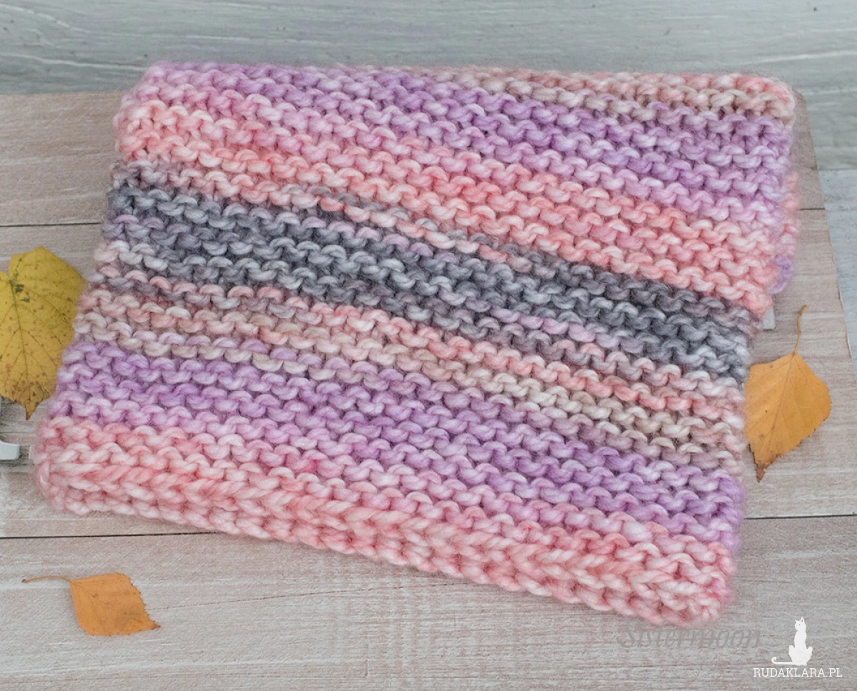 Otulacz rewelacyjnie ogrzewa, nie powinien podgryzać (jeśli jednak jesteś wrażliwsza na wełnę, wybierz raczej coś innego). Idealny na zimne dni. Można nosić do czapki lub opaski, można też w naprawdę zimny czas zakładać na głowę (na to kaptur – wersja eskimo ;)), spokojnie „ogarnie” szyję i głowę. Kolorystycznie dobrze współgra z czernią, szarościami, grafitem, bielą, brązem).