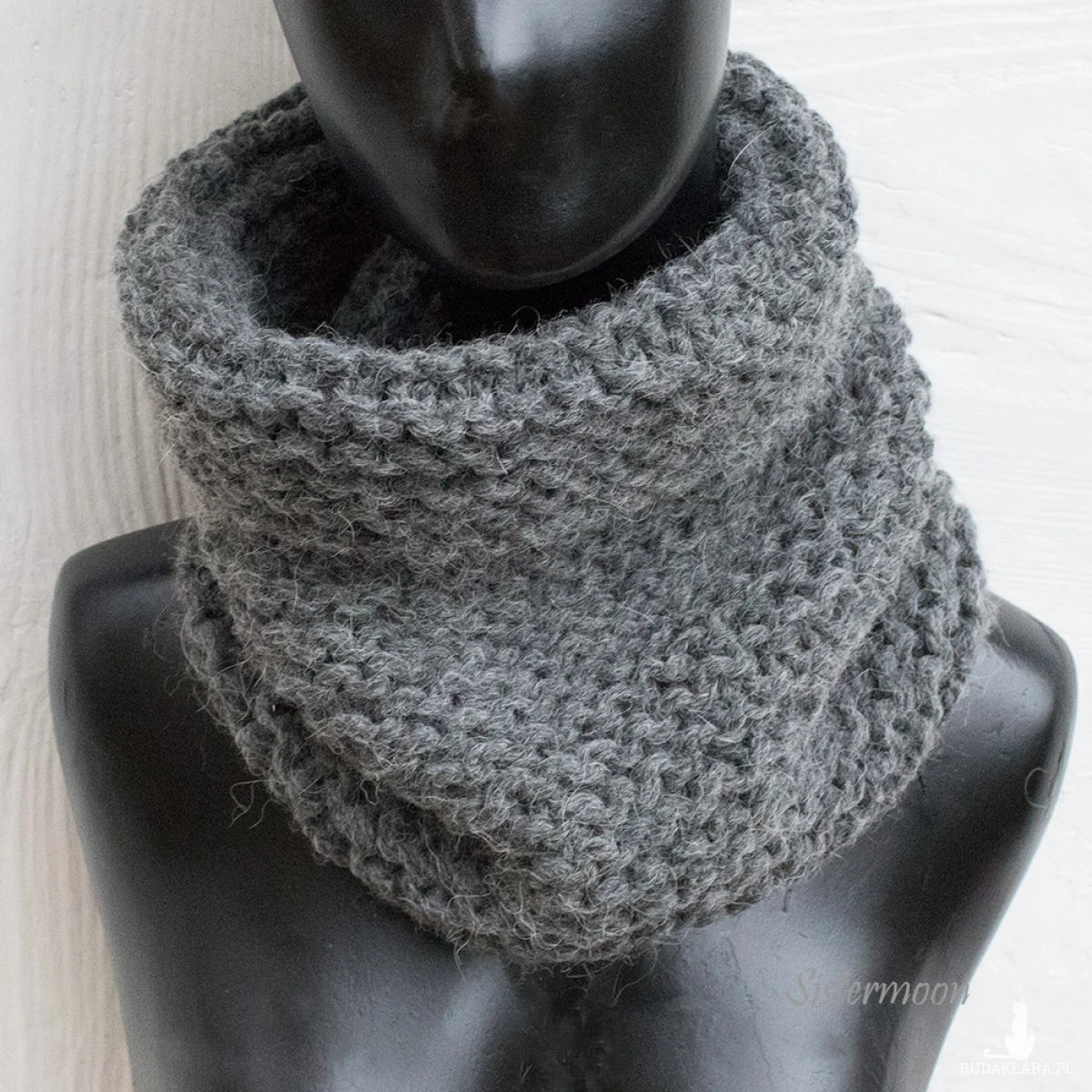 Ciepły komin tuba z alpaki w kolorze grafitowym (ciemny szary). Wykonany ręcznie z wysokiej jakości grubej włóczki, mieszanki alpaki, wełny i akrylu. Włóczka z dobrym skrętem, miła i miękka w dotyku, z delikatnym włoskiem. Wzór francuski, mięsisty, lepiej ogrzewa, jest bardzo elastyczny.