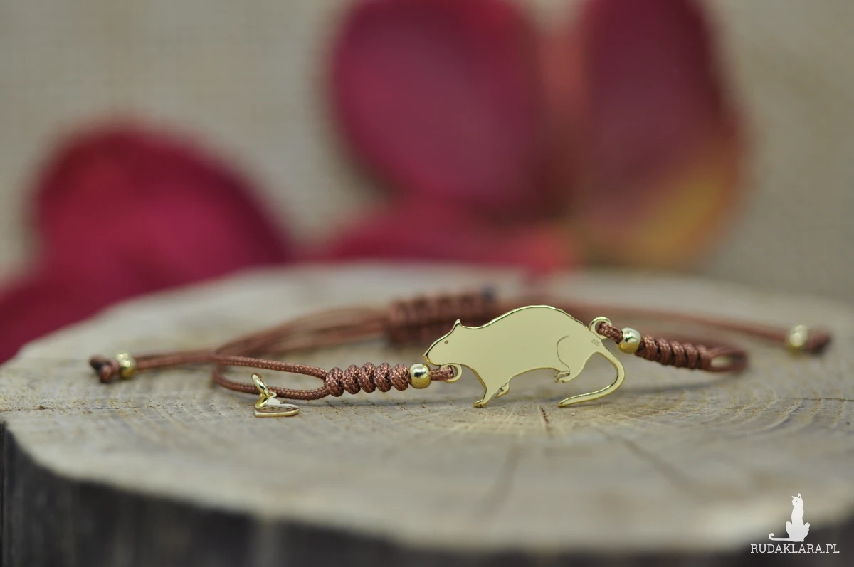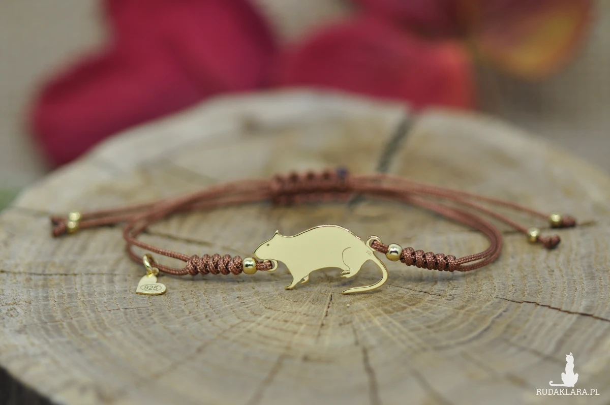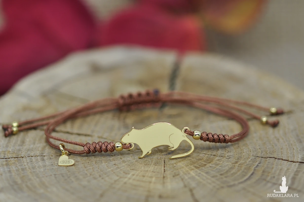 Szczurek ze srebrnej blachy próby 925, wymiary: 25,1 x 15,2 mm, grubość 0,8 mm oraz srebrne dodatki.