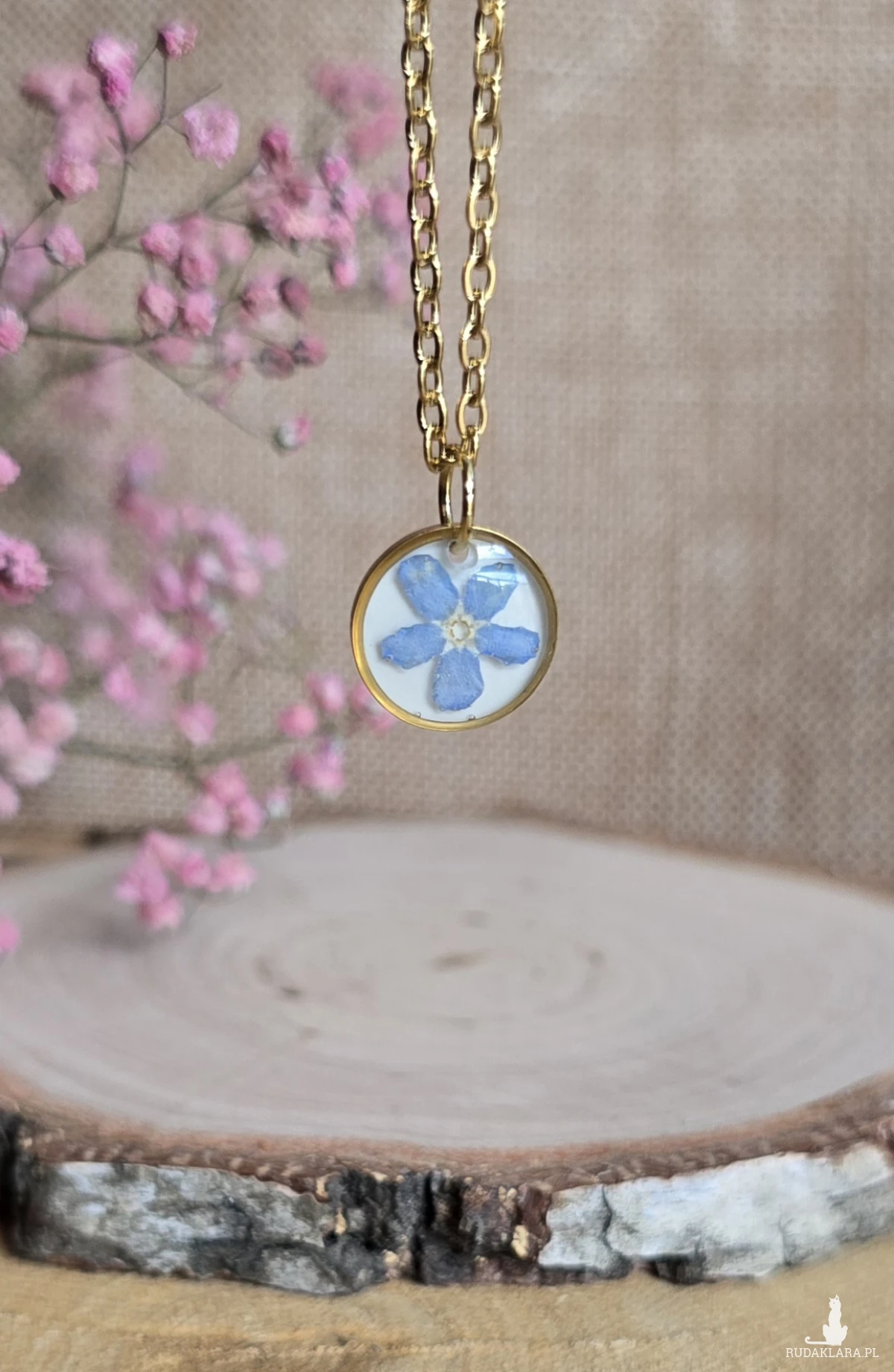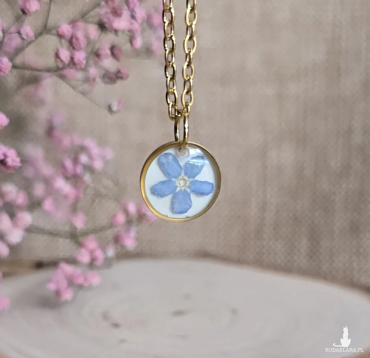 Oferuję Państwu unikalną biżuterię. Zawieszka jest wykonana z suszonych kwiatów i żywicy epoksydowej. Biżuteria jest wspaniałym i oryginalnym prezentem na lata.