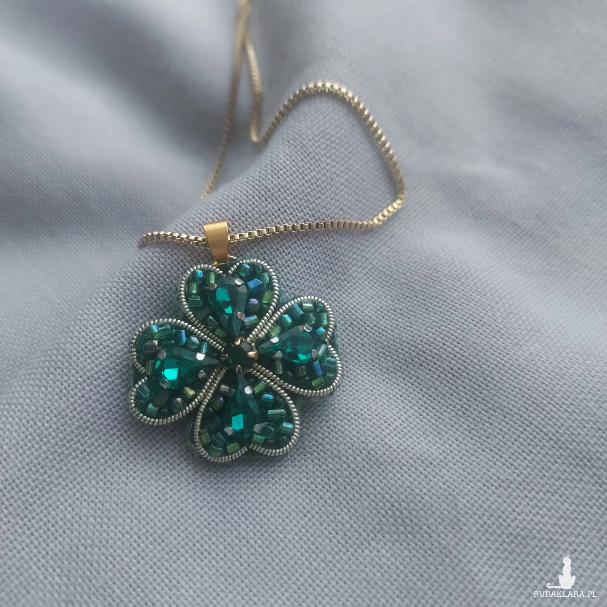 Wisior czterolistna koniczyna - piękno, które urzeka blaskiem kryształków.