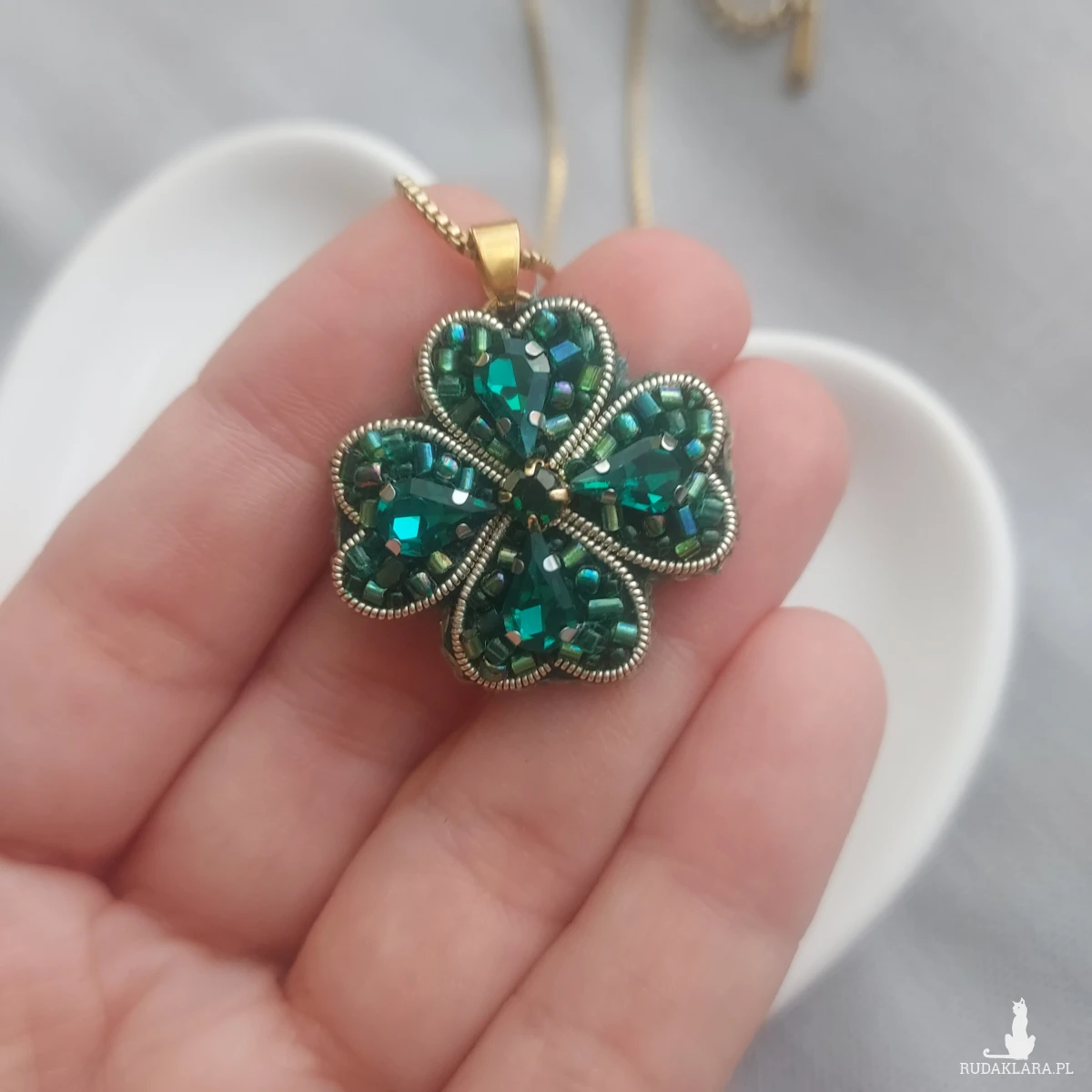 Wisior powstał techniką haftu koralikowego, gdzie każdy najdrobniejszy koralik został przyszyty z pasją!