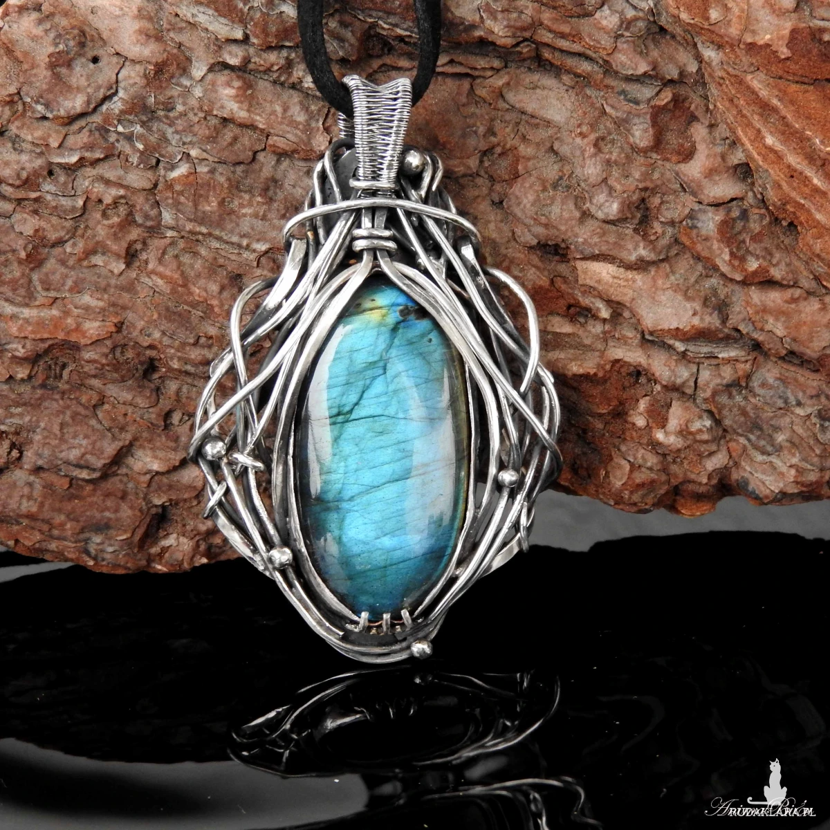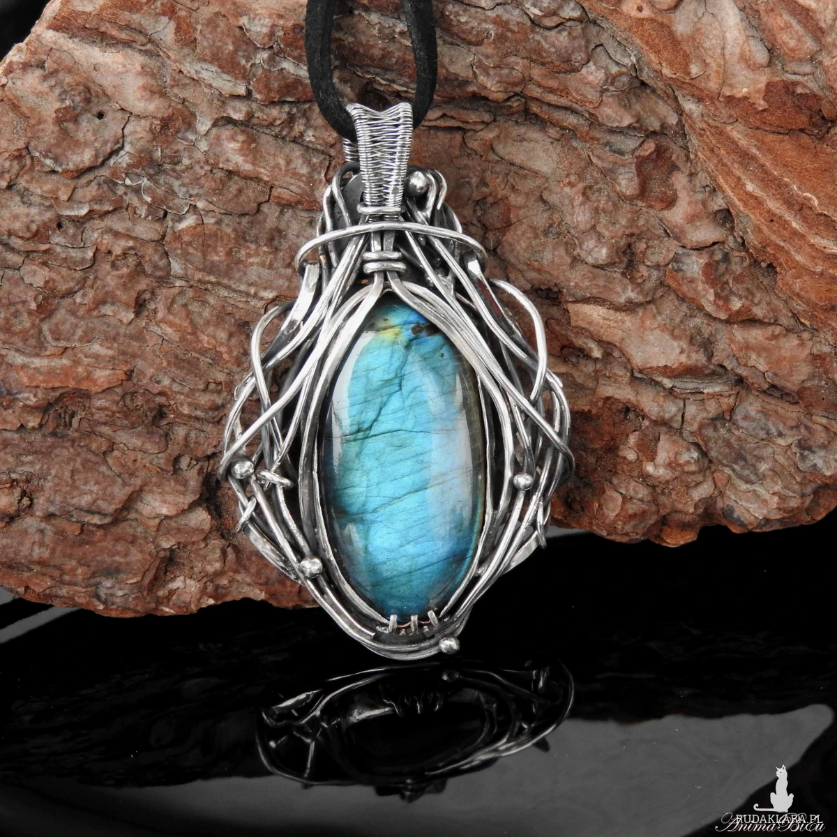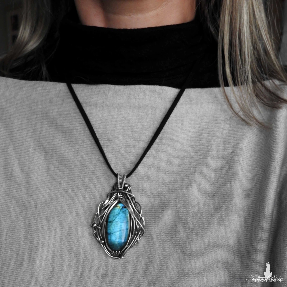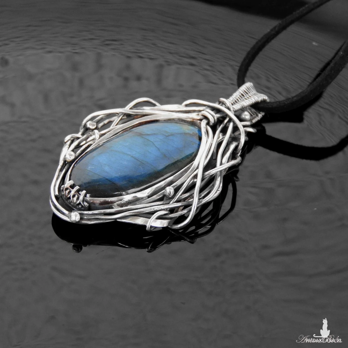 Wisiorek srebrny z niebieskim labradorytem. Wykonany od