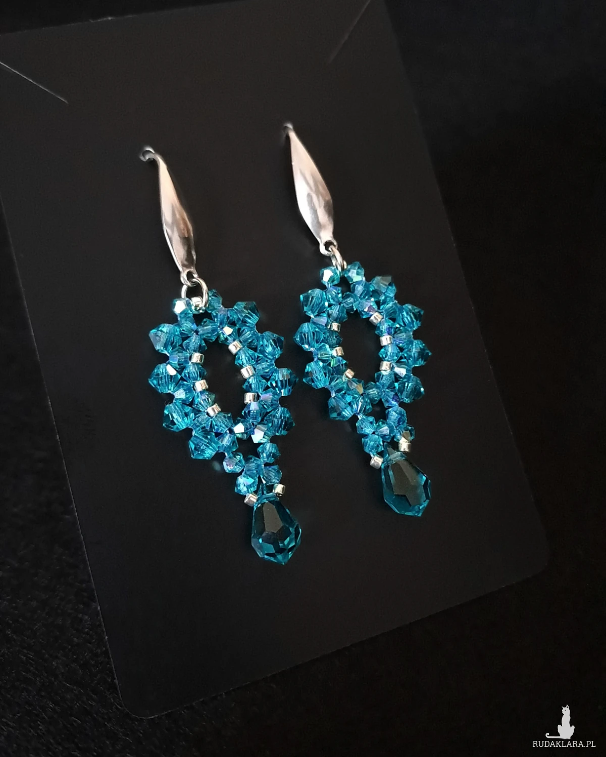 - Zawieszka w kształcie kropli – również w kolorze Blue Zircon, idealnie dopełnia formę