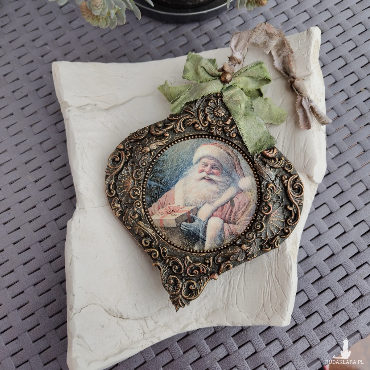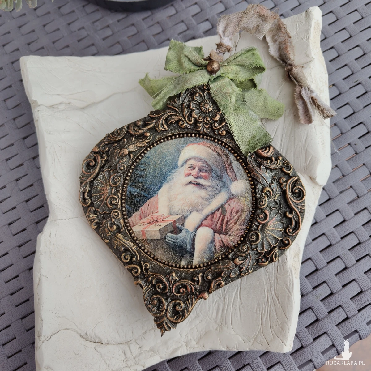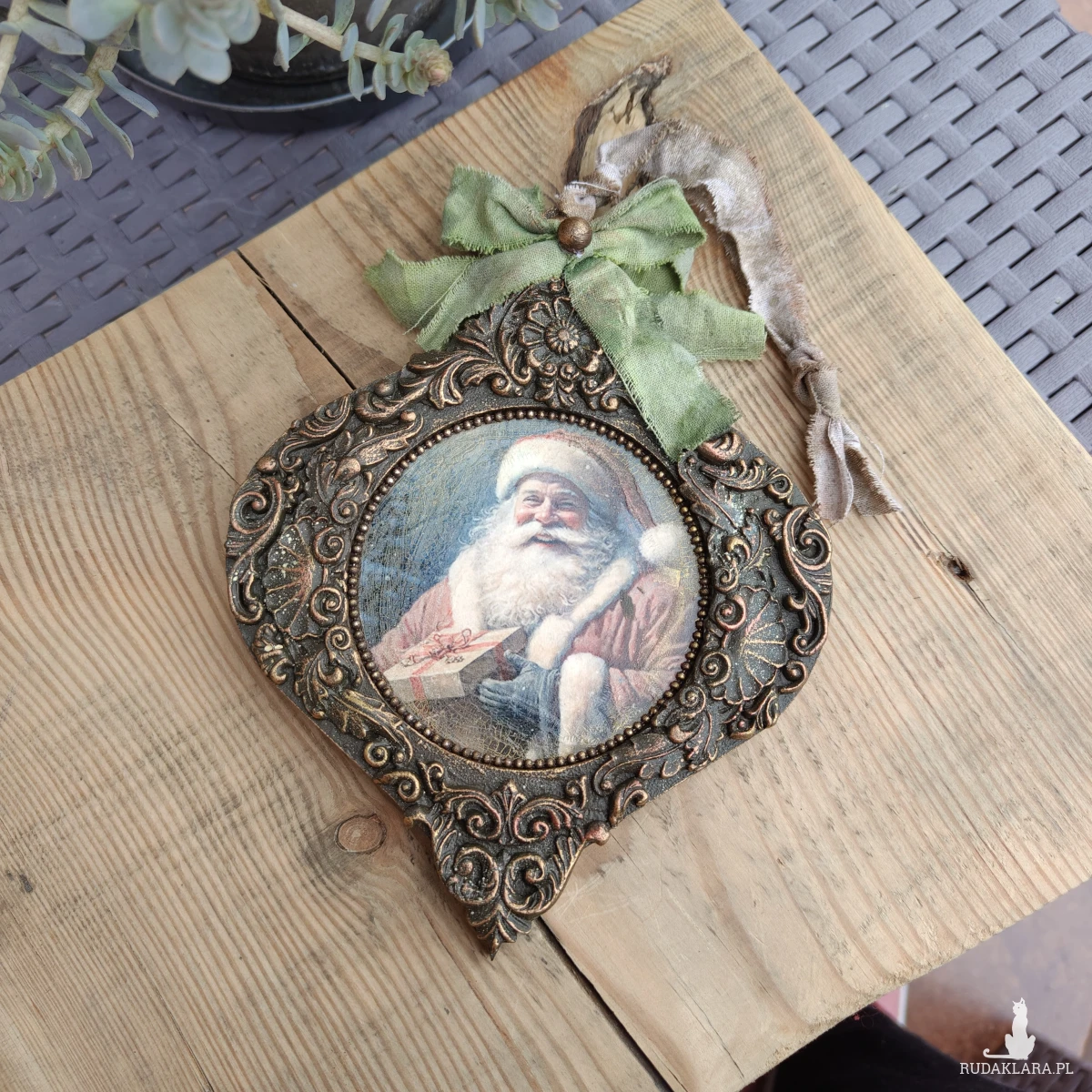 Wprowadź do swojego domu magiczny, świąteczny nastrój dzięki tej stylowej zawieszce retro z wizerunkiem uśmiechniętego Świętego Mikołaja. To wyjątkowa ozdoba, która zachwyca bogatymi zdobieniami i klasycznym urokiem dawnych świąt. Idealna do powieszenia na choince, kominku lub jako element świątecznej dekoracji wnętrza, doda twojemu domowi ciepła, nostalgii i wyjątkowego klimatu Bożego Narodzenia.