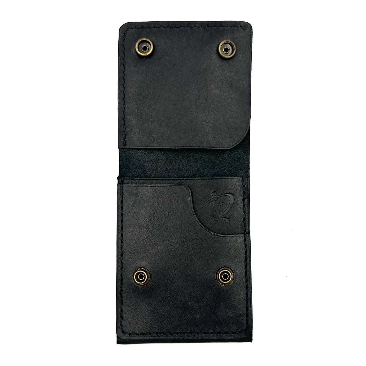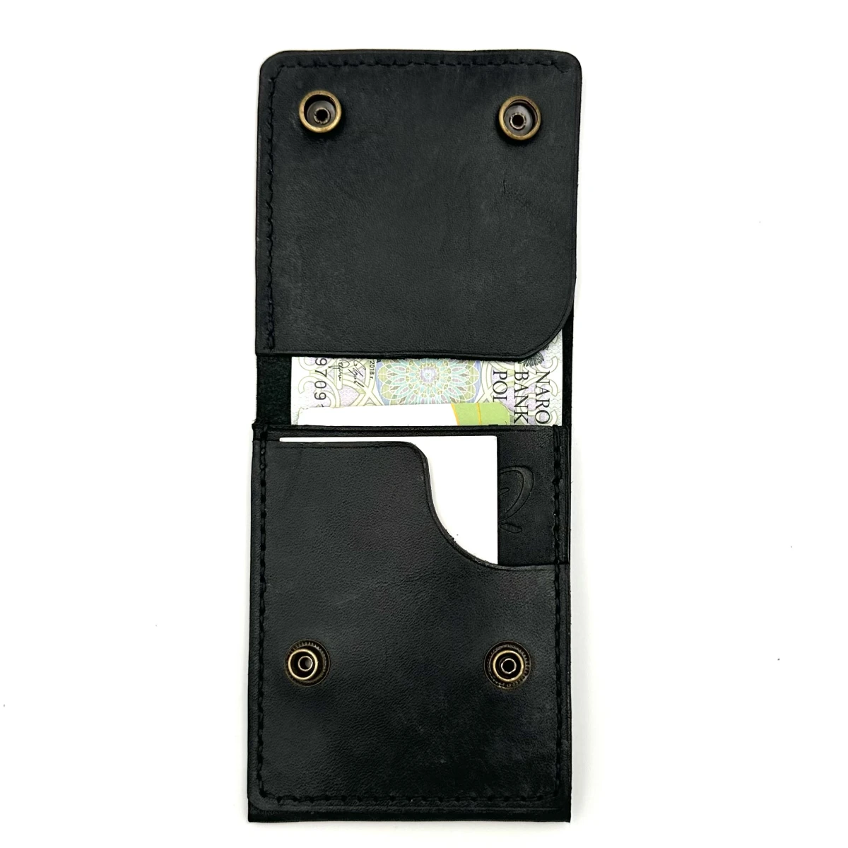 Portfel w kolorze czarnym. Nici kolor czarny.