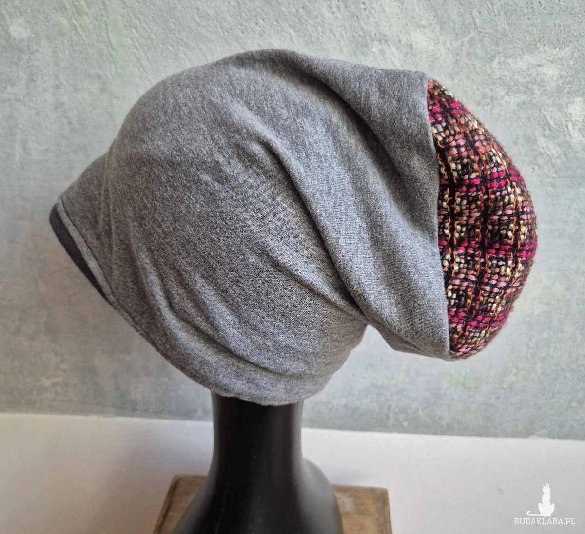 Czapka szara gora kolorowa na podszewce rozmiar M,obwod glowy 54-55cm,ciepła i miła wykonana w pojedynczym egzemplarzu rękodzieło polecam boks A1
