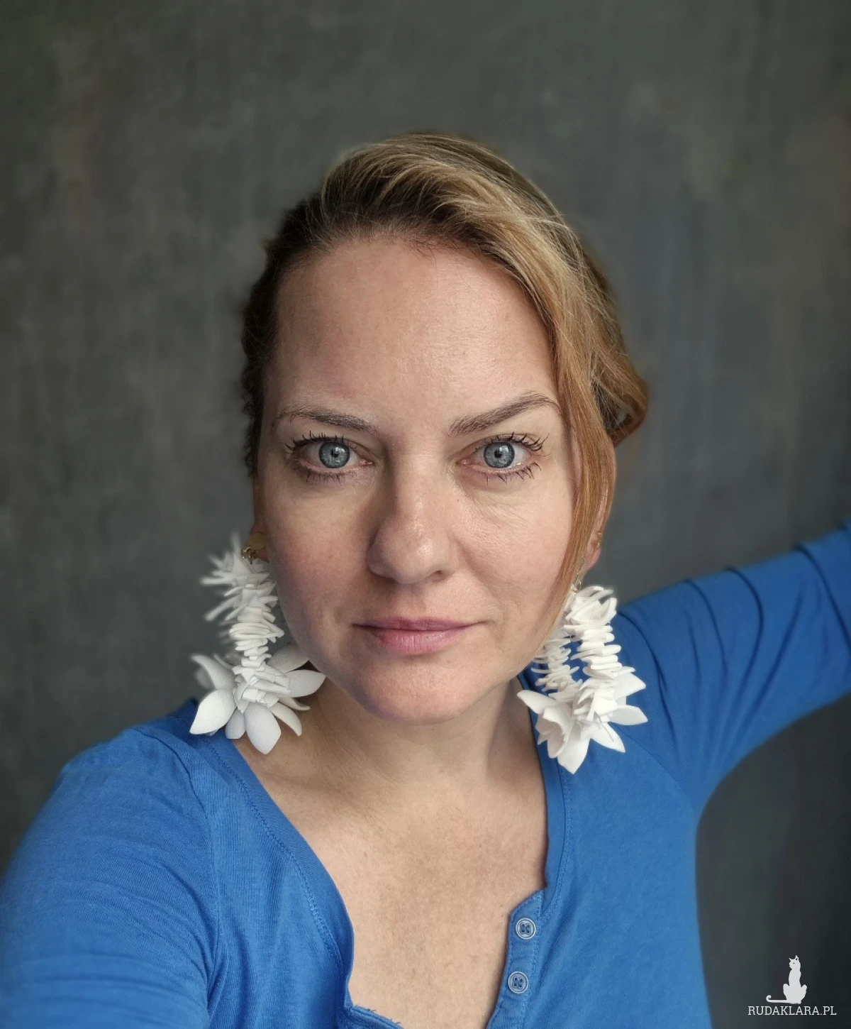 Klipsy szalone, ukwiecone koła bardzo duże lekkie widoczne dla osoby która lubi istnieć i być tu teraz i wszędzie polecam