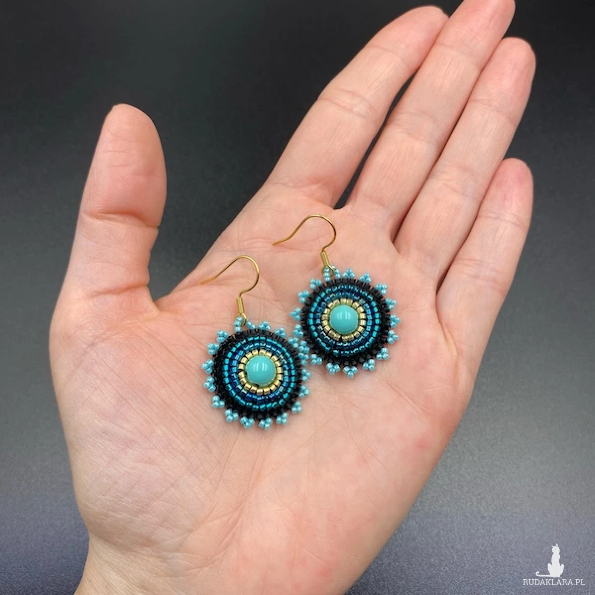 Kolory kolczyków: turkusowy, czarny, złoty, morski.