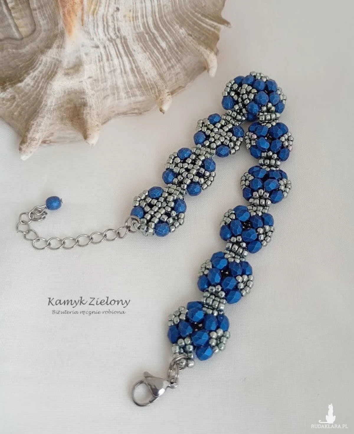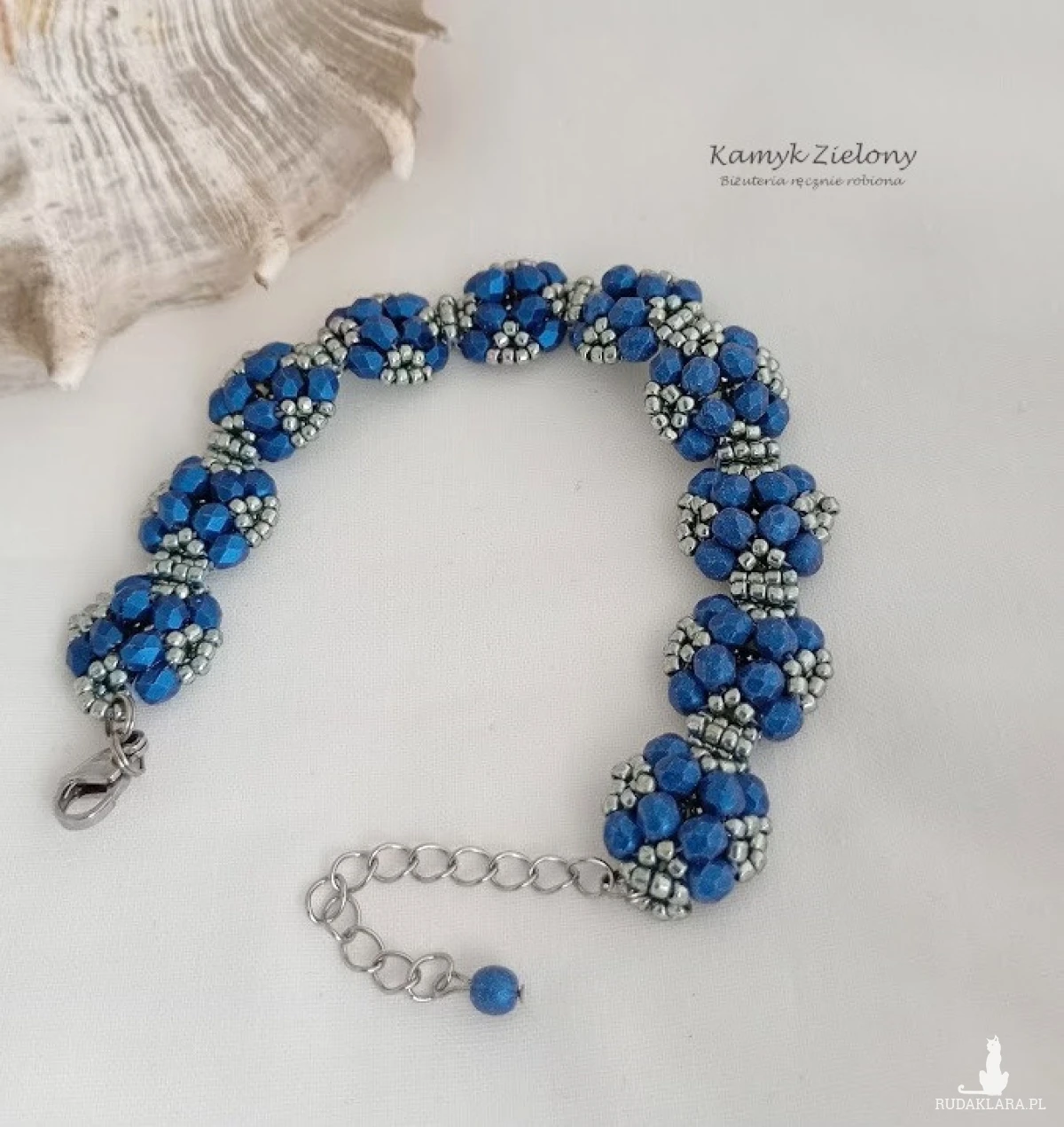 Bransoletka jest zapinana na karabińczyk z łańcuszkiem przedłużającym. Dzięki temu jej długość można z łatwością dopasować do obwodu nadgarstka. Na końcu łańcuszka przedłużającego dopięto kuleczkę w ciemnoniebieskim kolorze, idealnie pasującą do koloru kryształków.