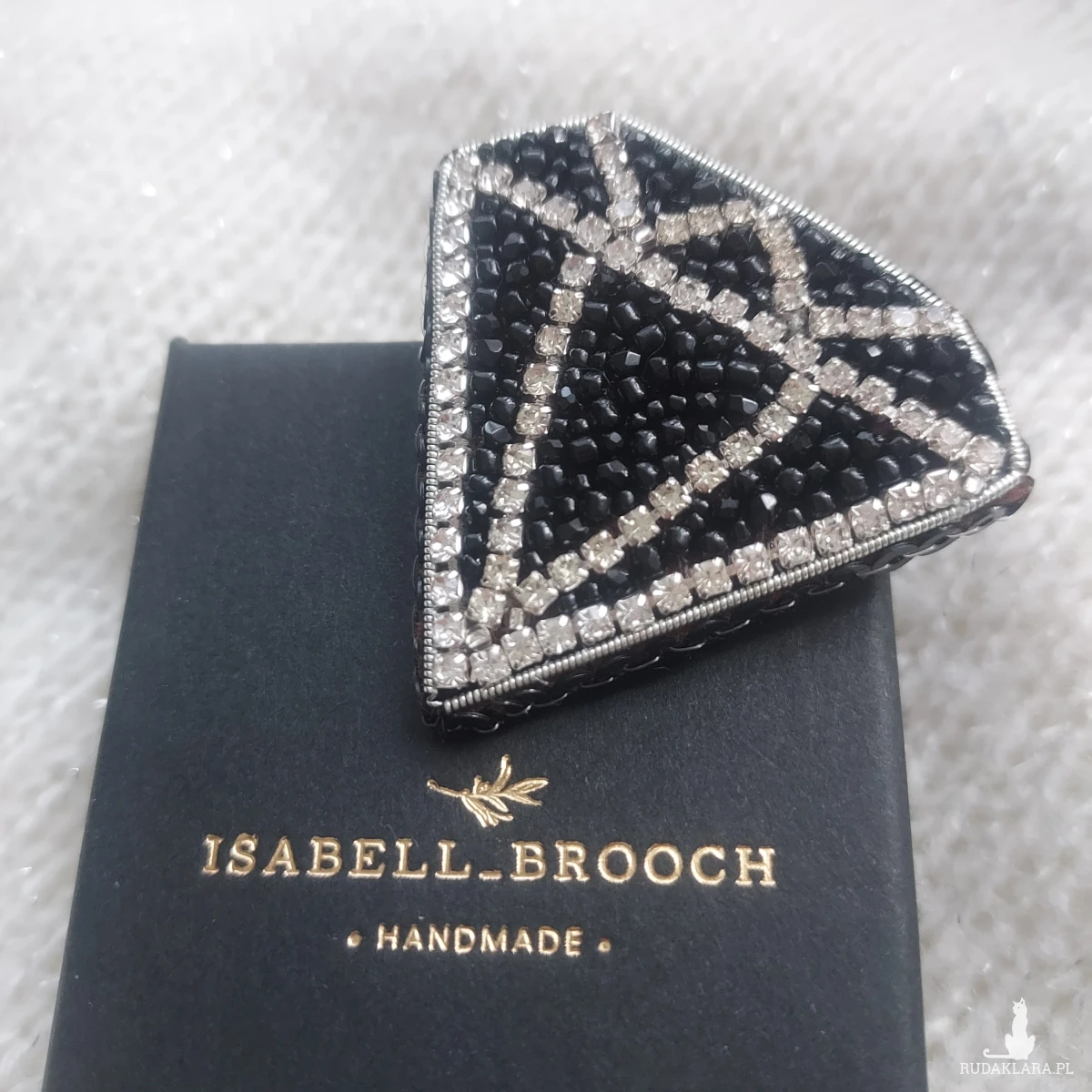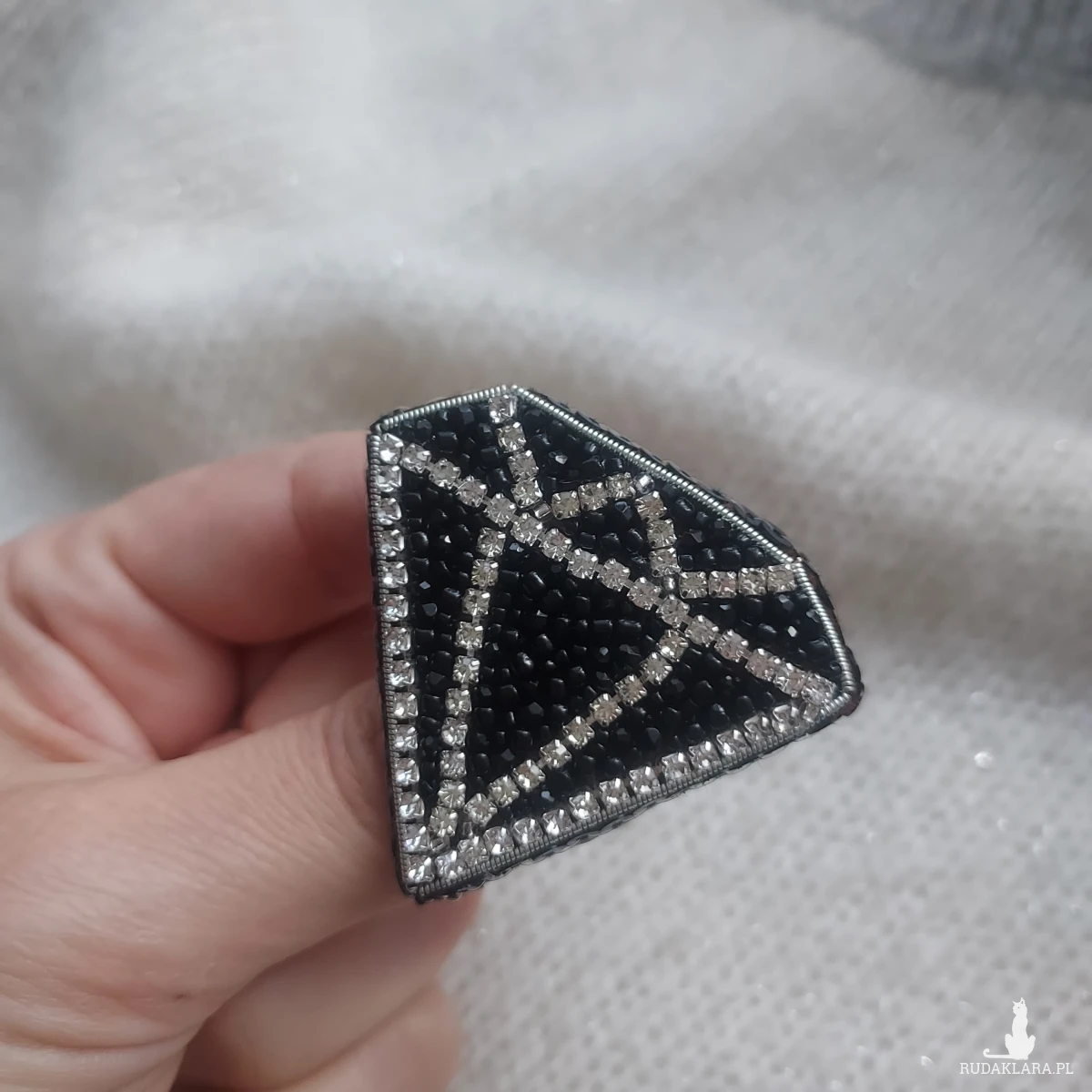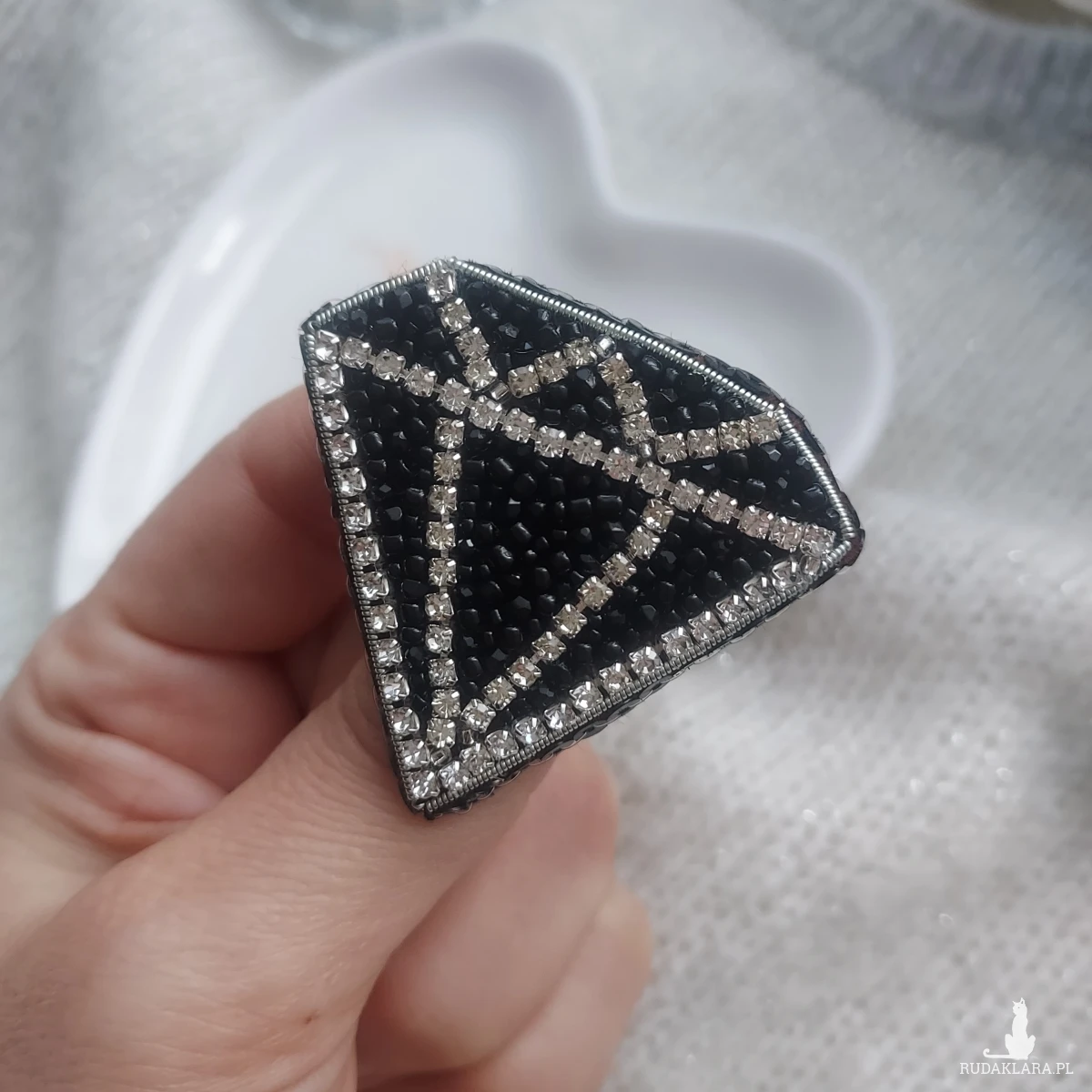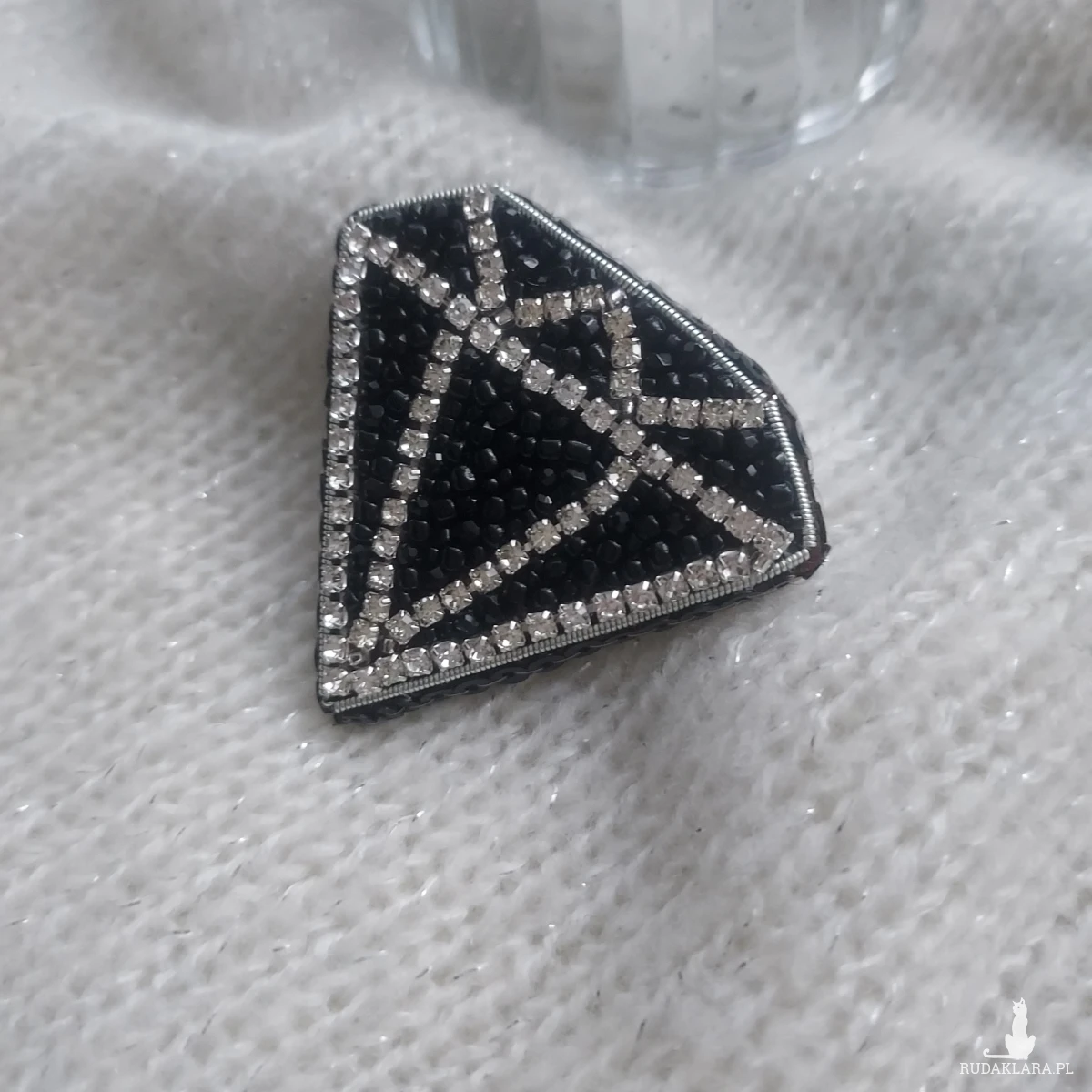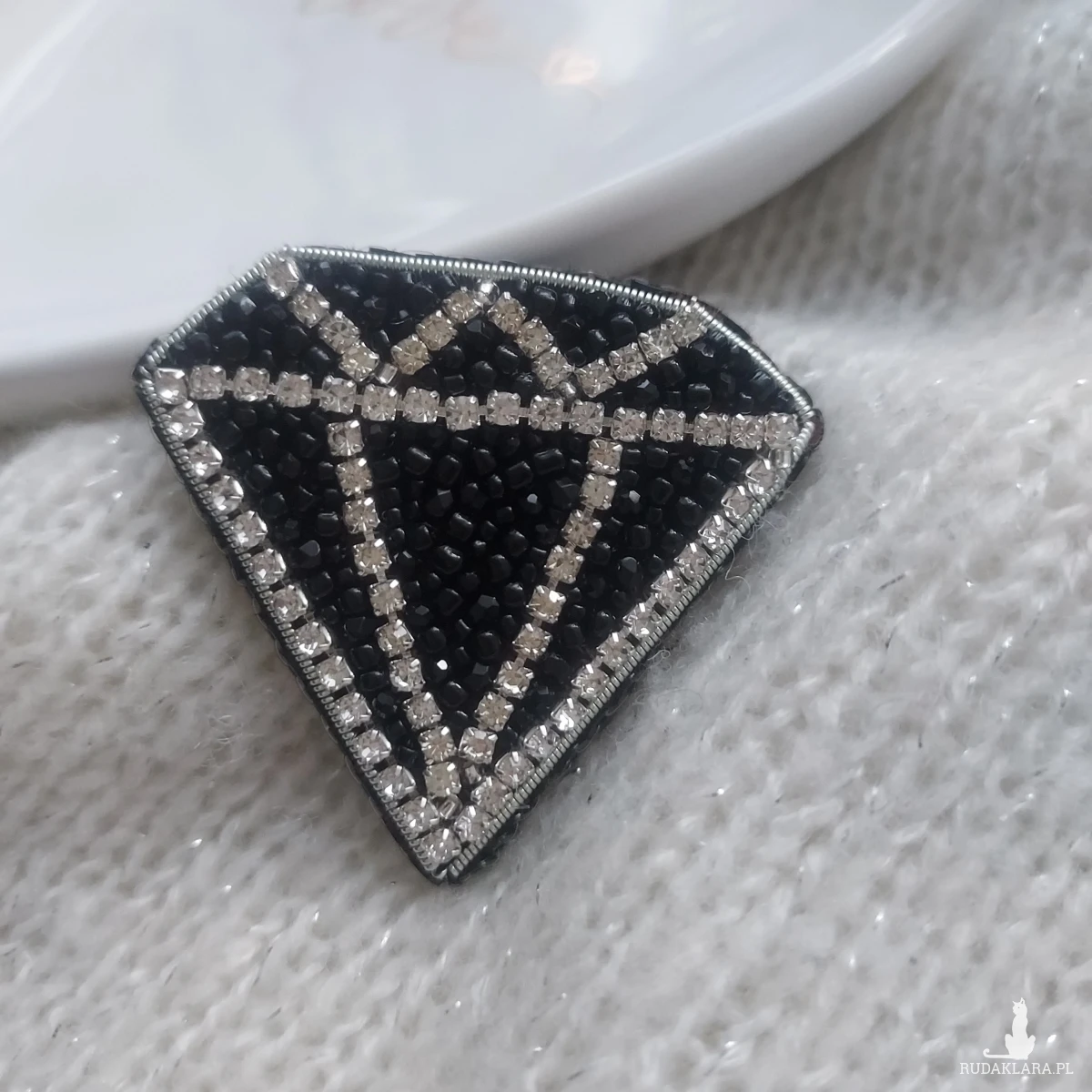 Stylowa, urocza broszka w kształcie diamentu w kolorze czarnym to elegancka propozycja dla miłośniczek biżuterii z klasą.