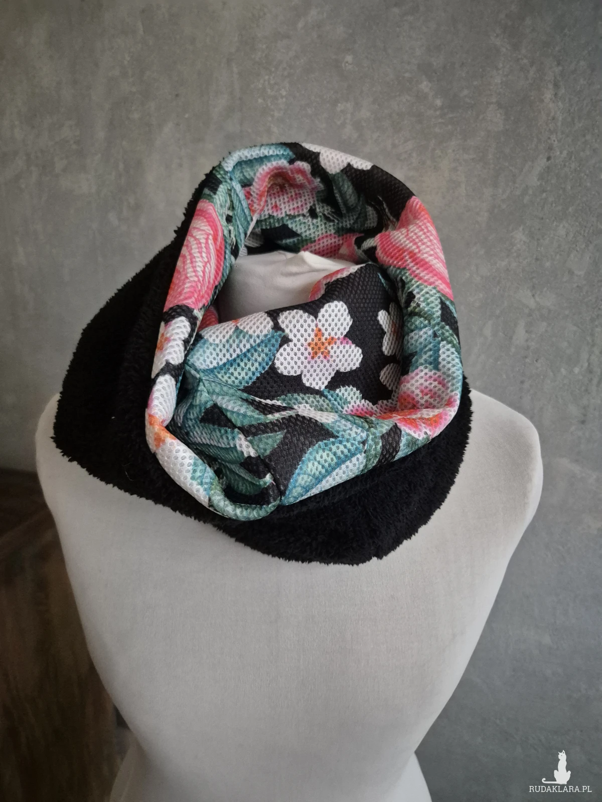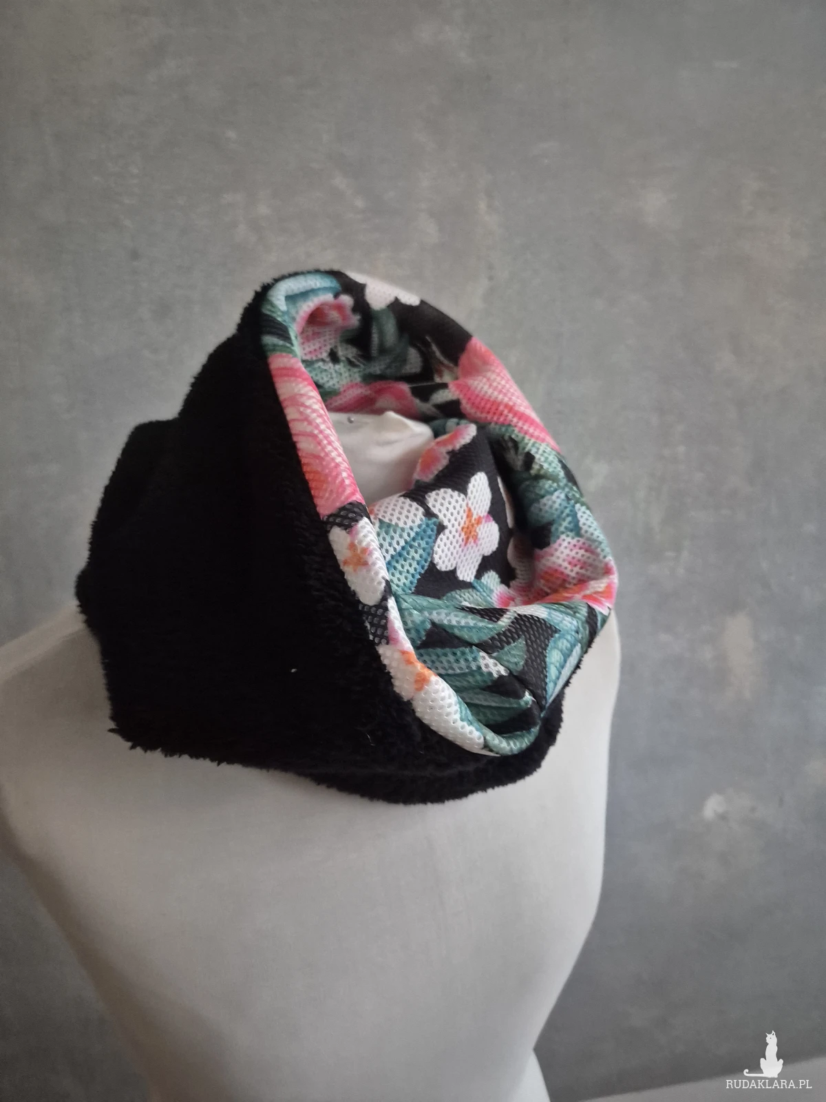 komin tuba ciepły czarny baranek na kolorowej podszewce rozmiar uniwersalny zakładany przez głowę pojedyncze egzemplarz rękodzieło polecam Box P1