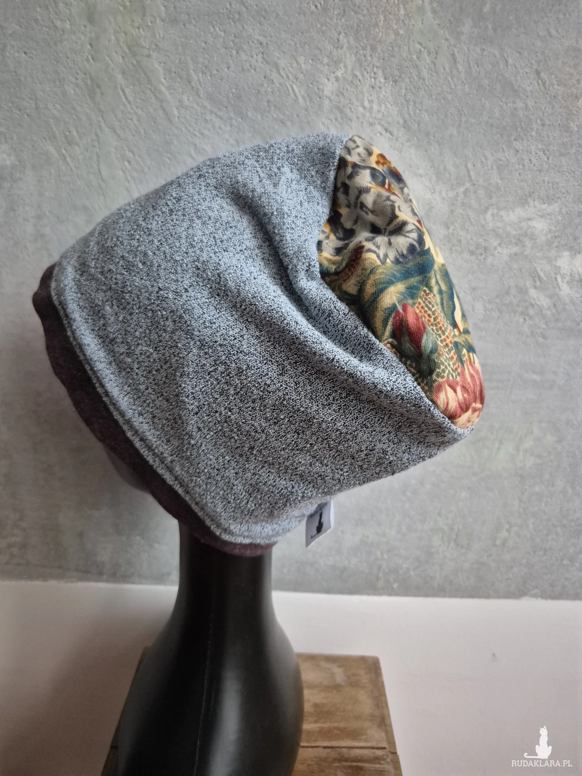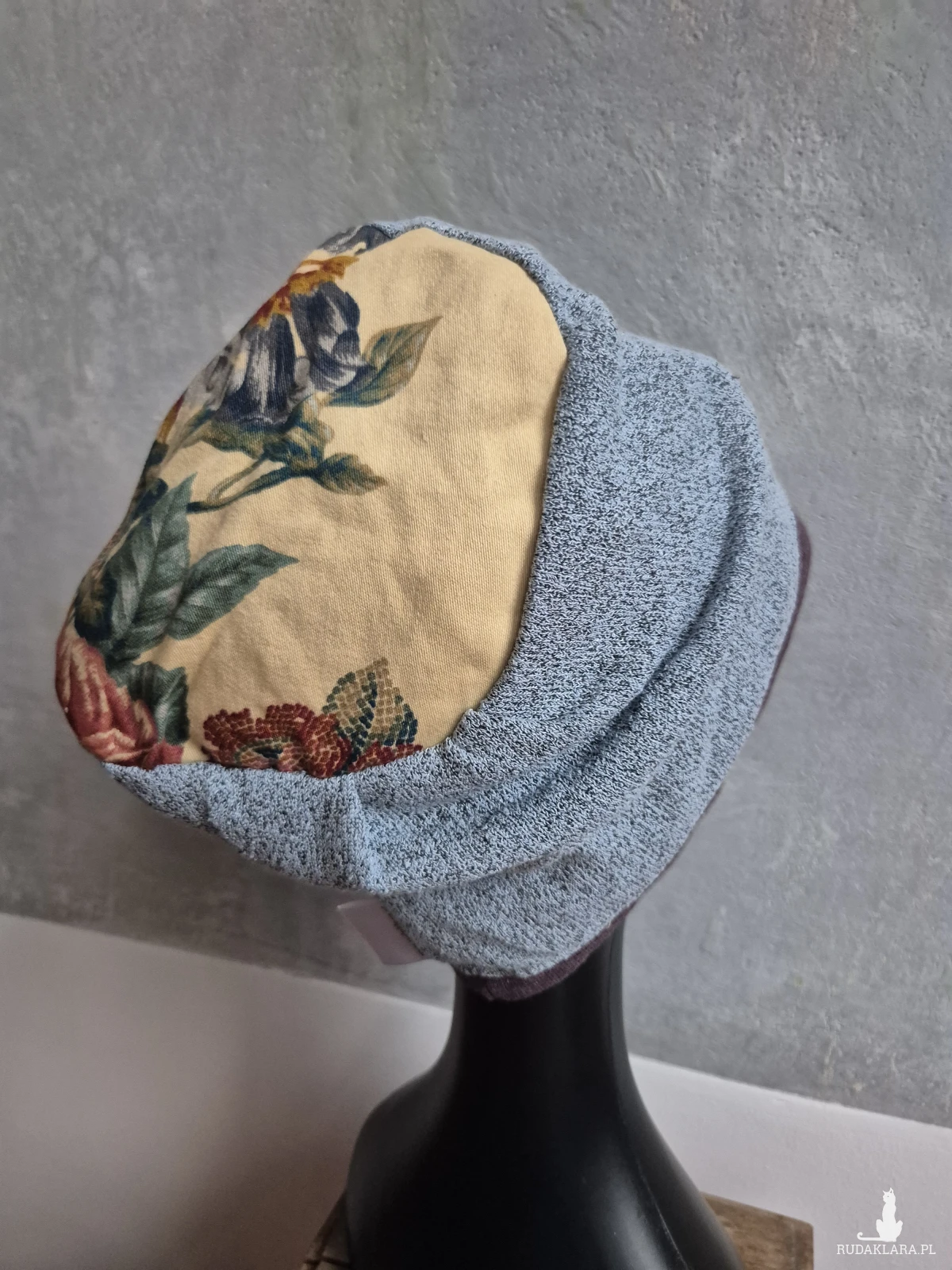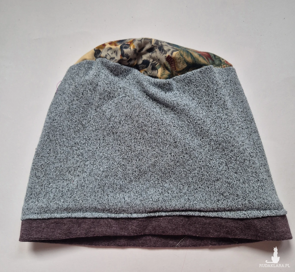 Czapka niebieska gora kolorowa na podszewce rozmiar uniwersalny ,miła, dobra na codzienne noszenie, wykonana w pojedynczym egzemplarzu rękodzieło polecam boks p1
