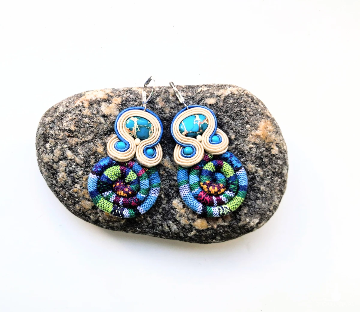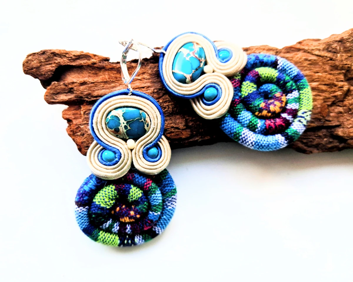 Materiał: sutasz, jaspis, szkło, tkany sznur.