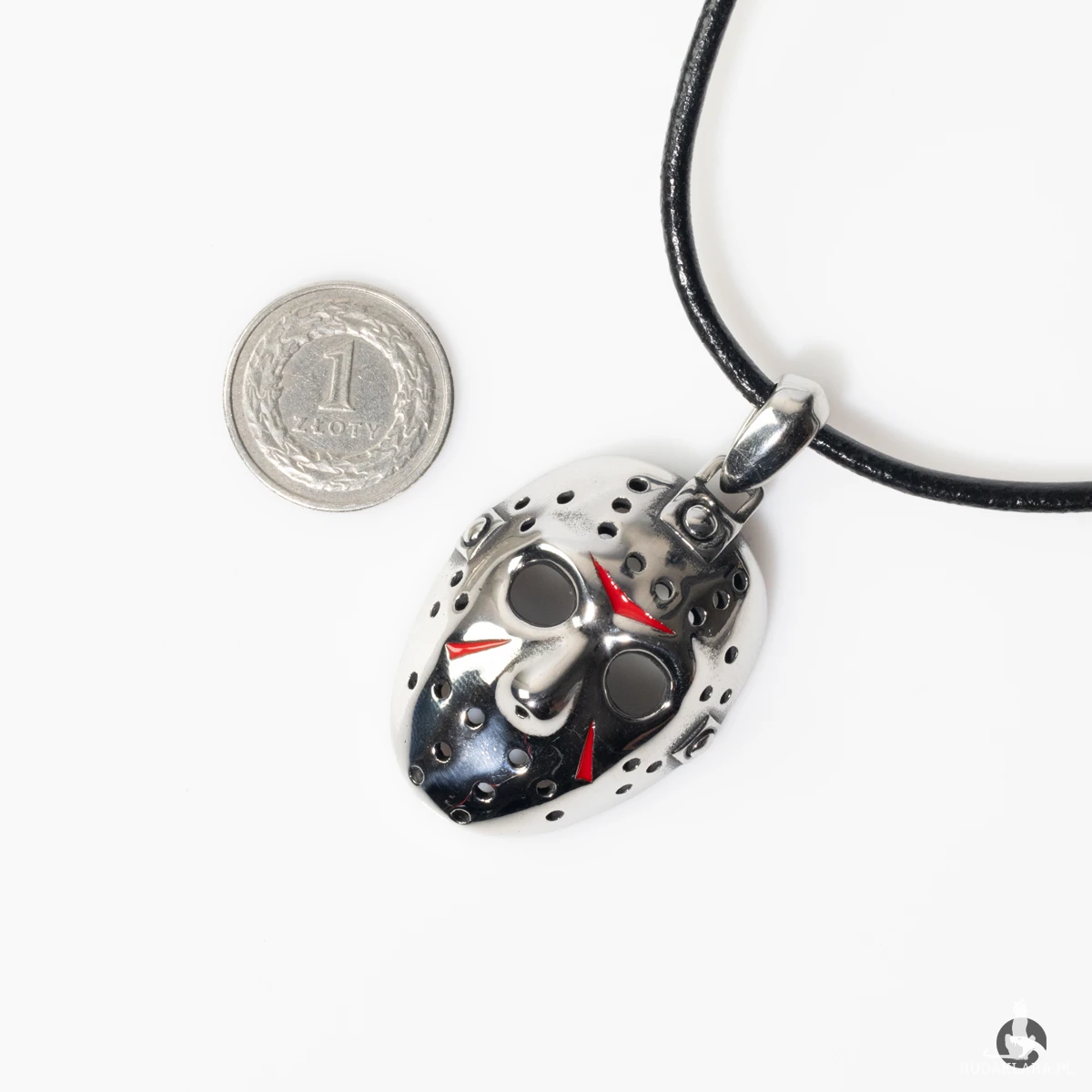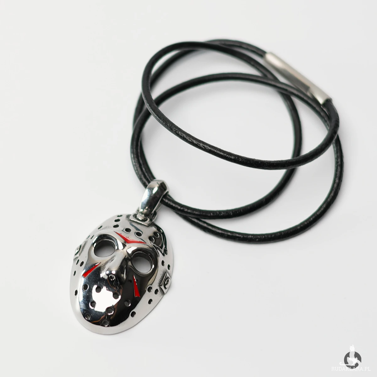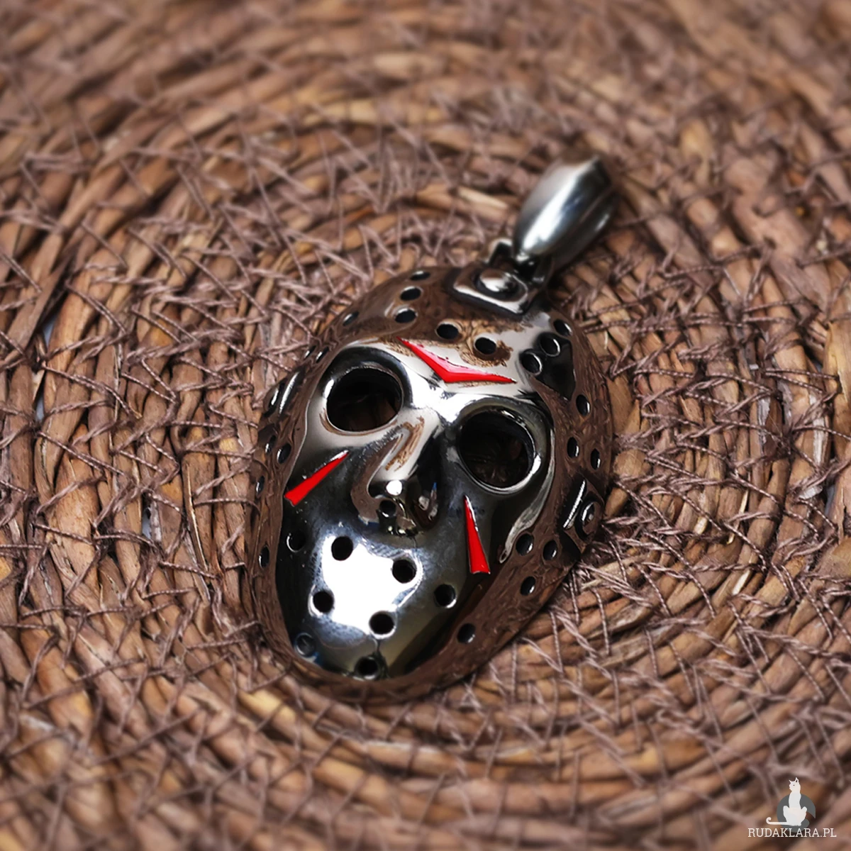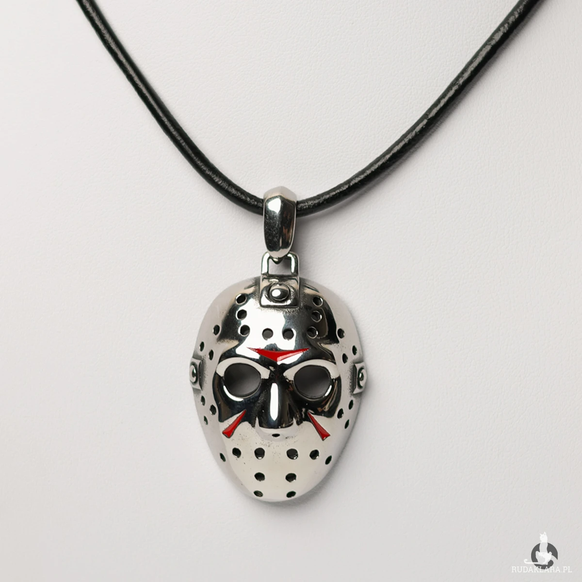 Ten naszyjnik z zawieszką w kształcie maski Jasona to propozycja dla miłośników horrorów i popkulturowych ikon. Wykonany z najwyższej jakości stali szlachetnej 316L, przyciąga wzrok i budzi emocje. Maska z charakterystycznymi czerwonymi akcentami nawiązuje do legendarnej postaci z serii "Piątek, trzynastego", symbolizując tajemniczość, odwagę i nutę mroku. To biżuteria, która wyróżnia i podkreśla silny charakter właściciela.