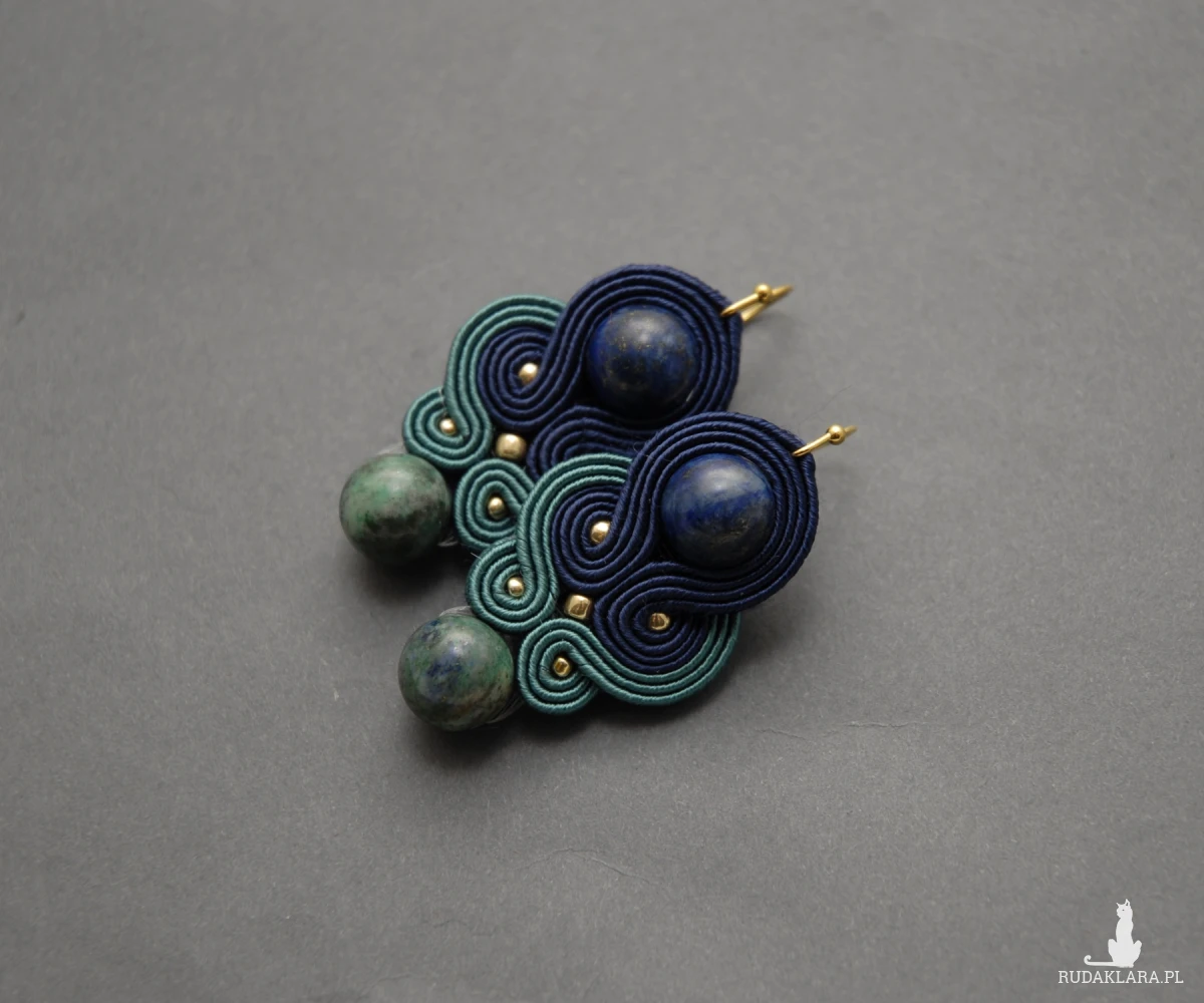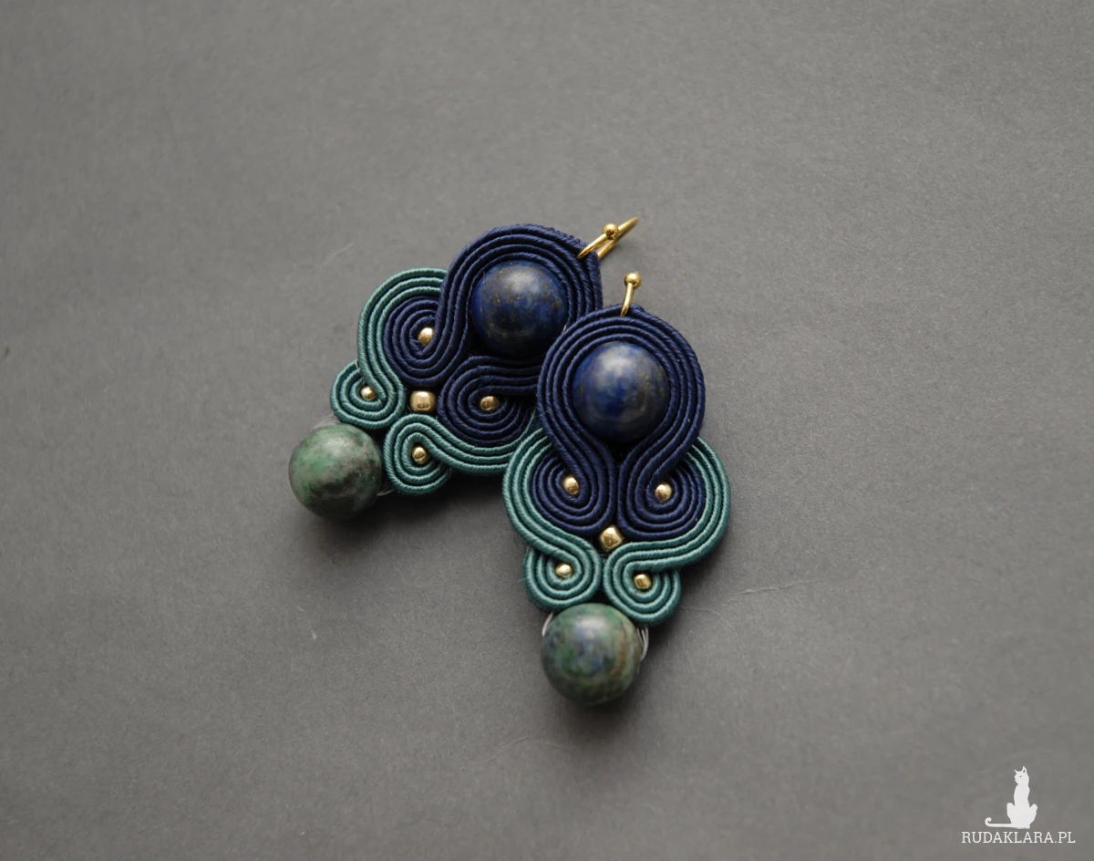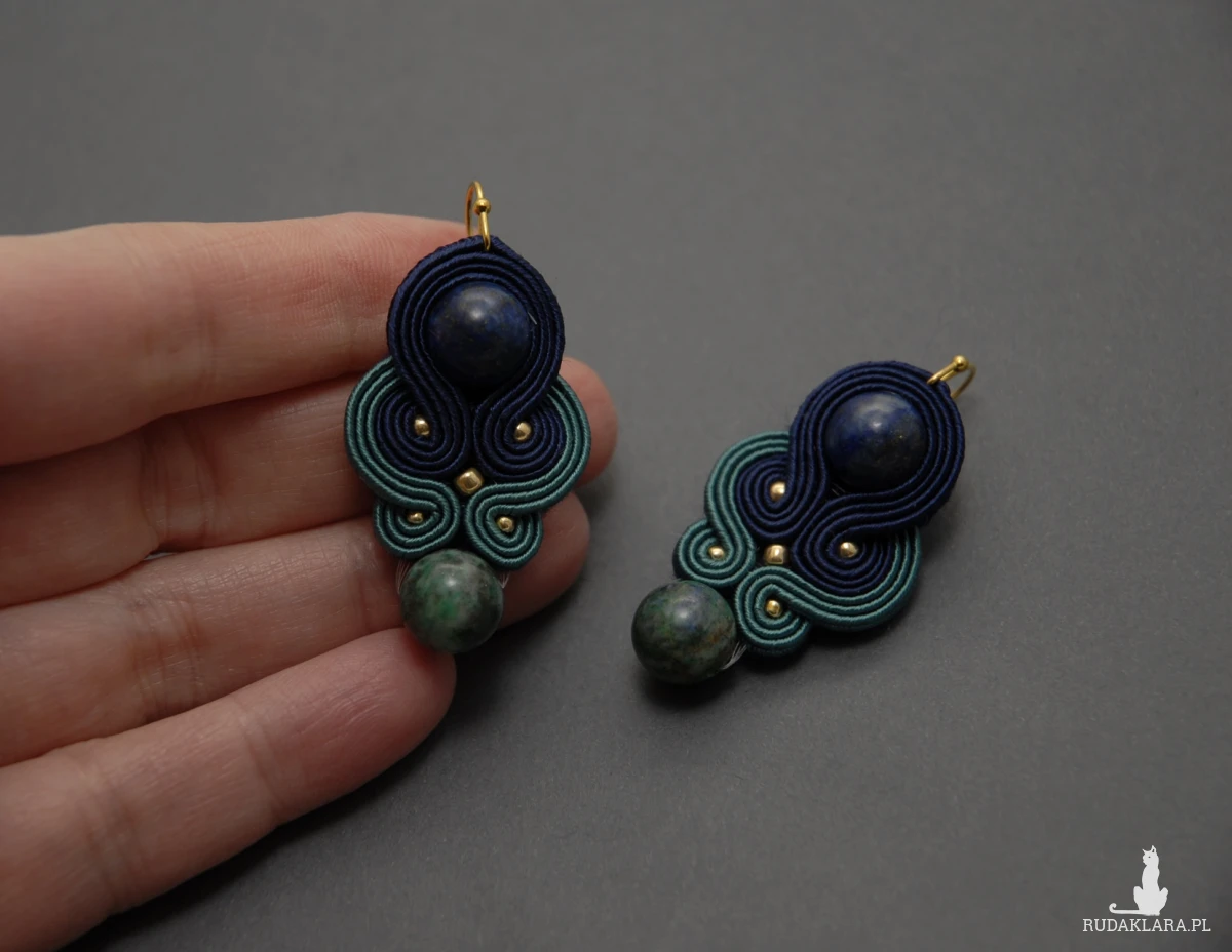oferuję kolczyki lub klipsy zrobione techniką sutasz, ozdobione chryzokolą i drobnymi koralikami