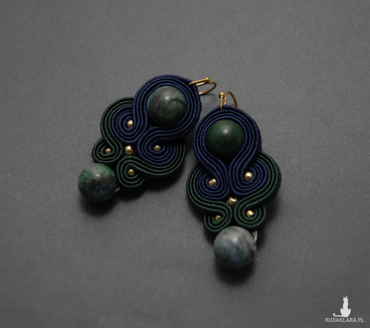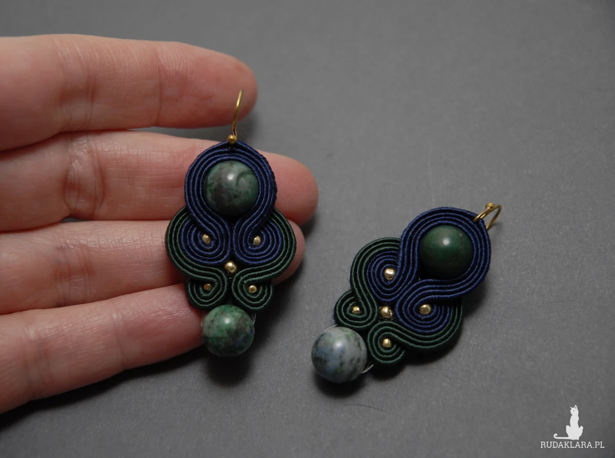 oferuję kolczyki lub klipsy zrobione techniką sutasz, ozdobione chryzokolą i drobnymi koralikami
