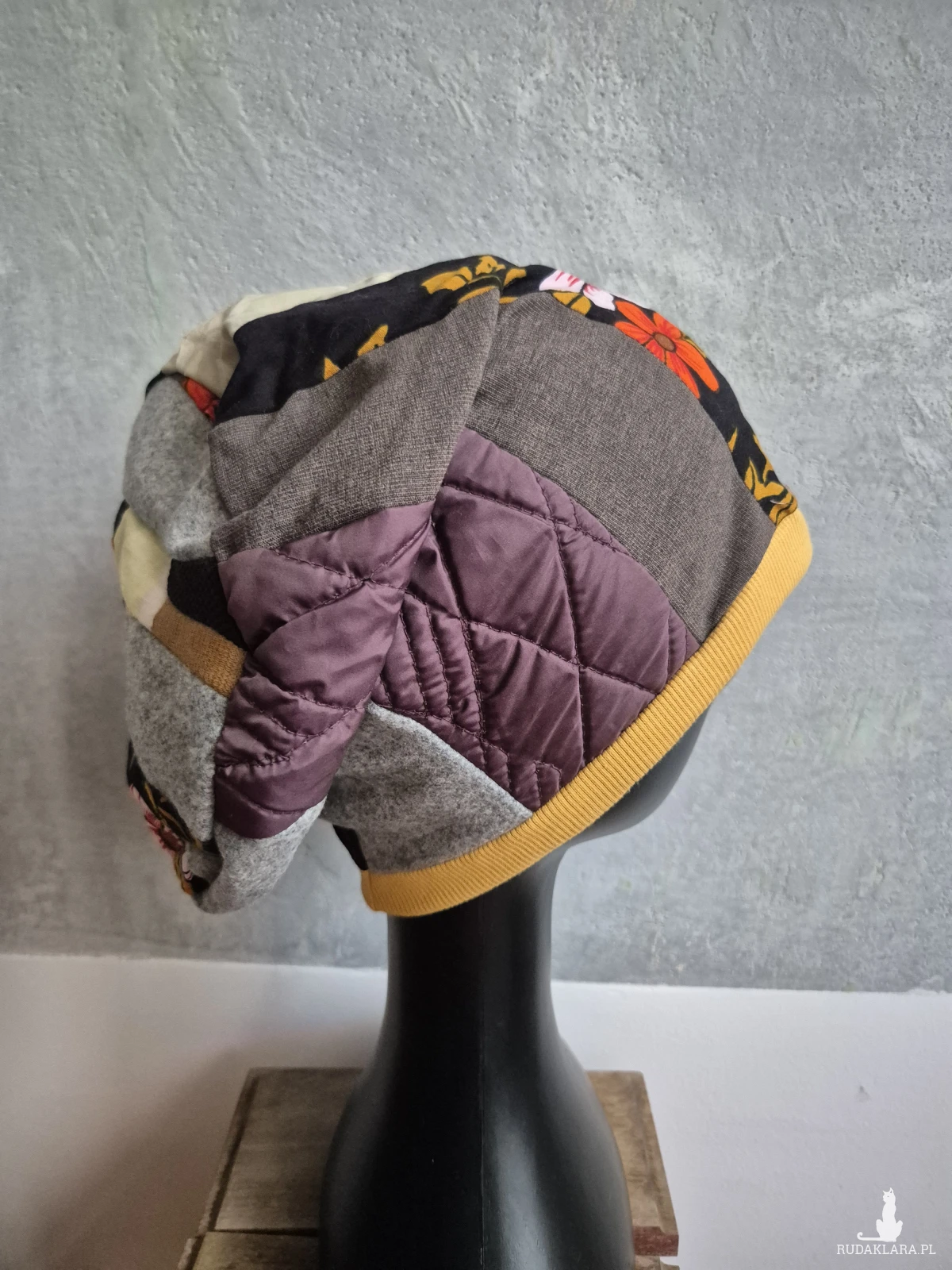 Czapka damska patchworkowa uniwersalna  i miła, dobra na codzienne noszenie, wykonana w pojedynczym egzemplarzu rękodzieło polecam boks p1
